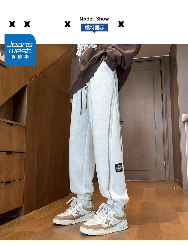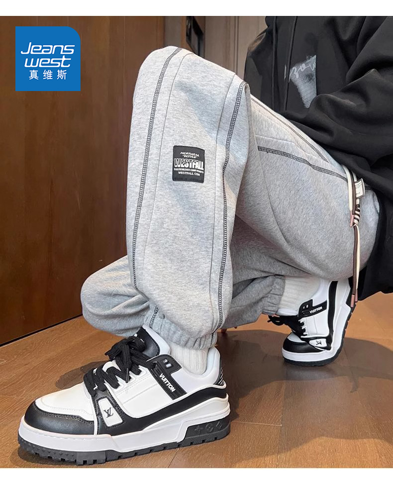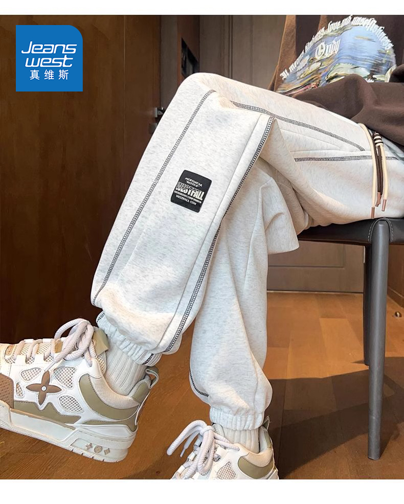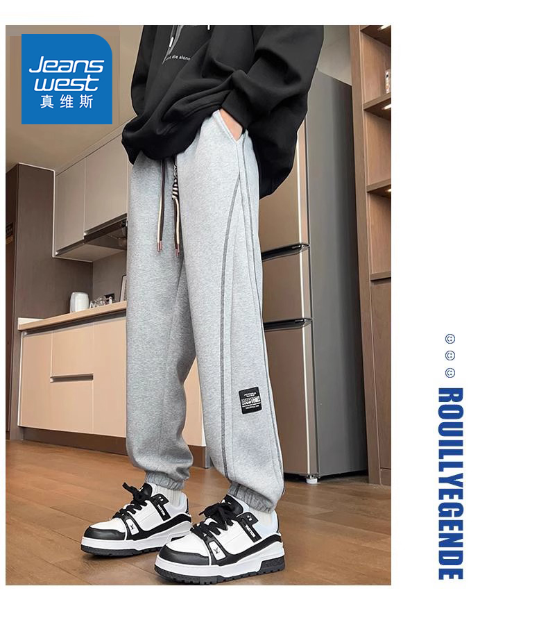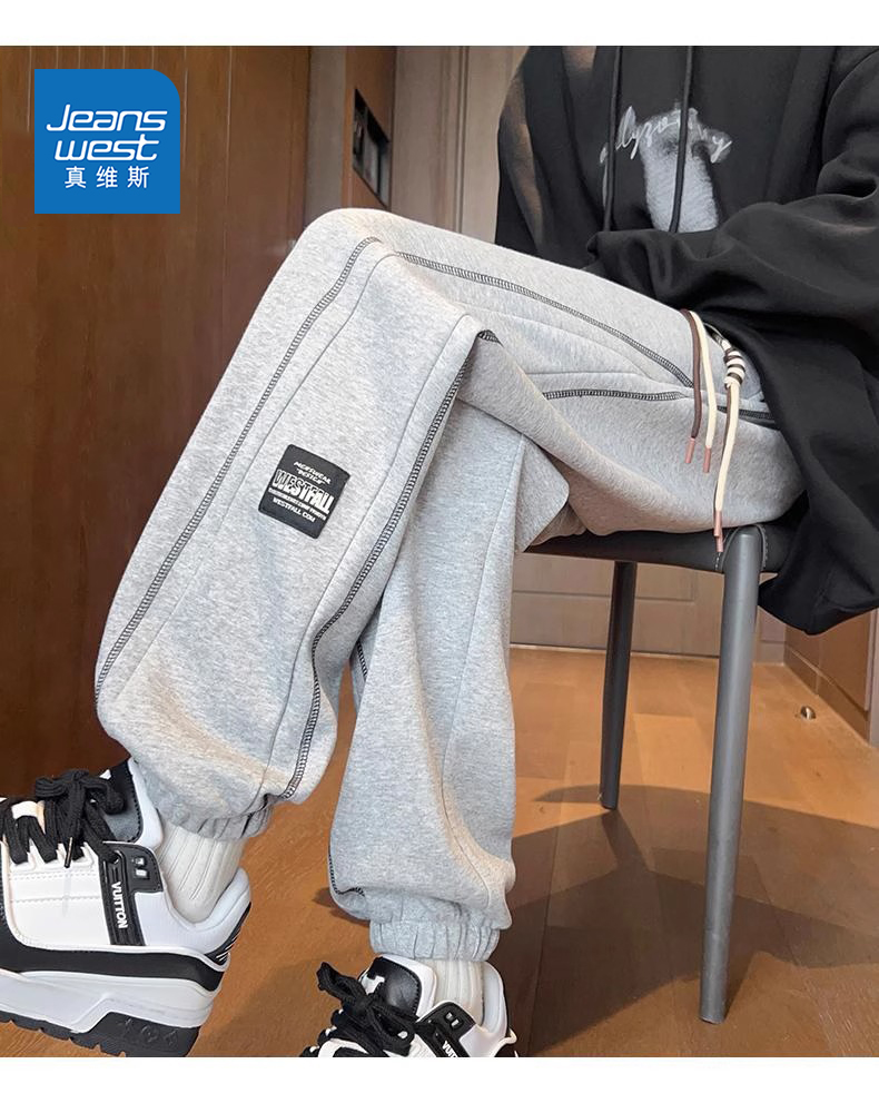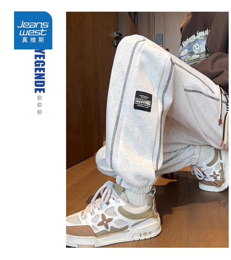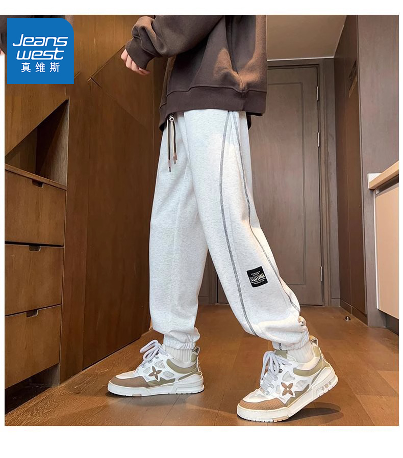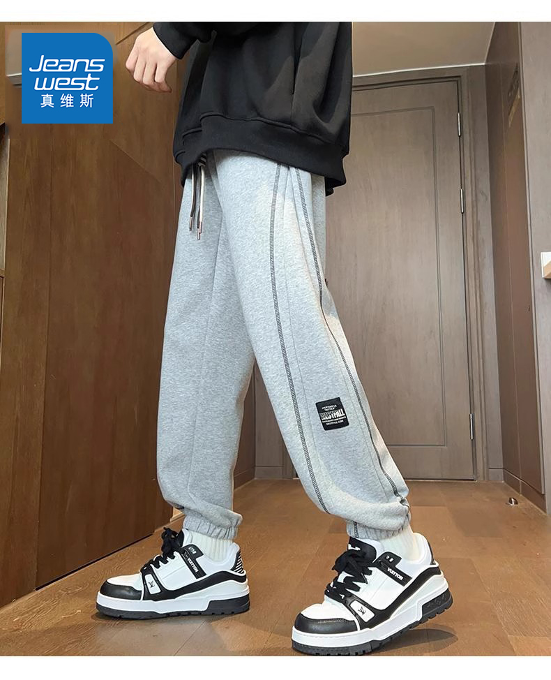 Jeanswest Youth Pants for Boys, Junior High School Students' Sports Pants, Autumn and Winter Loose Cotton Jogger Pants, Gray Sweatpants