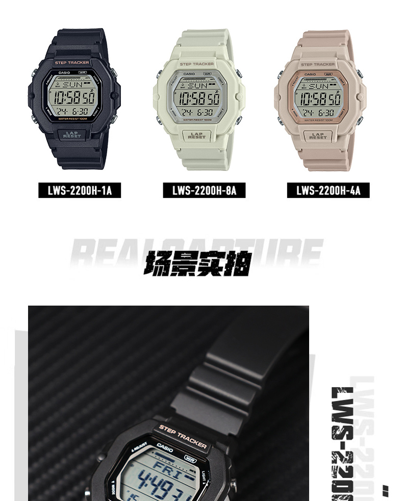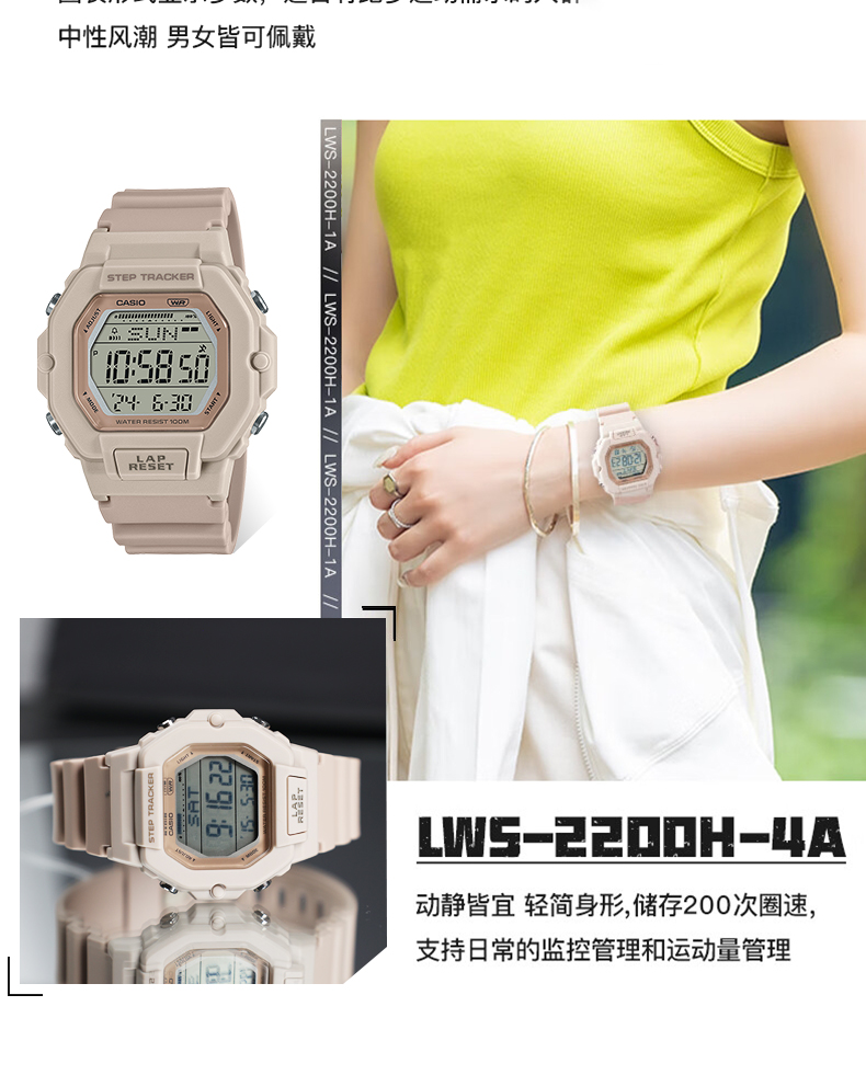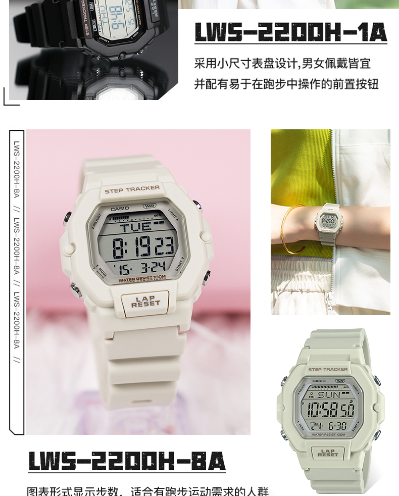 Casio Watch for Girls Baby-G Fashion Trendy Small Square Sports Pedometer Quartz Watch Lws-2200H-4A