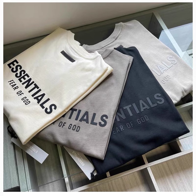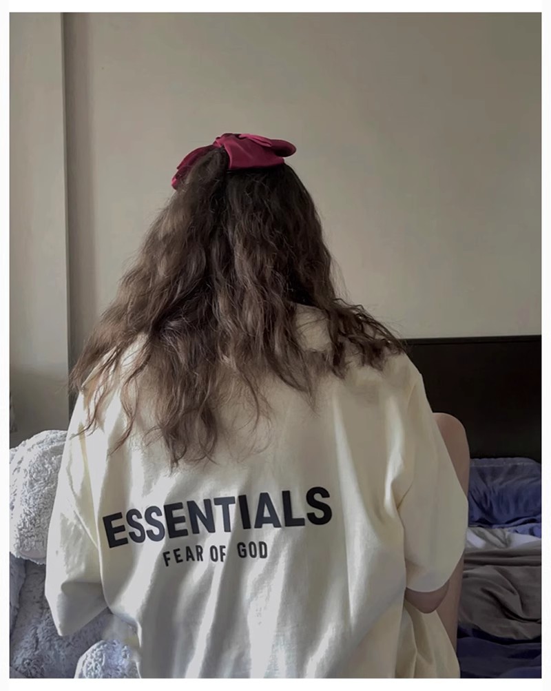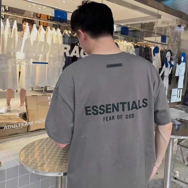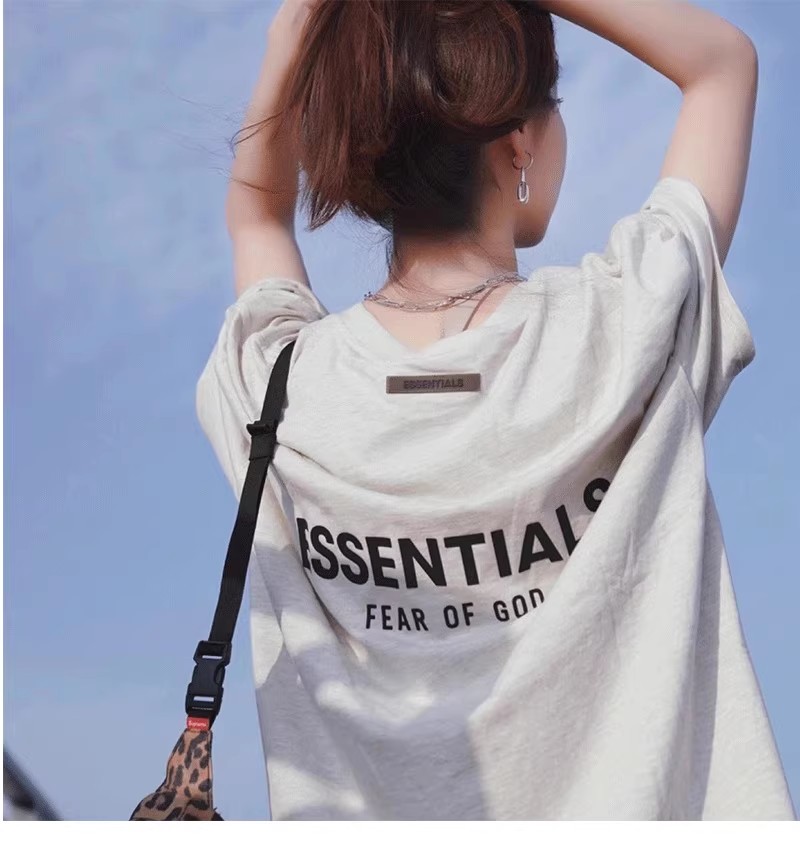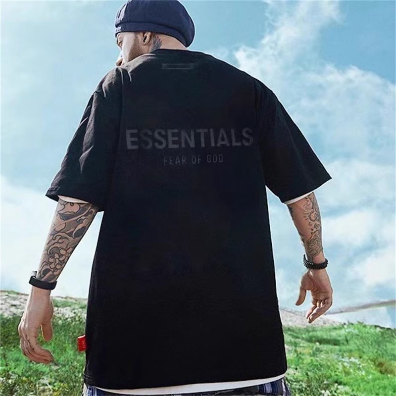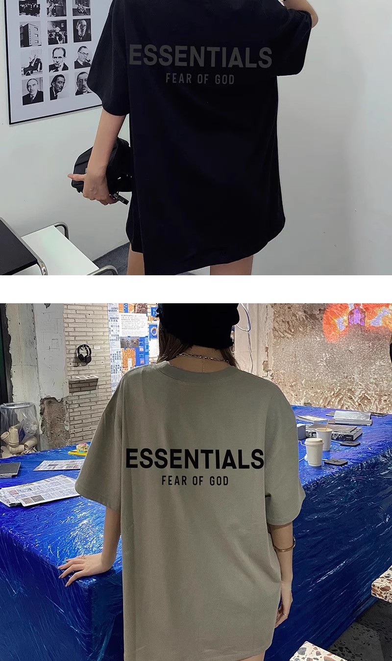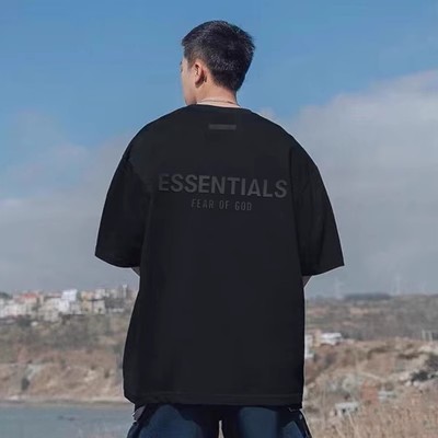 Essentials Multi-Line Fog European and American Trendy Brand High Street Letter Short-Sleeve T-Shirt for Men, Loose Fit, Pure Cotton, Couple's Half-Sleeve for Men