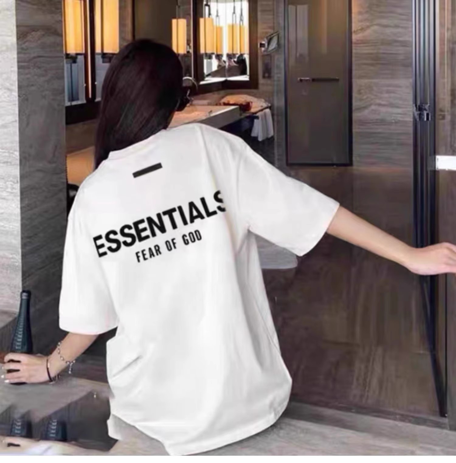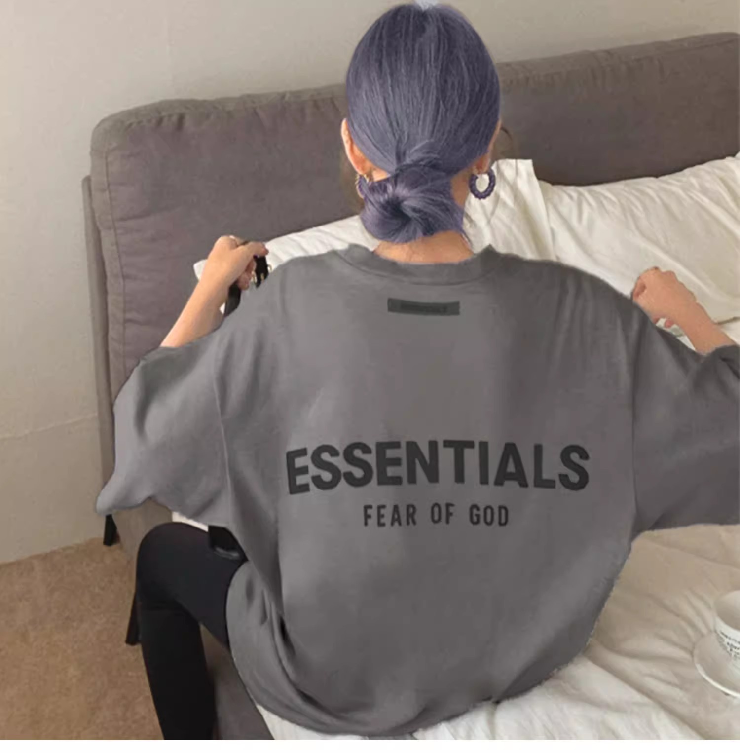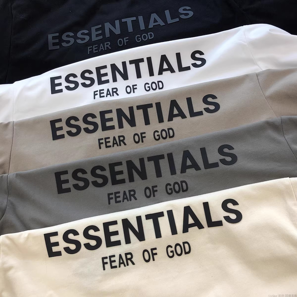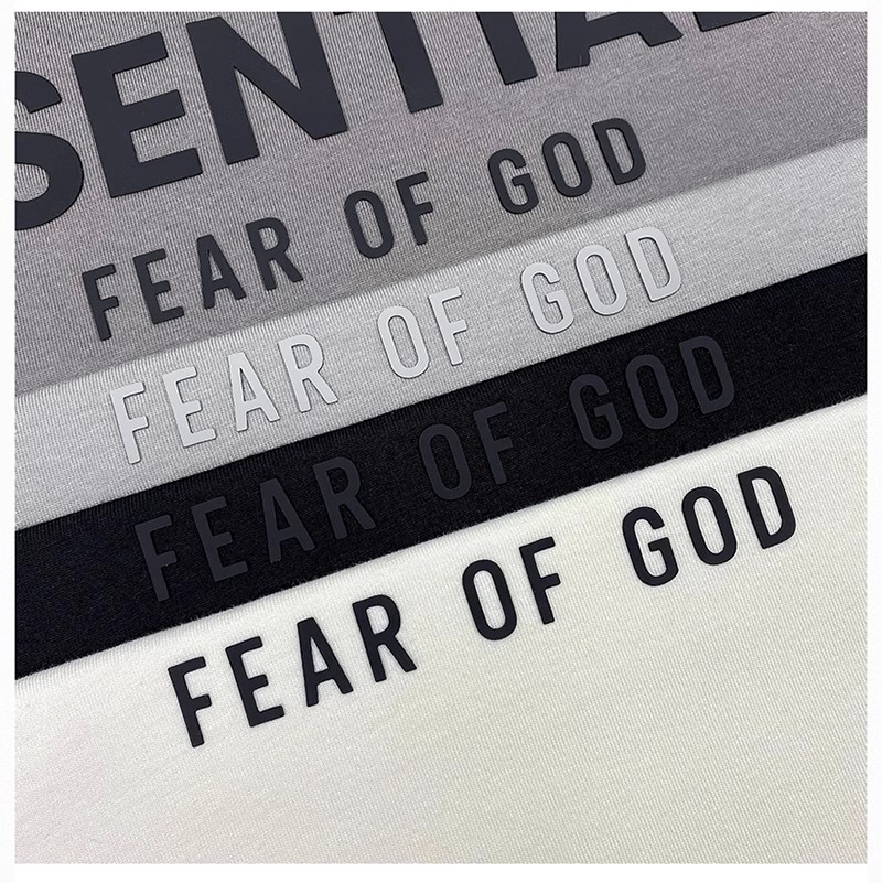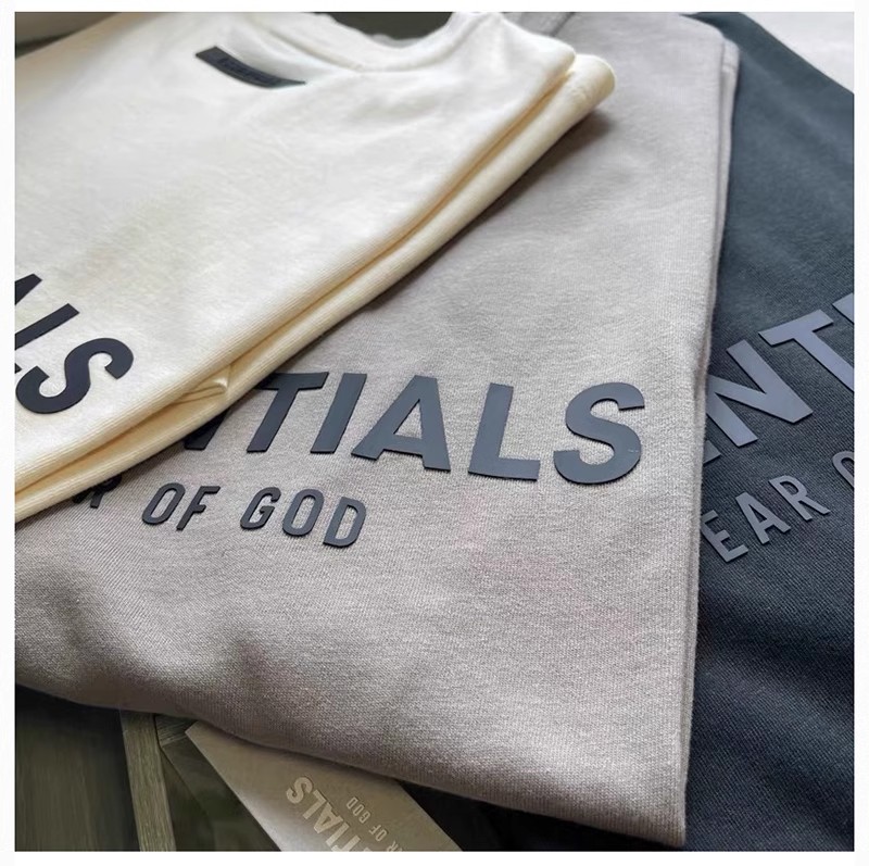 Essentials Multi-Line Fog European and American Trendy Brand High Street Letter Short-Sleeve T-Shirt for Men, Loose Fit, Pure Cotton, Couple's Half-Sleeve for Men
