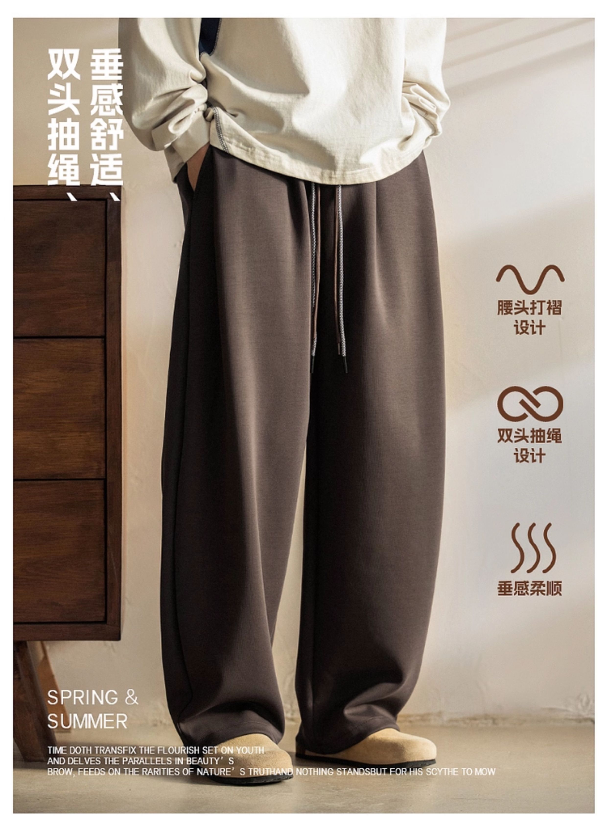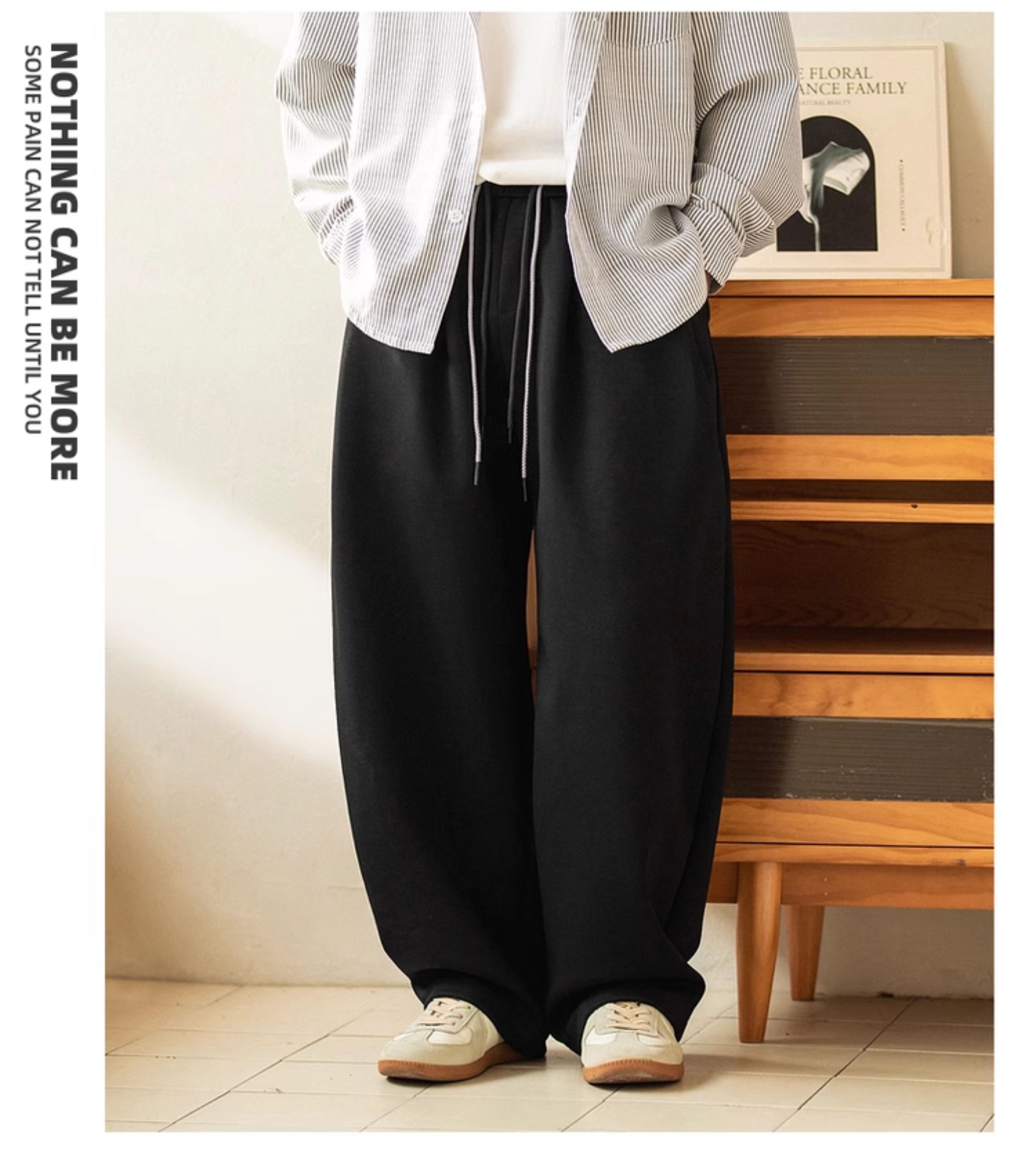 Men's Brown Loose Sweatpants, Winter Old Money Style Casual Curved Pants, Plus Size Pants, Sports Pants, 2025 New Model