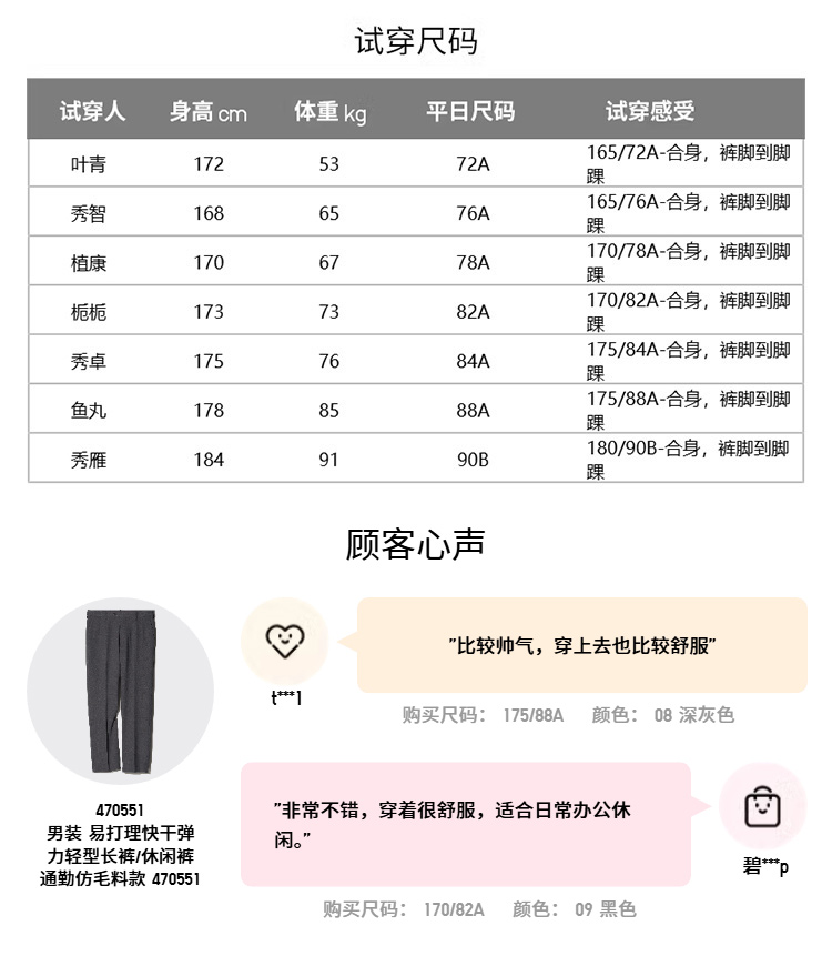 Uniqlo Men's Easy-Care Quick-Drying Stretch Lightweight Trousers/Casual Pants Commuter Faux Wool Style 470551