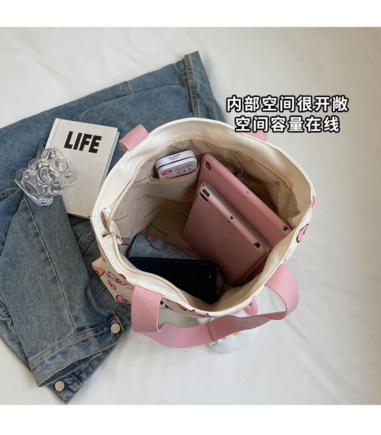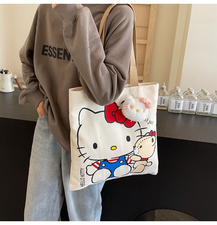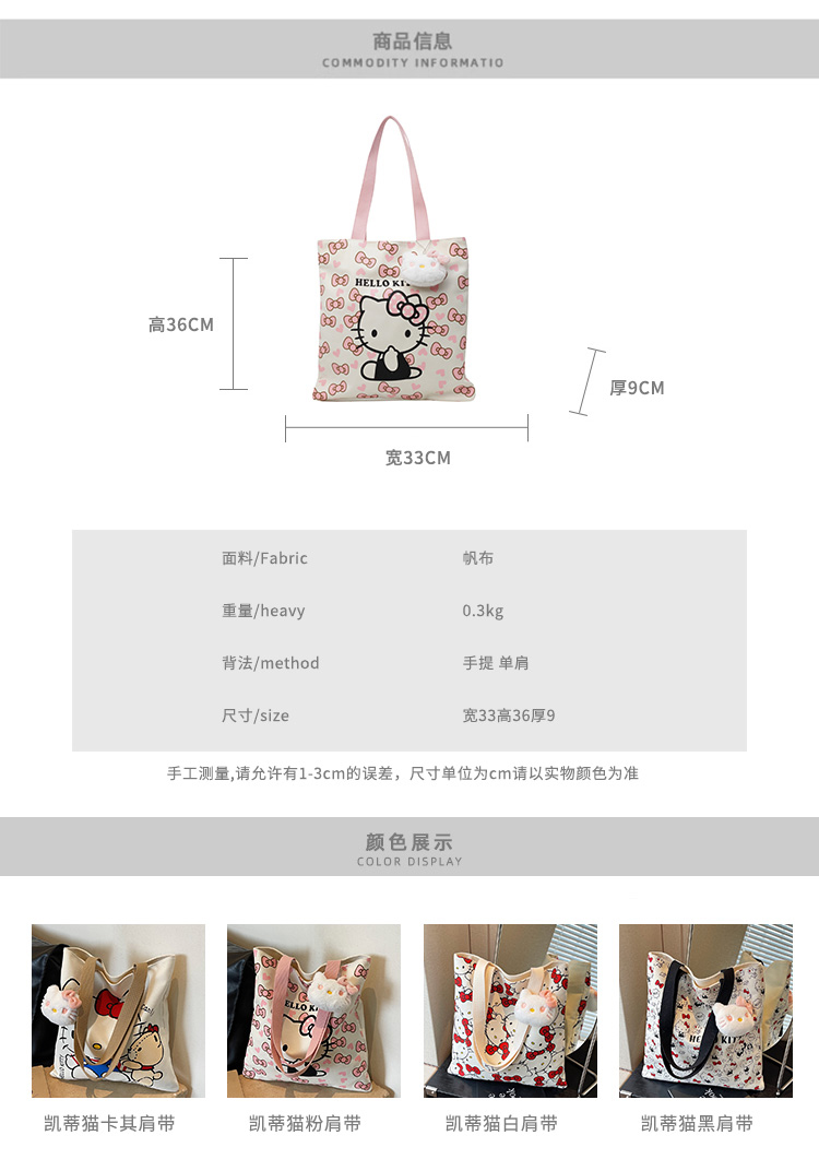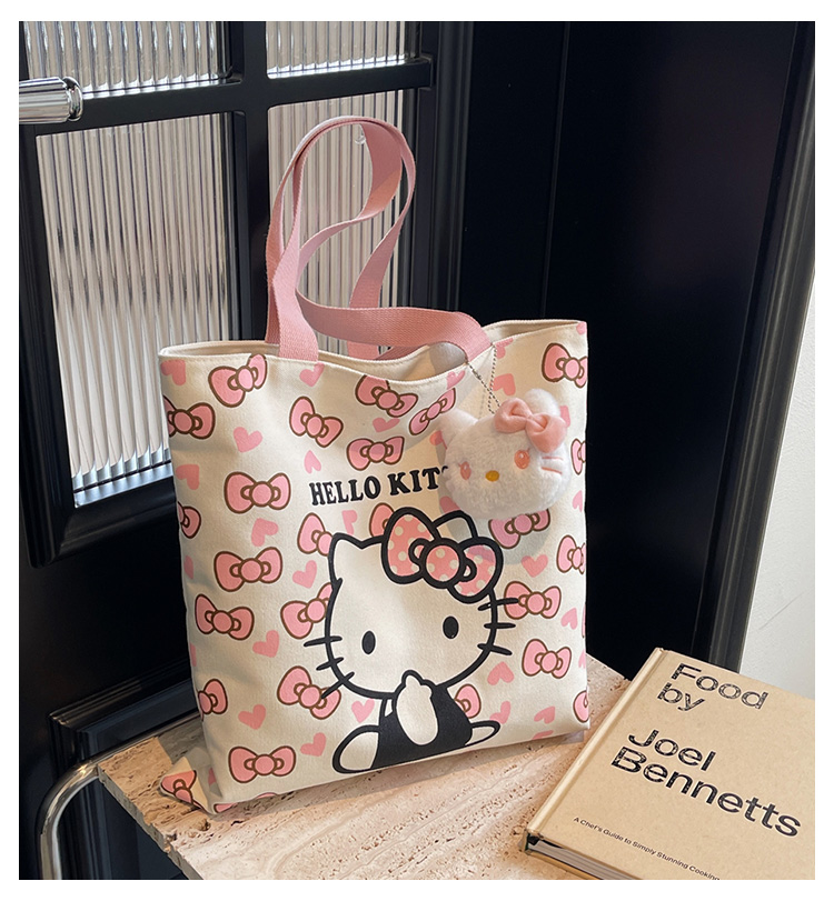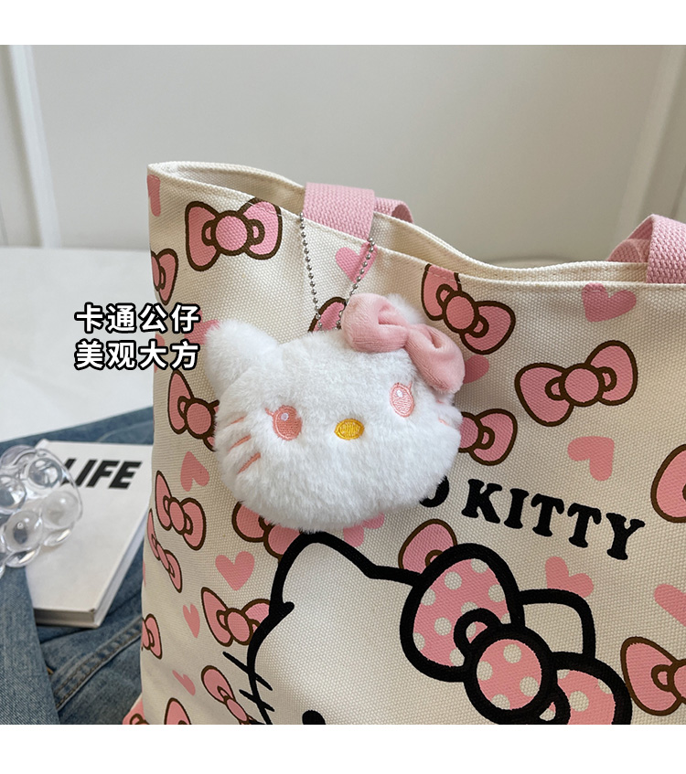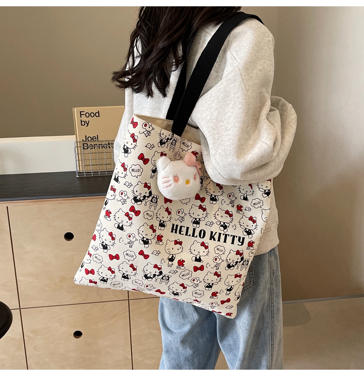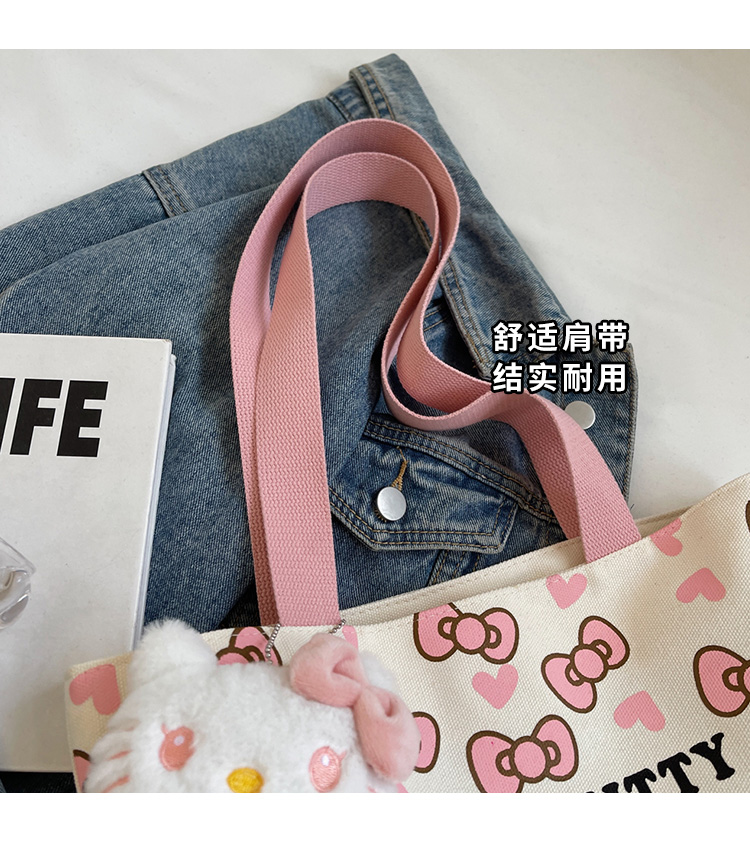 hellokitty Cat Cartoon Canvas Bag Schoolgirl Handbag Large Capacity Class Work Clothing Shoulder Tote Bag