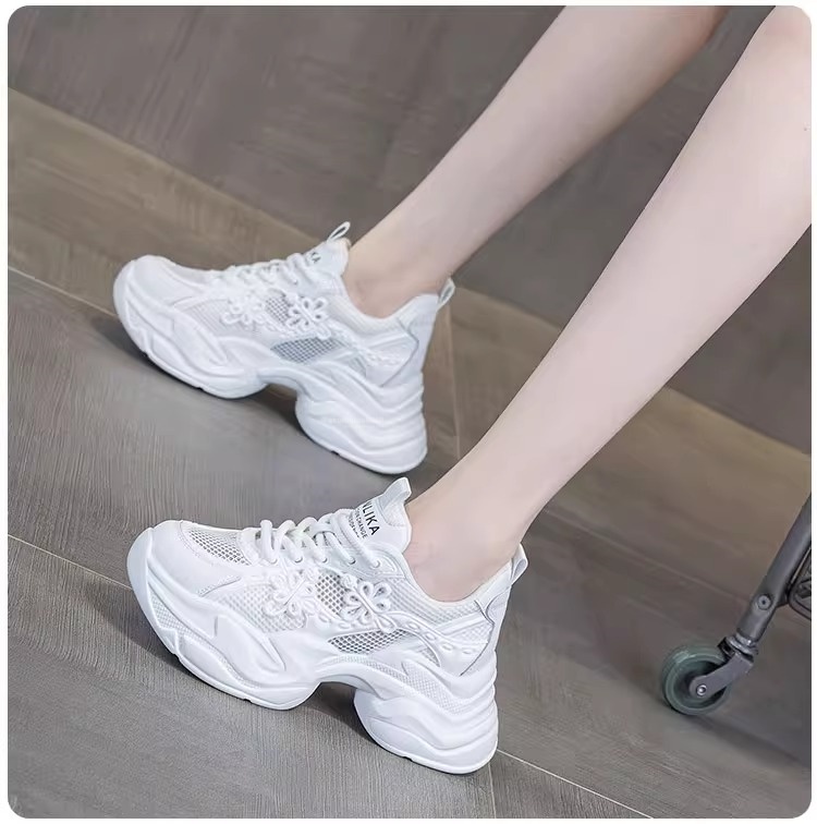 Hong Kong Breathable Mesh Thick-Soled Dad Shoes for Women 2025 Summer New Thin White Shoes Versatile Casual Sneakers