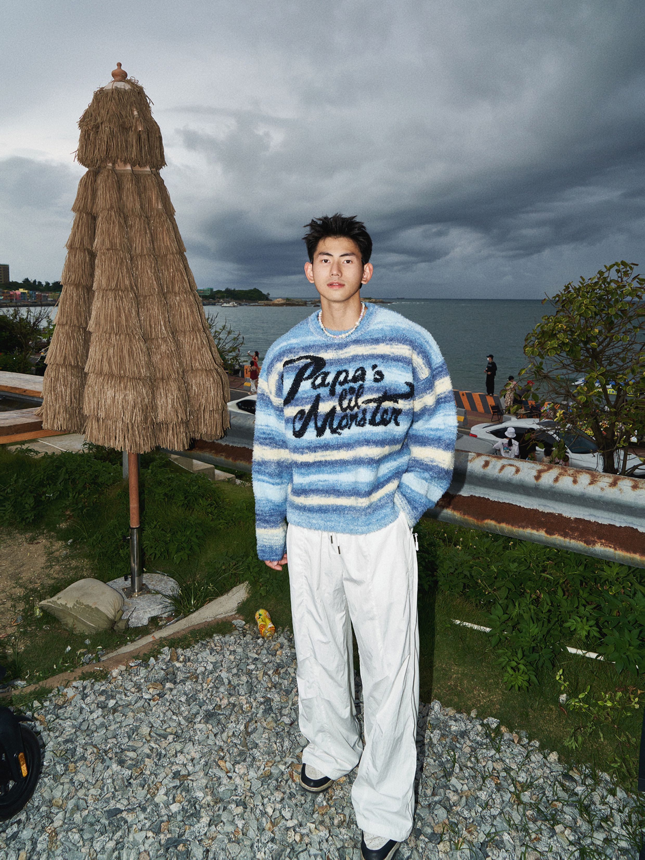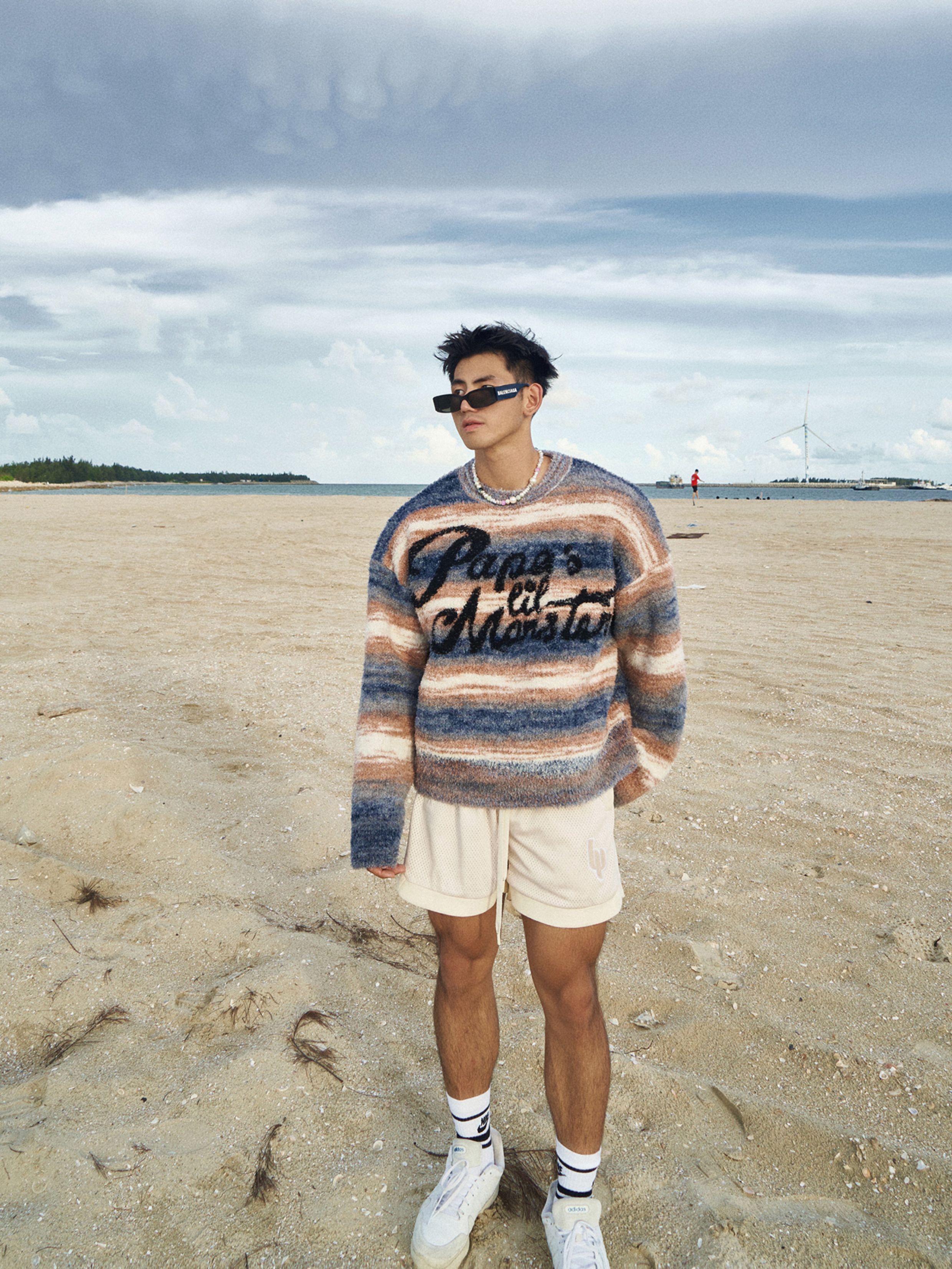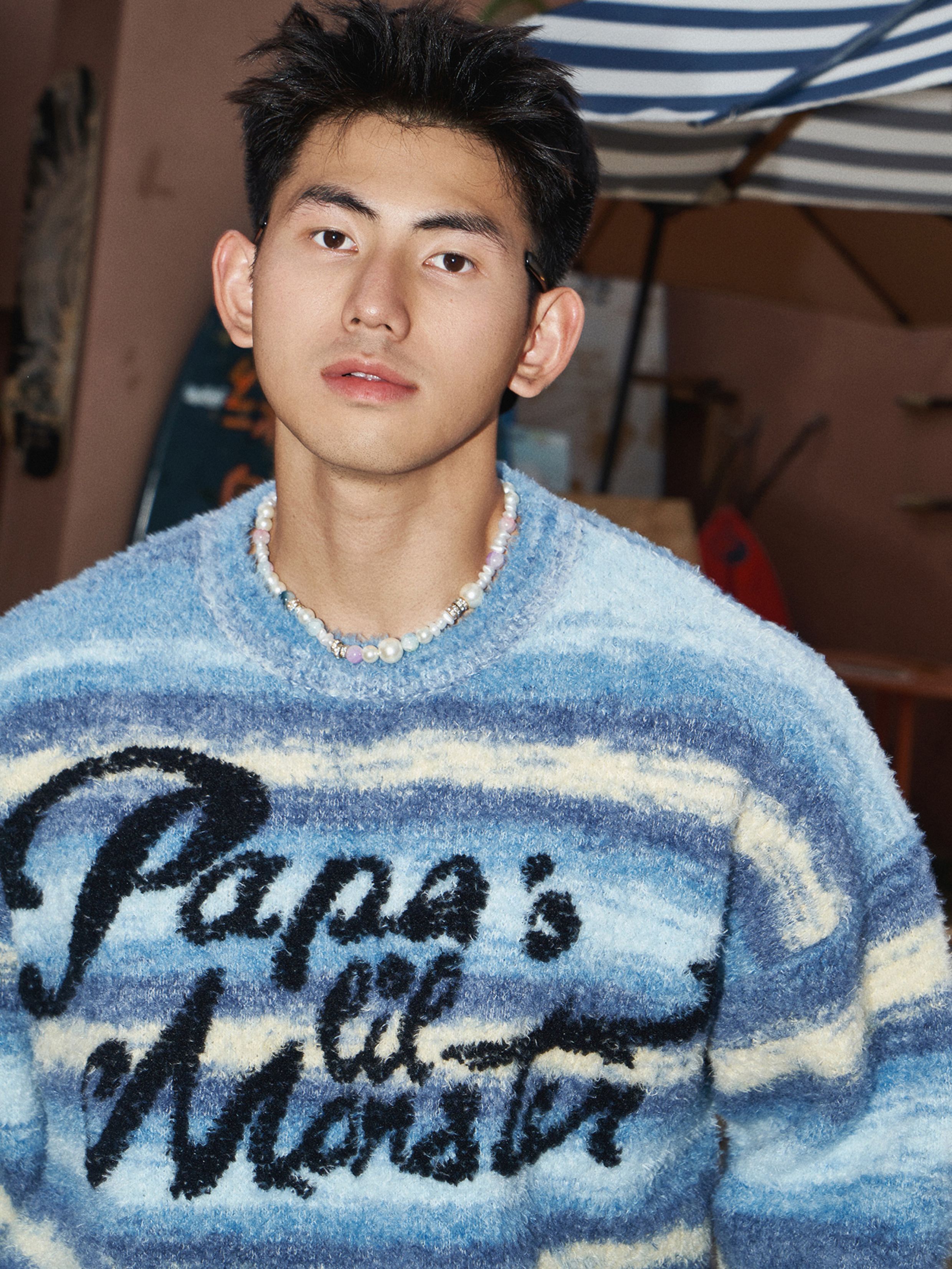 Papaslilmonster【Original】Autumn Casual and Relaxed Sweater for Men, Large Letter Jacquard Sweater for Women