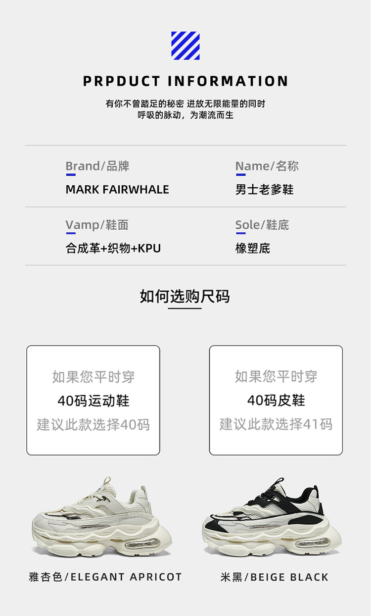 Mark Hua Fei Dad Shoes Men's Trendy Sports Shoes 2025 New Spring Street Style Height-Increasing Shoes Men's Casual Shoes