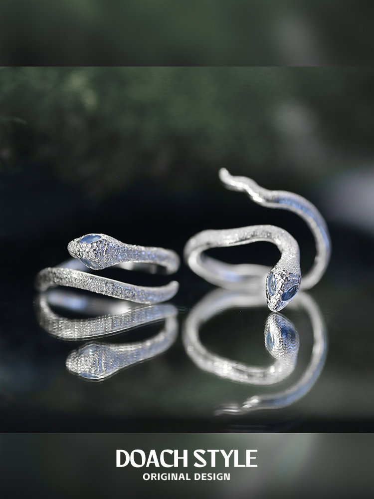 Doach Snake Ring for Women, Sterling Silver, Unique Design, Snake-Shaped Couple Rings, Light Luxury, High-End Feel, Year of the Snake Jewelry