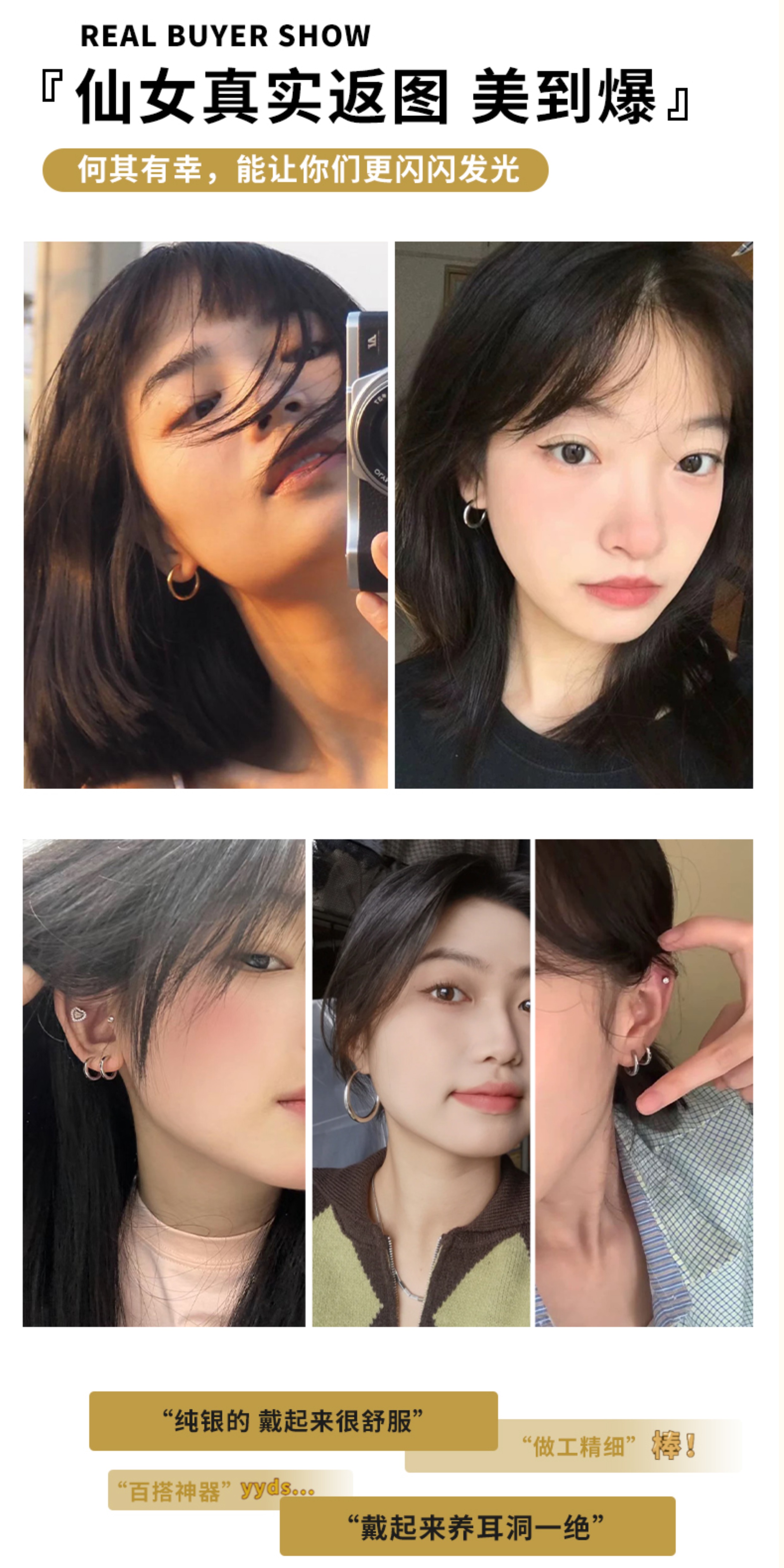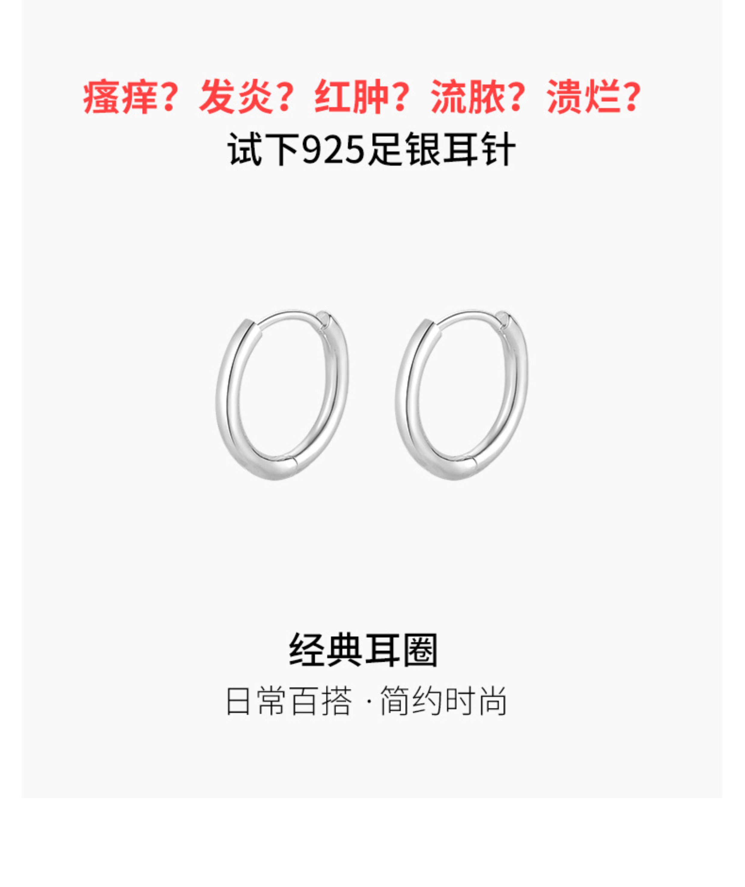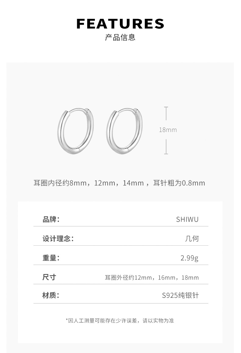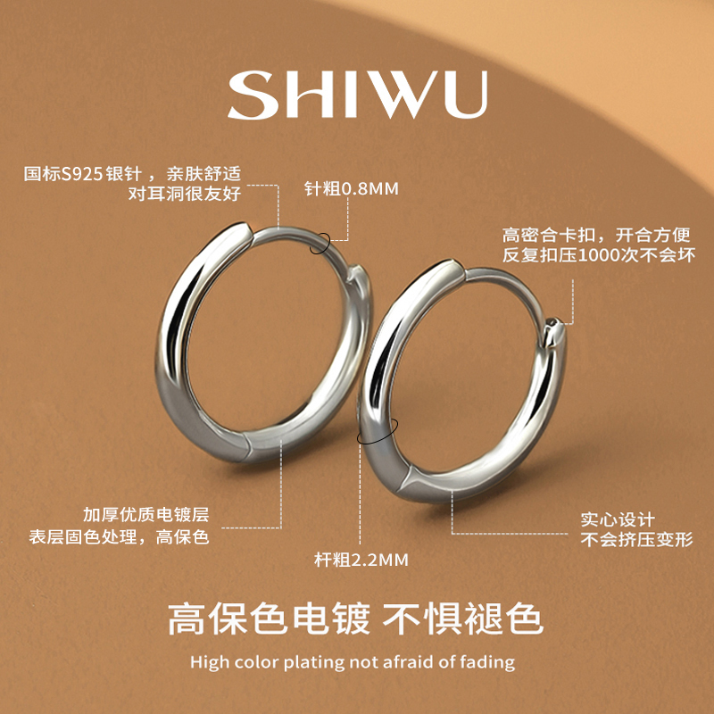 Silver Jewelry Pure Silver Ear Studs Hoop Earrings High-End Plain Hoop Earrings 2025 New Popular Hoop Earrings Pure Silver Ear Clasps Ear Accessories