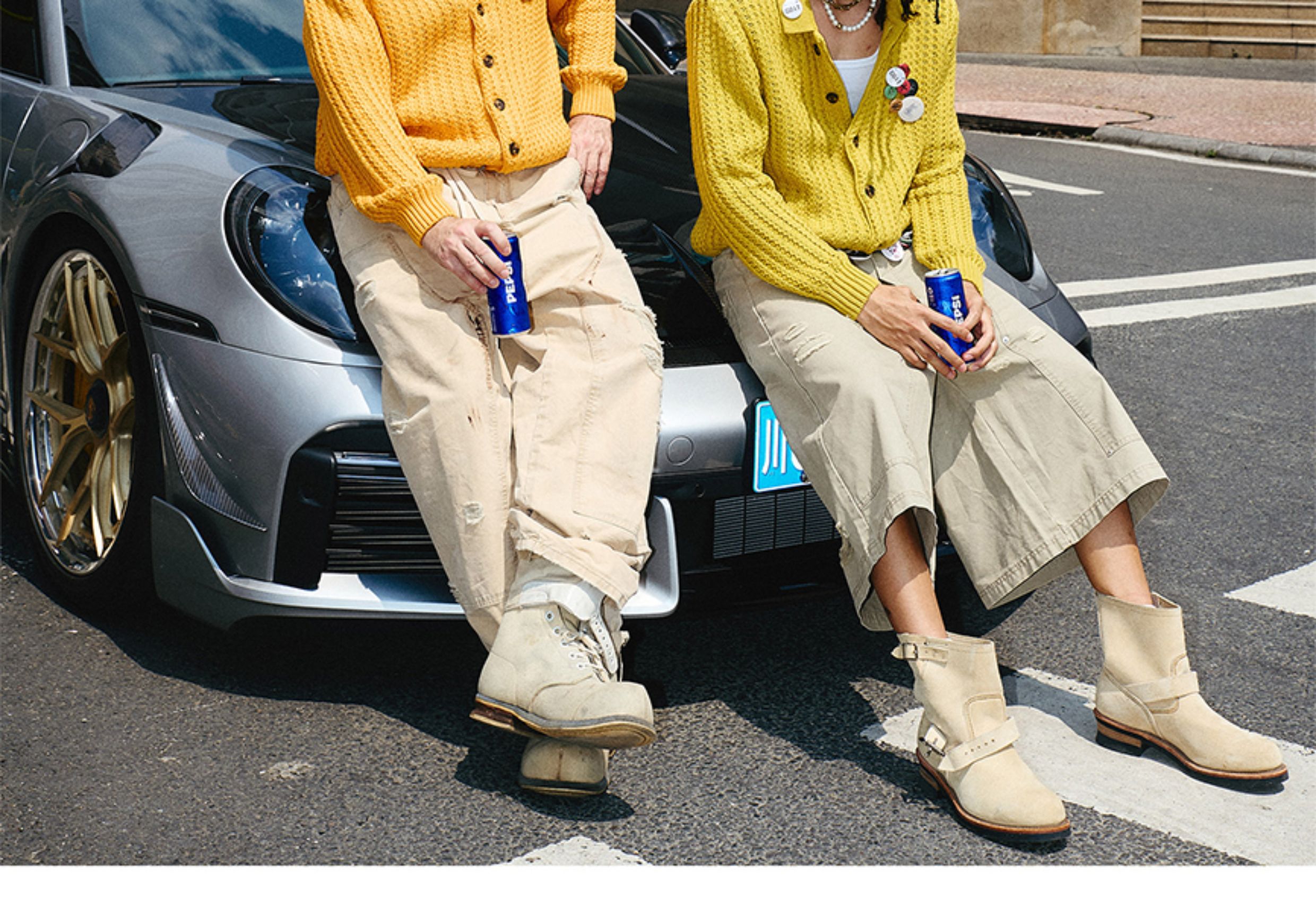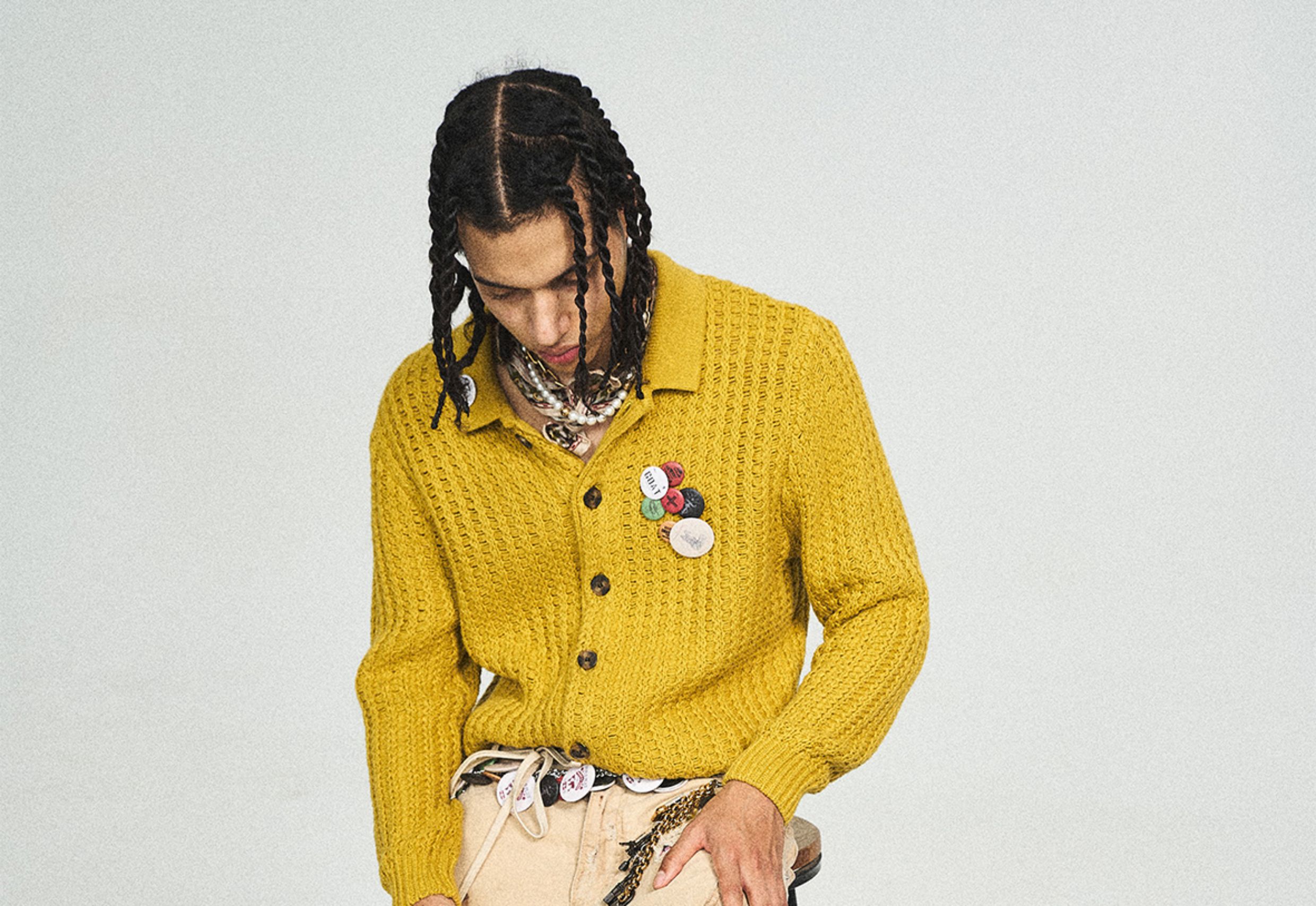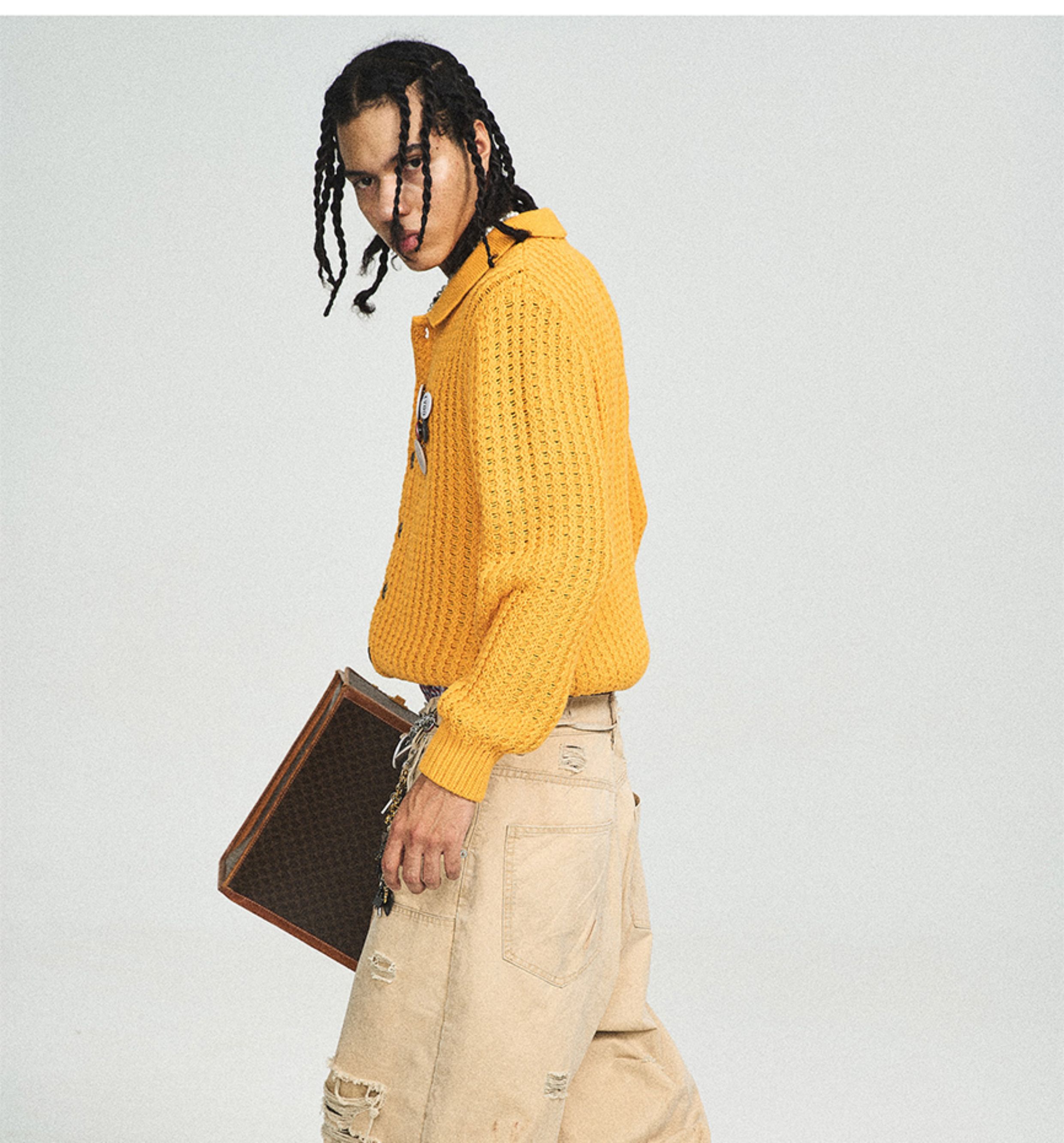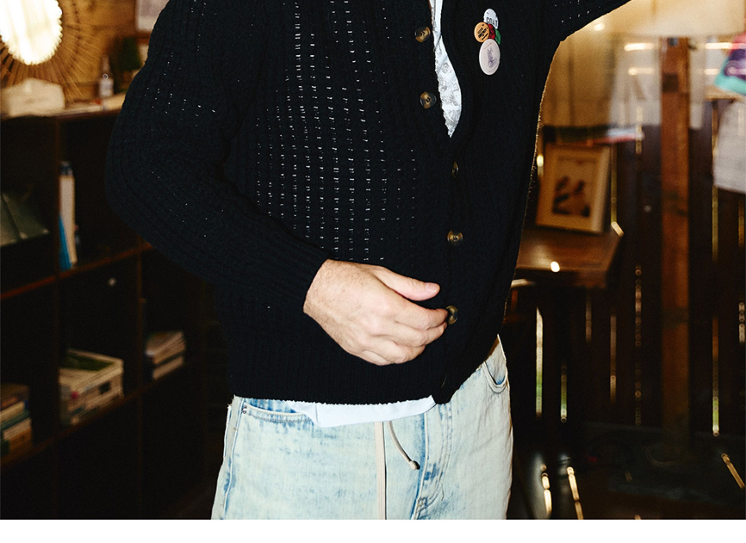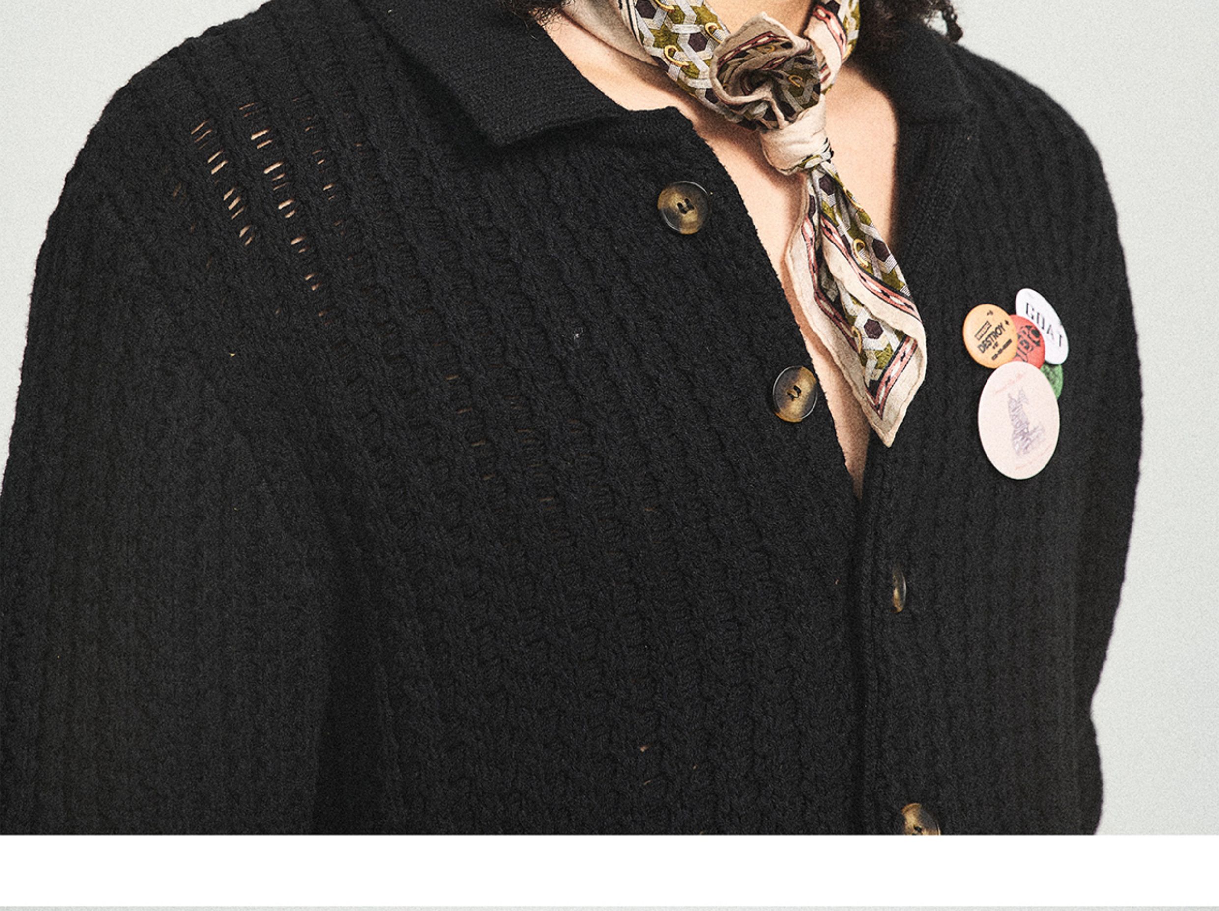 Steepc Bigbang Style Three-Color Lazy Short Wide Soft Knit Cardigan with Button Badge Sweater Jacket