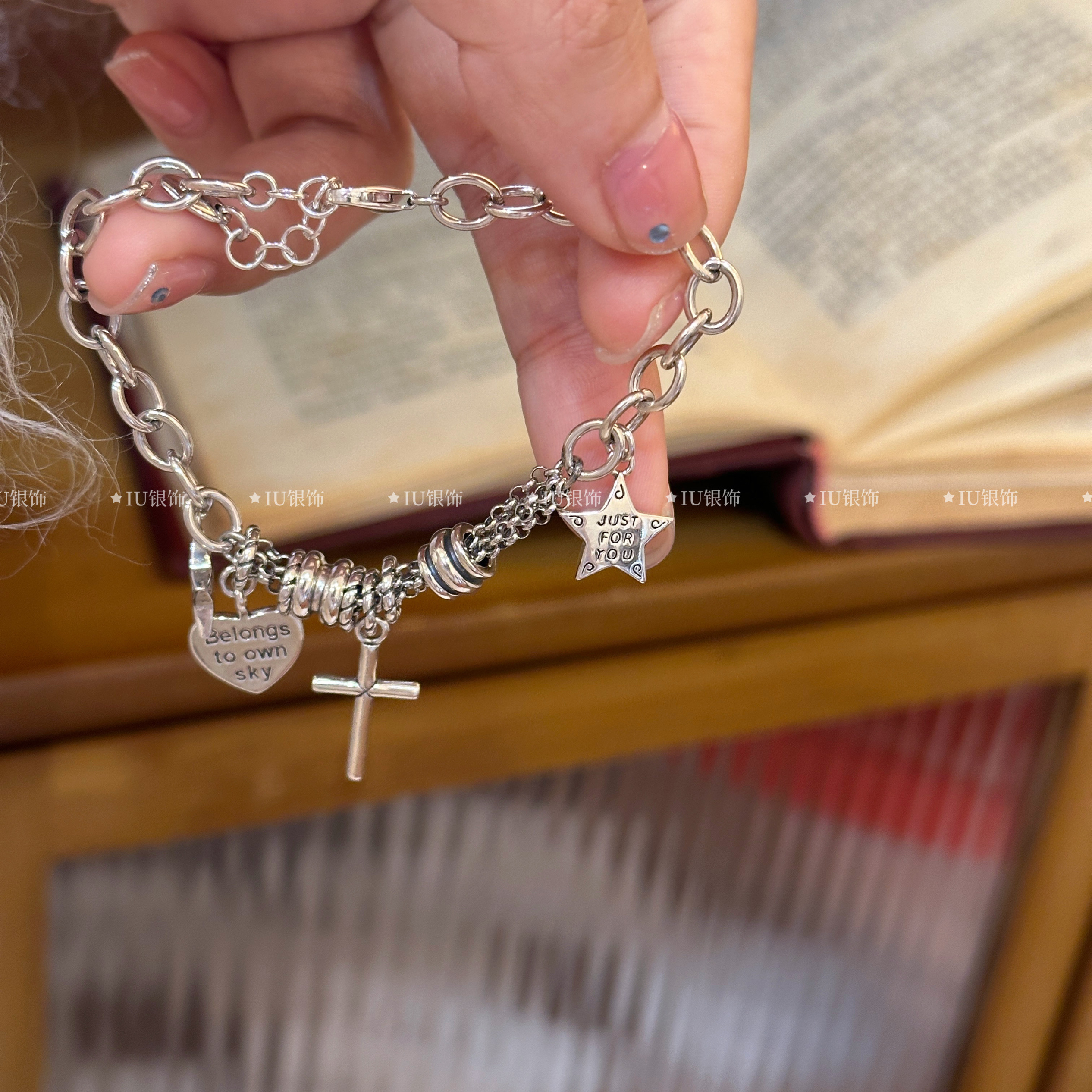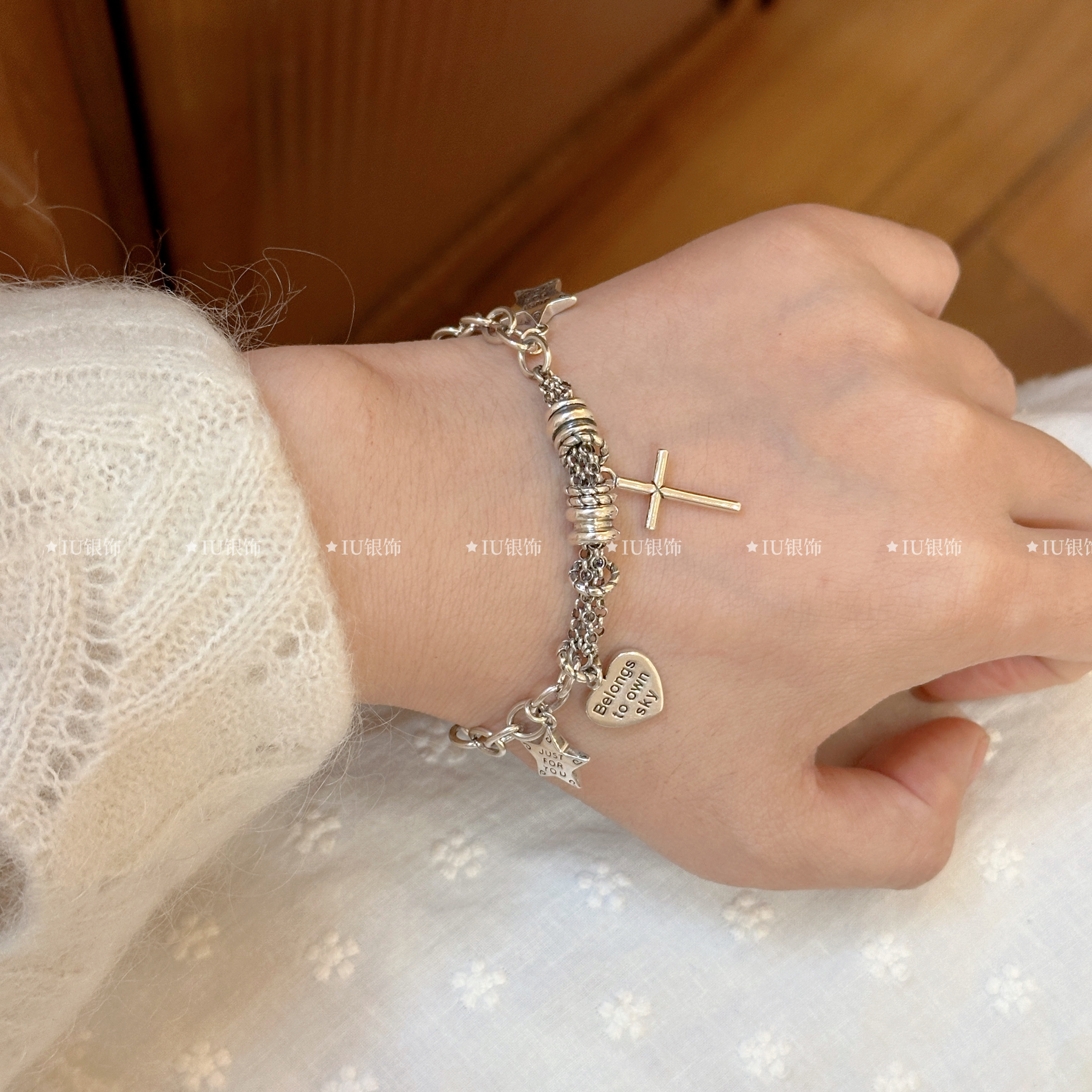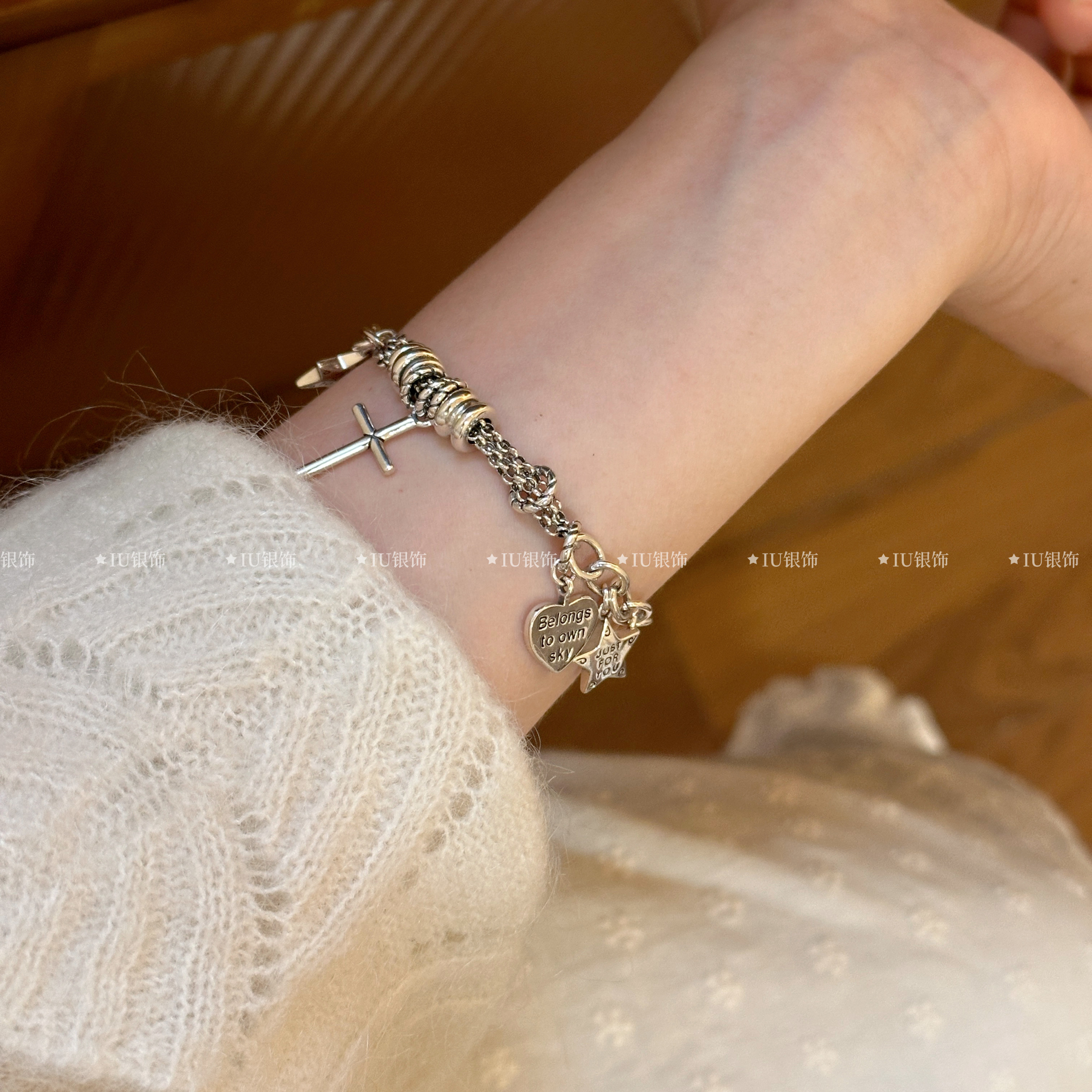 Xingluo S925 Sterling Silver Bracelet ins Minimalist Retro Five-Pointed Star Heart Bracelet Trendy Bracelet