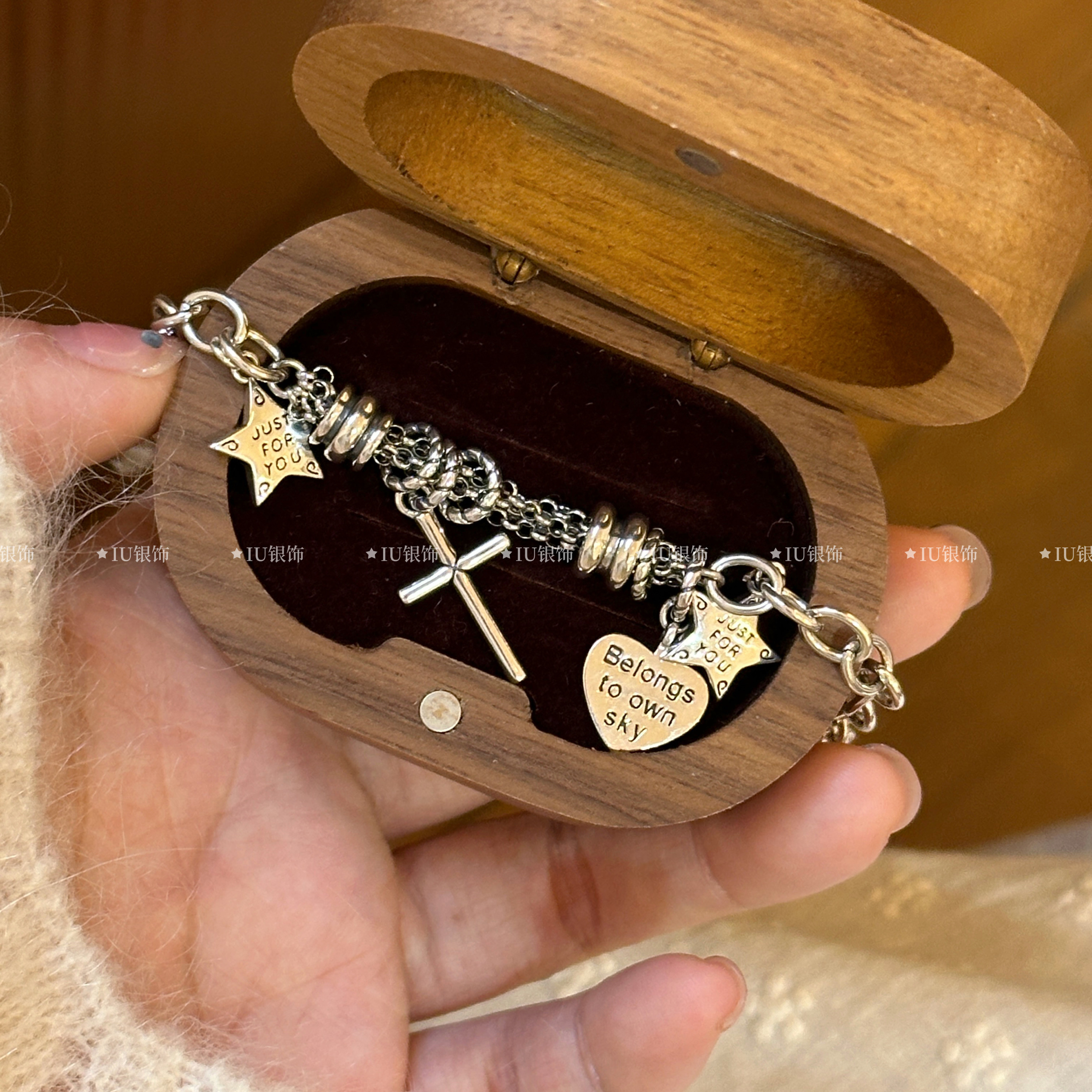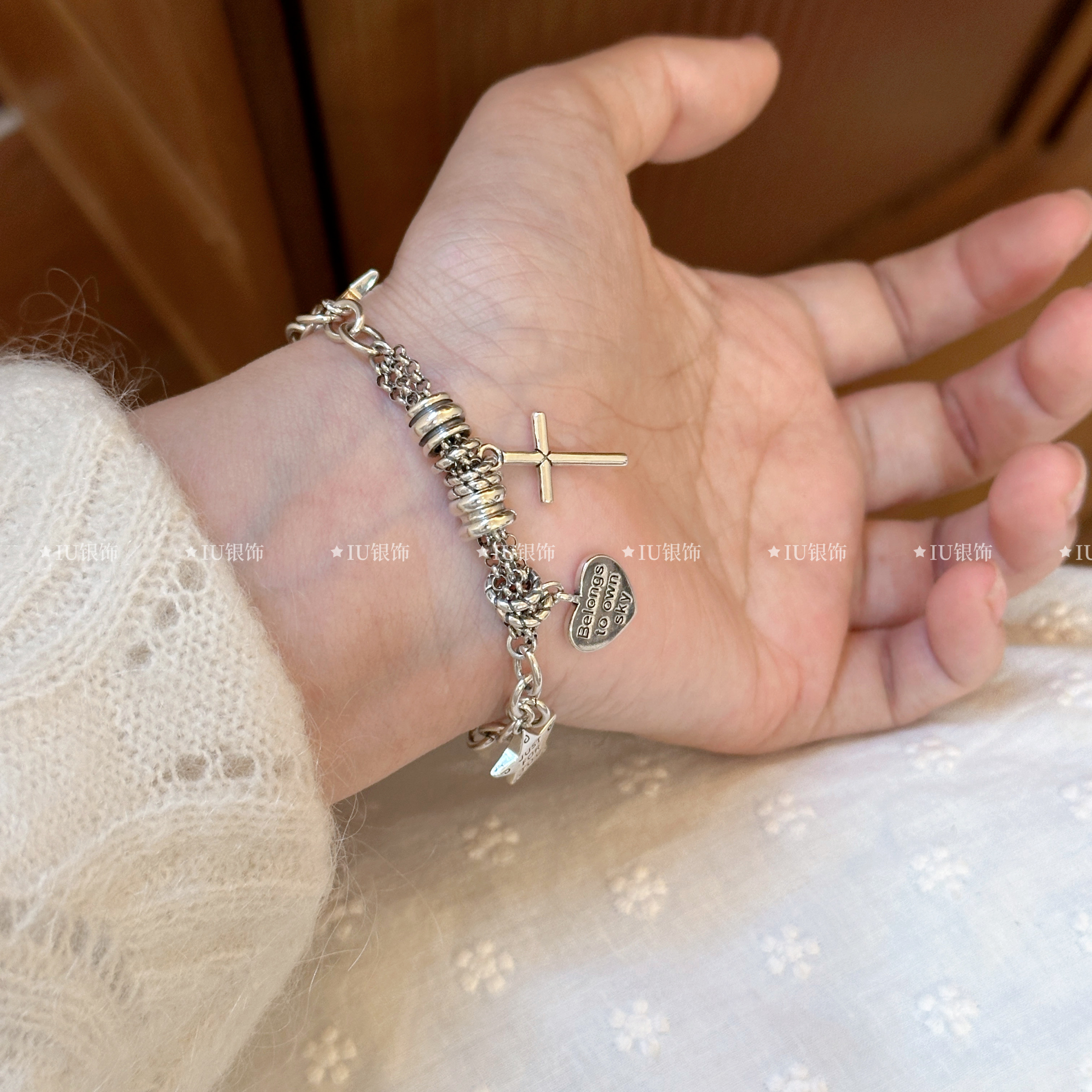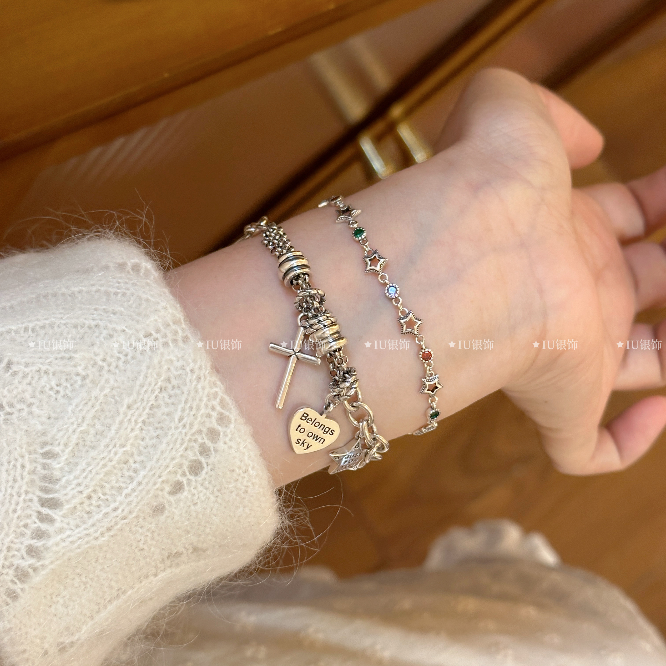 Xingluo S925 Sterling Silver Bracelet ins Minimalist Retro Five-Pointed Star Heart Bracelet Trendy Bracelet
