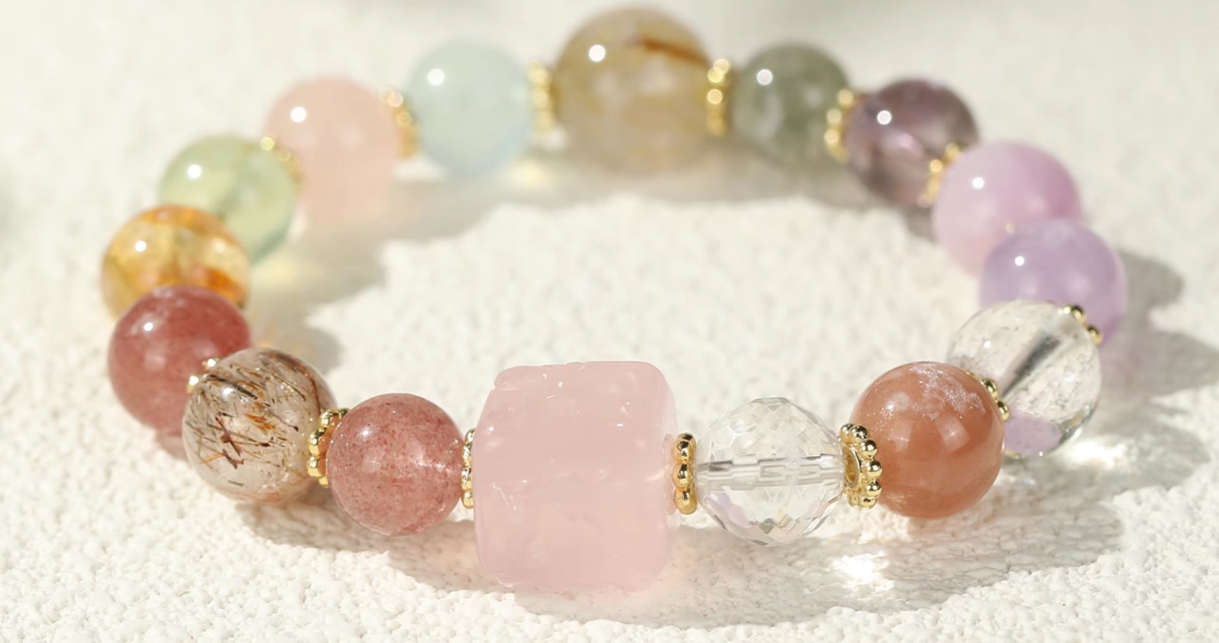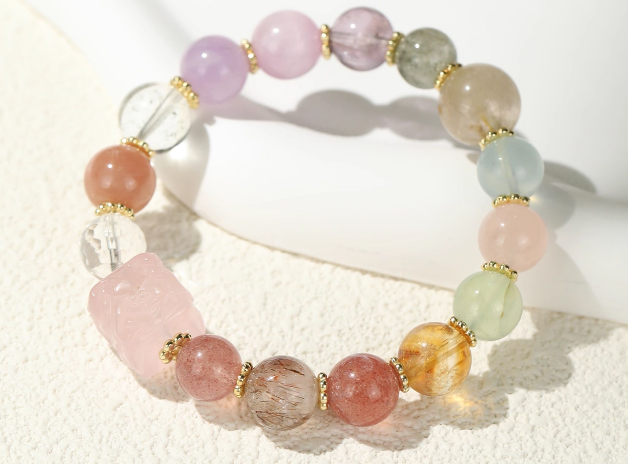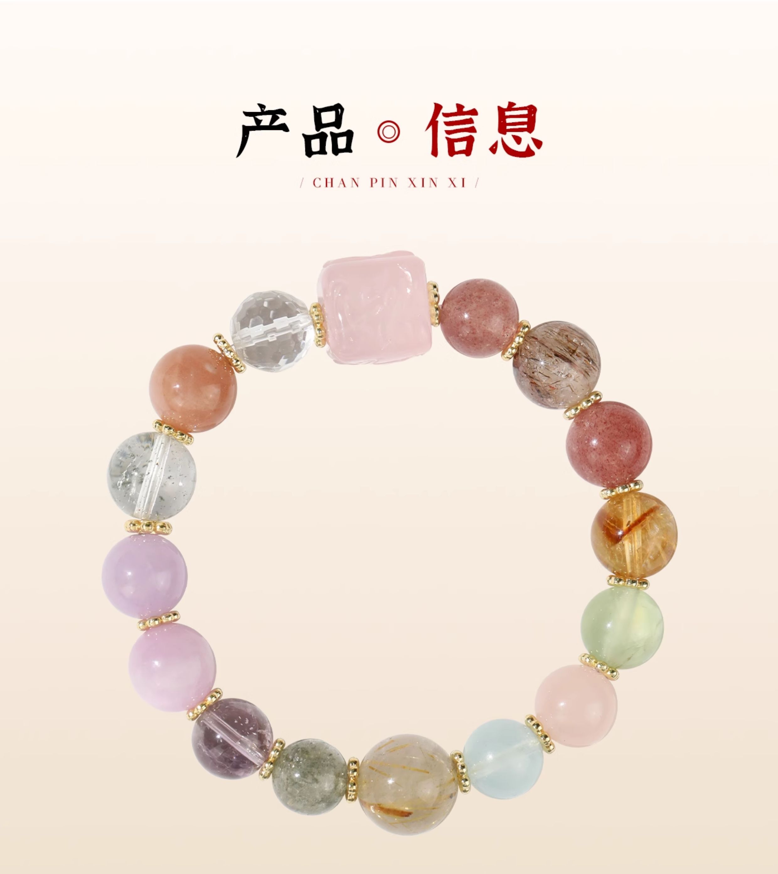 Wutai Mountain Nine Purple Fire Eternal Life Super Seven Green Phantom Amethyst Bracelet Aquamarine Crystal Multi-Gem Bracelet