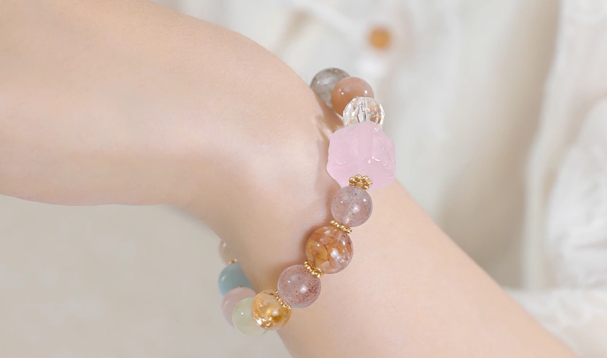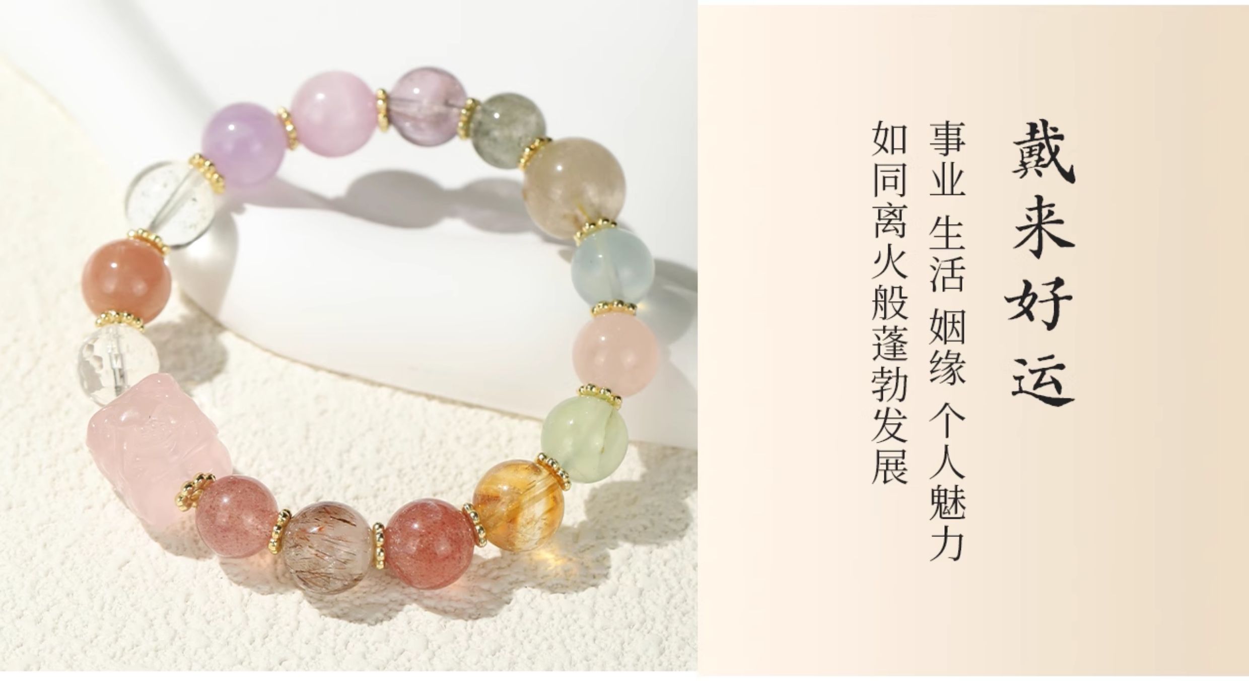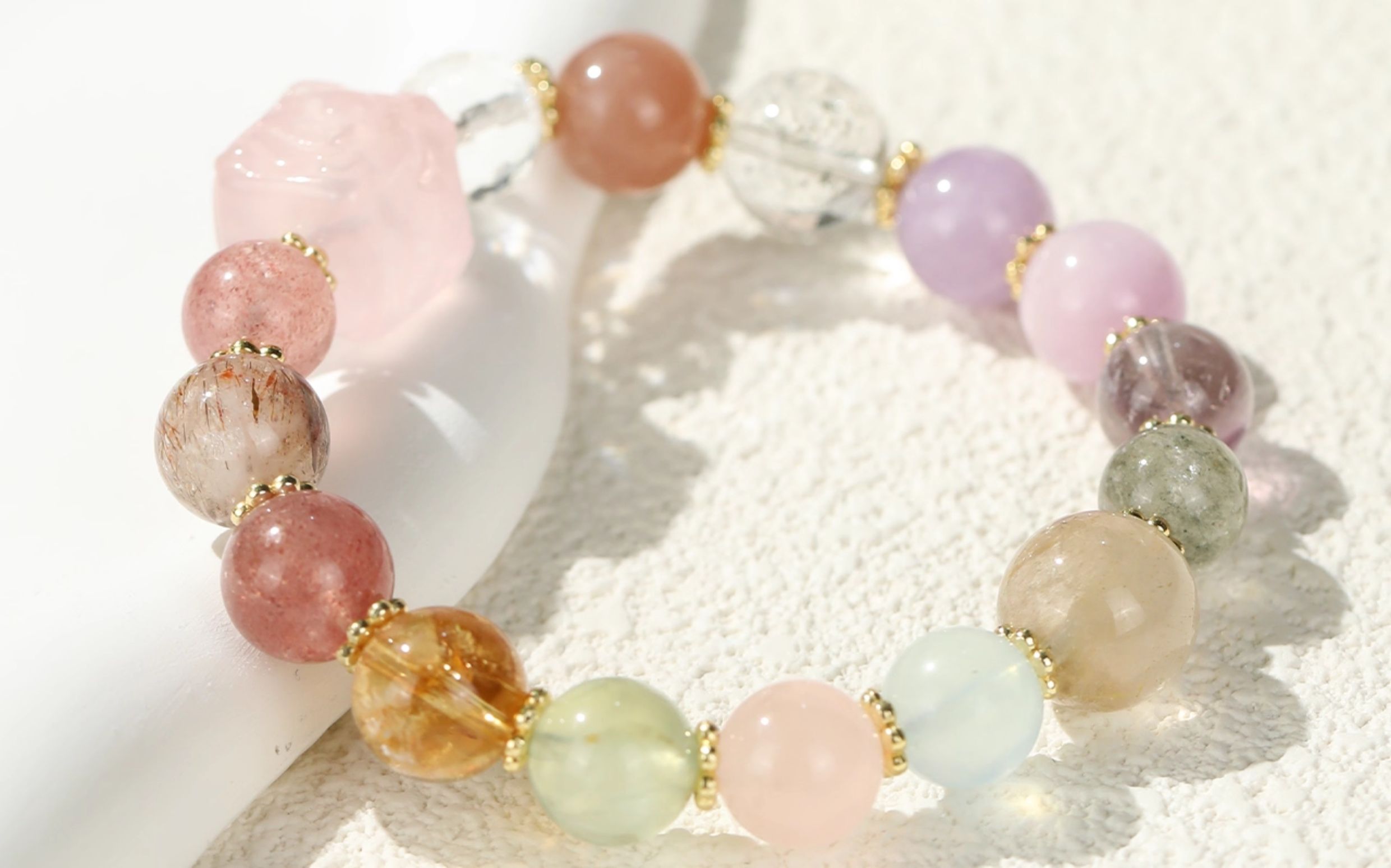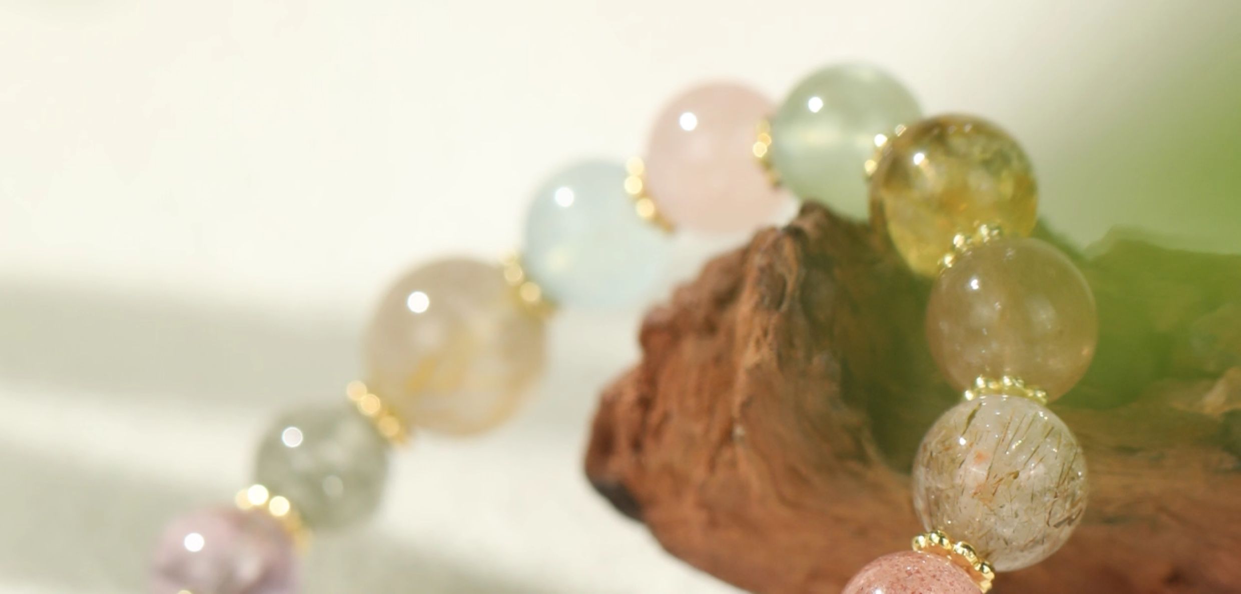 Wutai Mountain Nine Purple Fire Eternal Life Super Seven Green Phantom Amethyst Bracelet Aquamarine Crystal Multi-Gem Bracelet