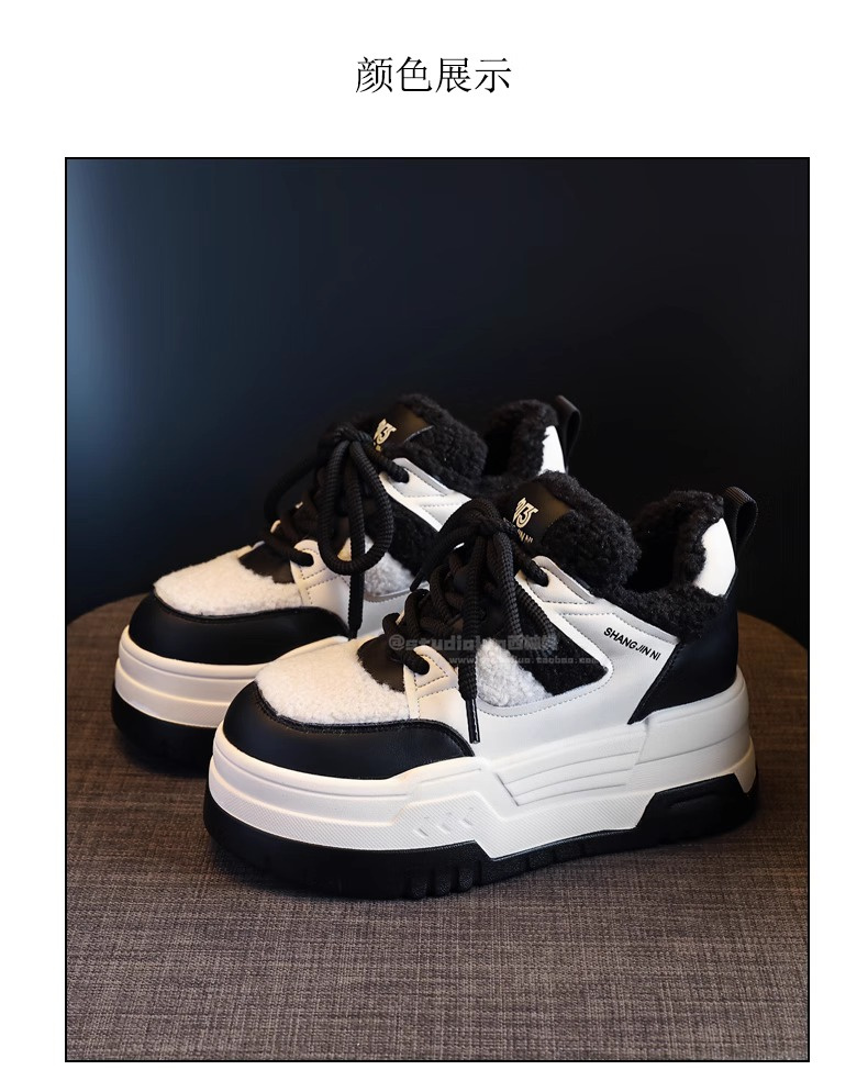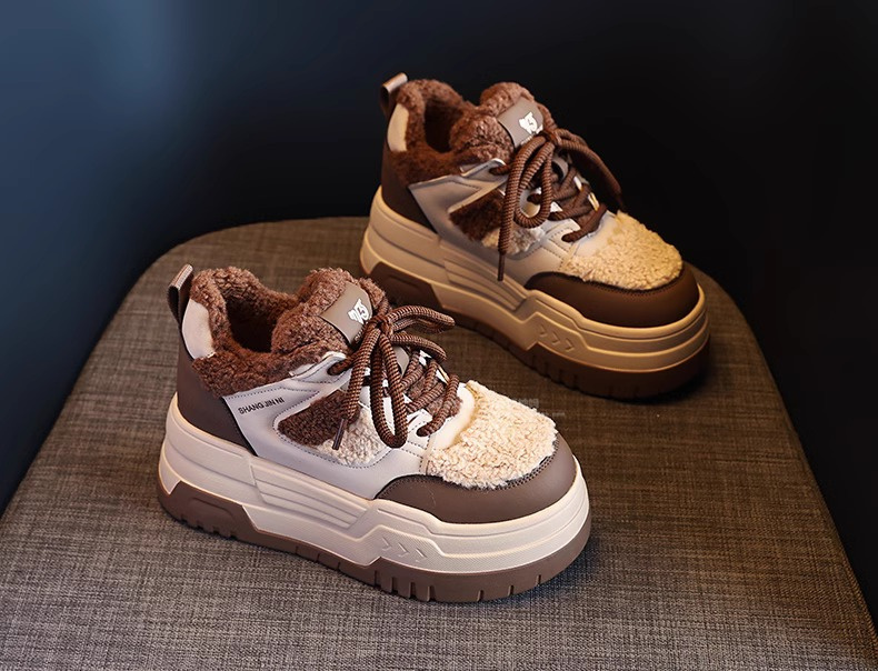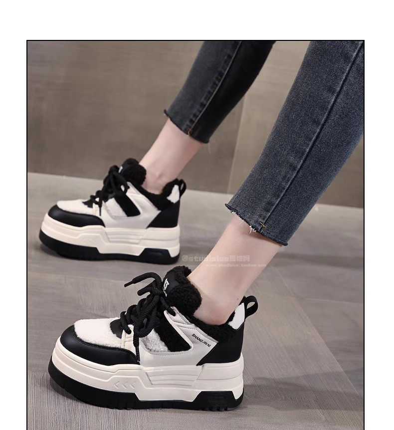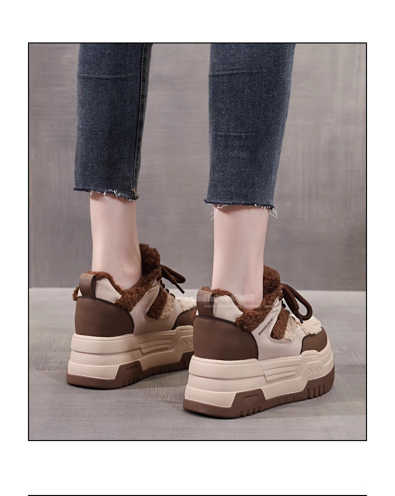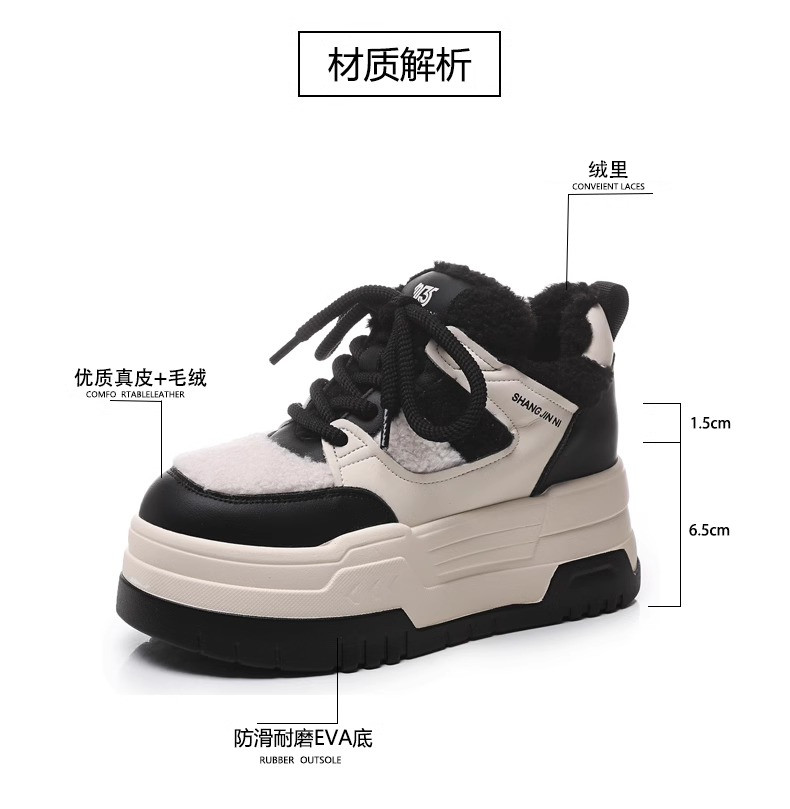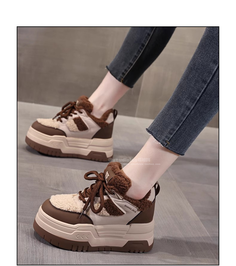 Hong Kong Style Height-Increasing Women's Shoes 2025 New Winter Plush Cotton Shoes Thick-Soled Casual Sports Sneakers for Petite Women