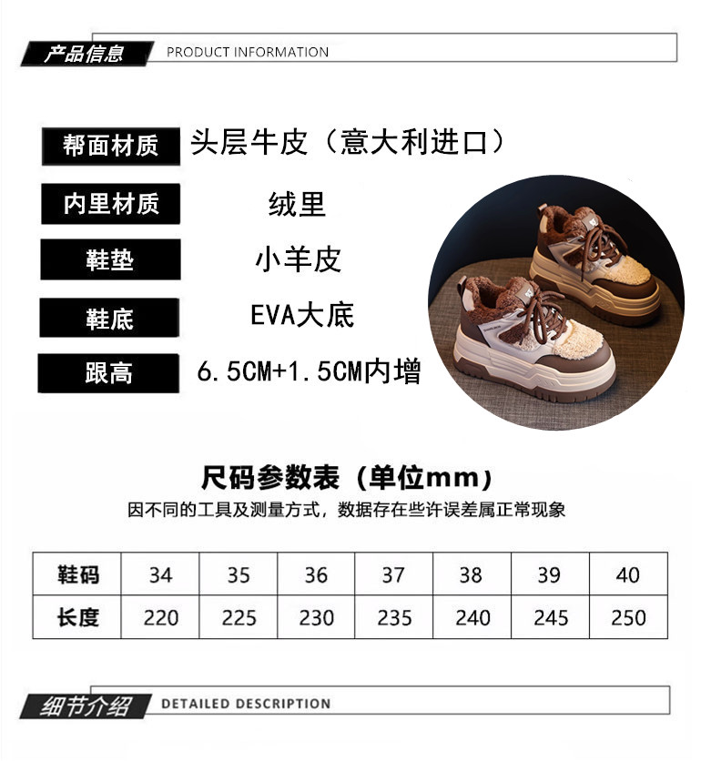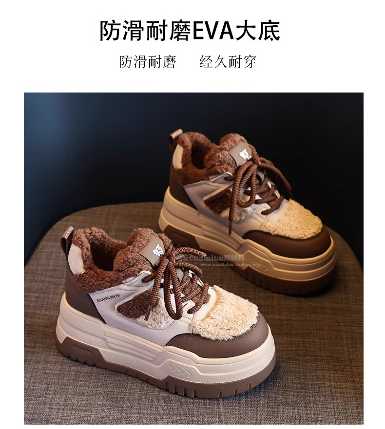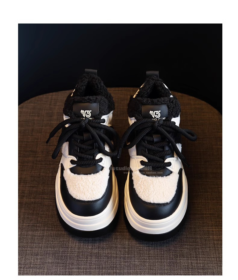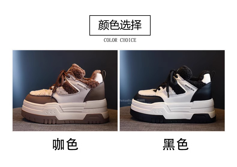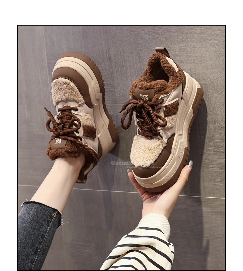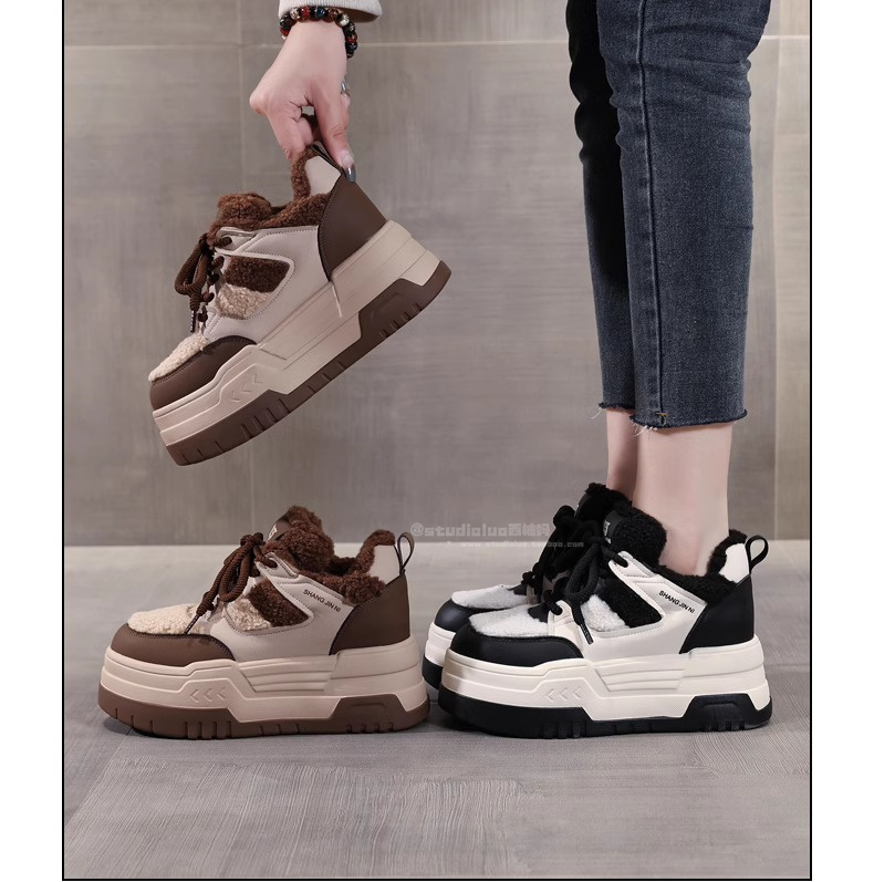 Hong Kong Style Height-Increasing Women's Shoes 2025 New Winter Plush Cotton Shoes Thick-Soled Casual Sports Sneakers for Petite Women