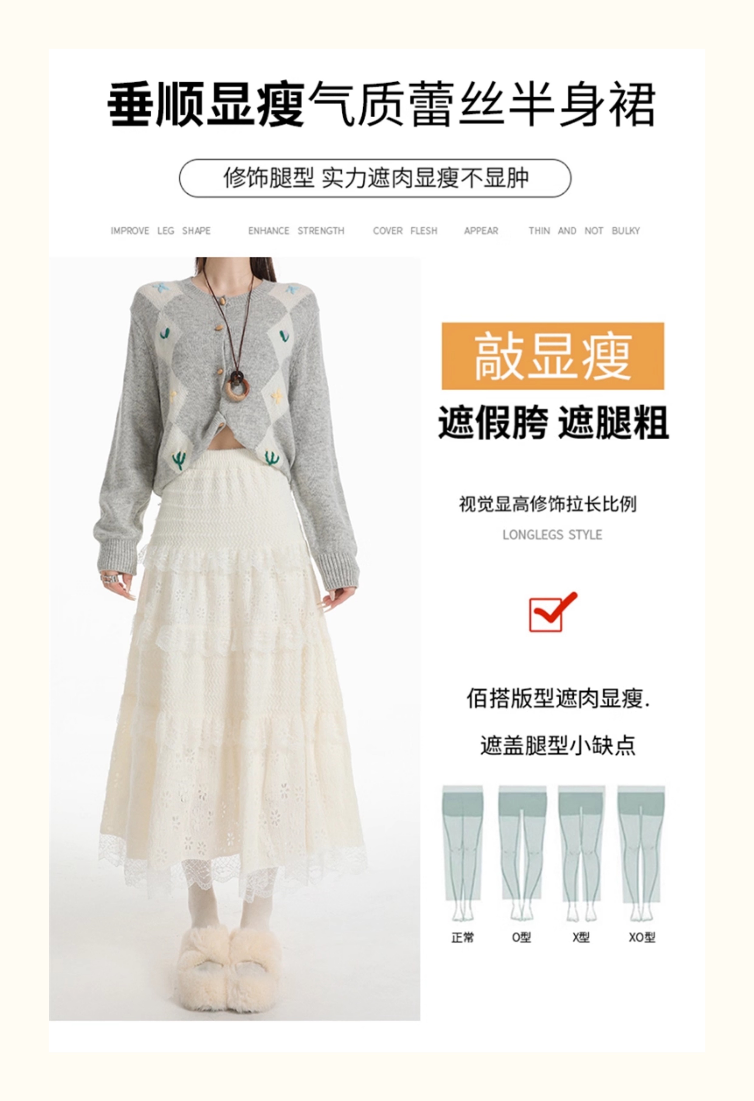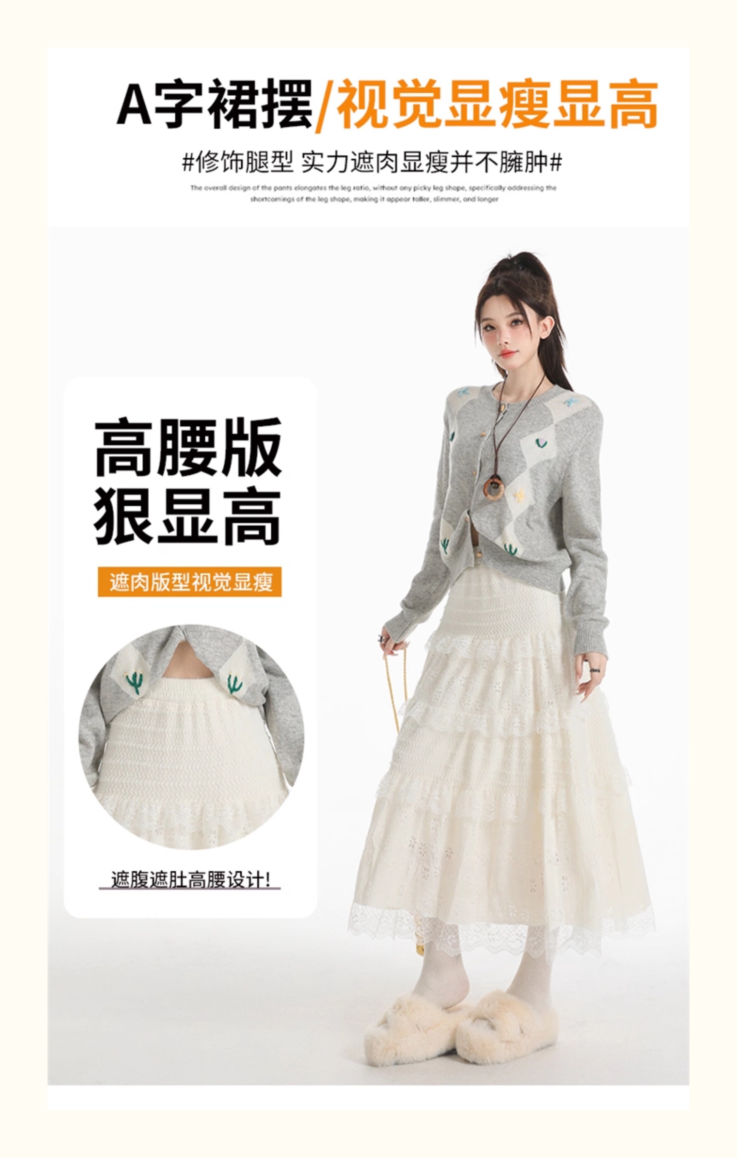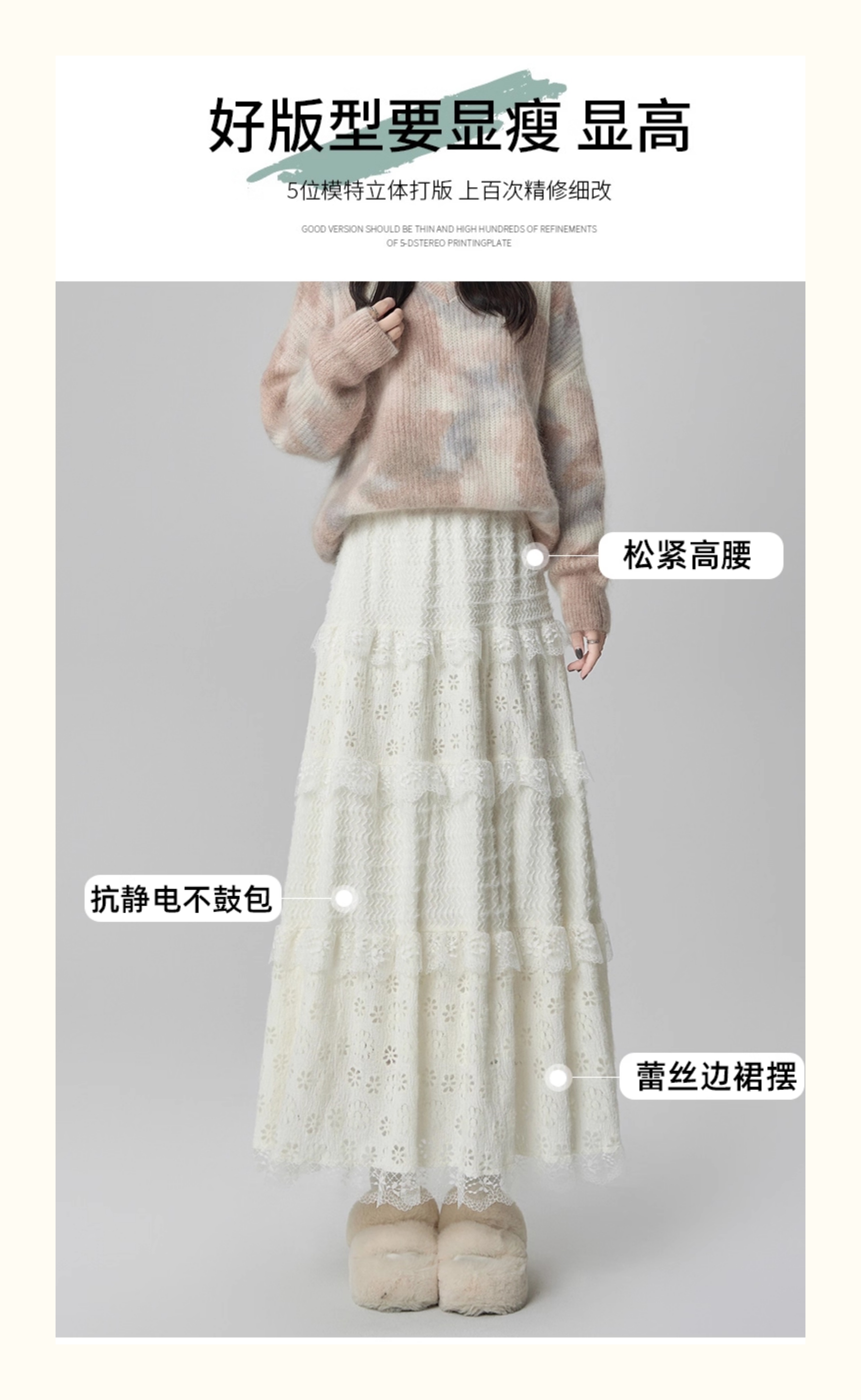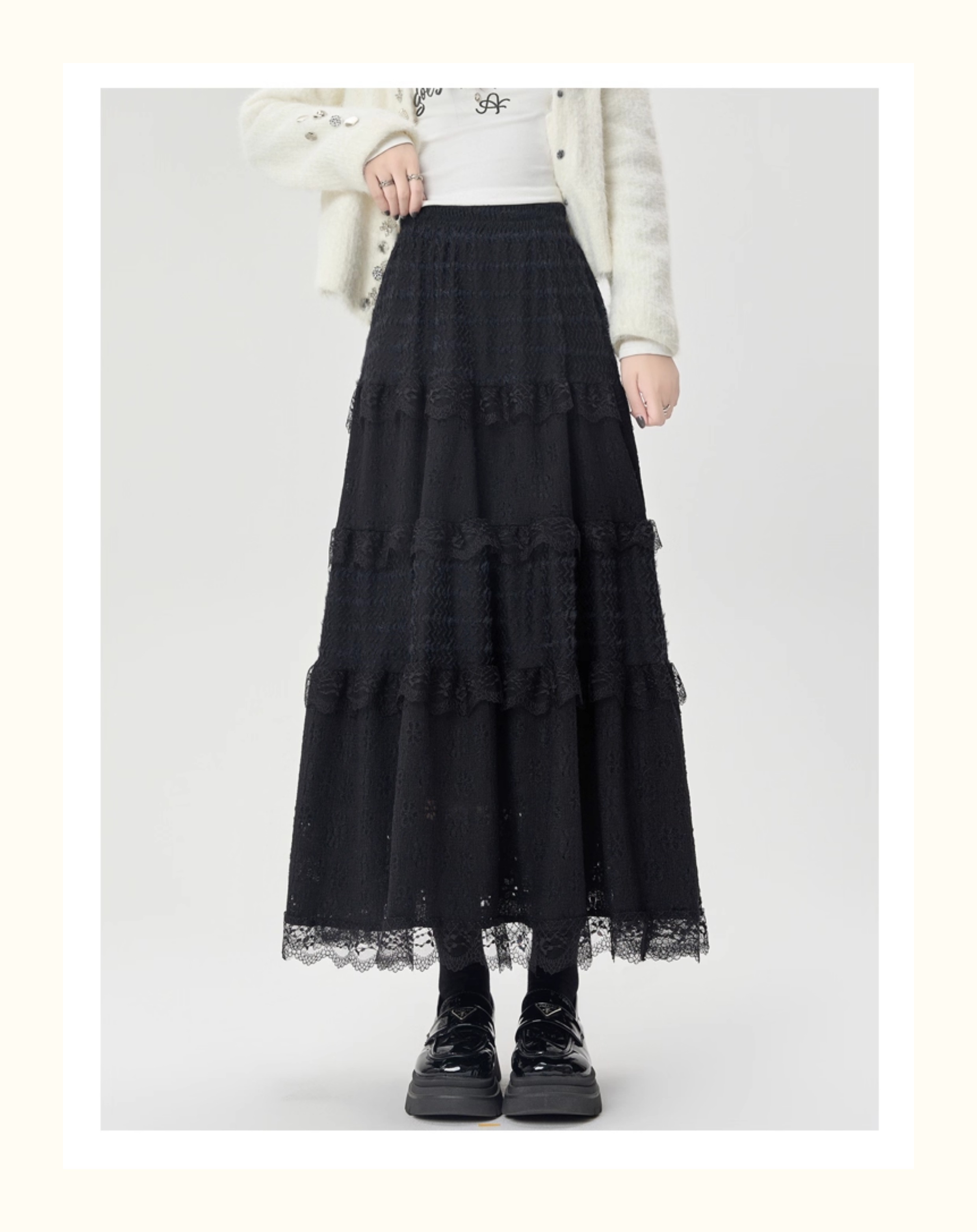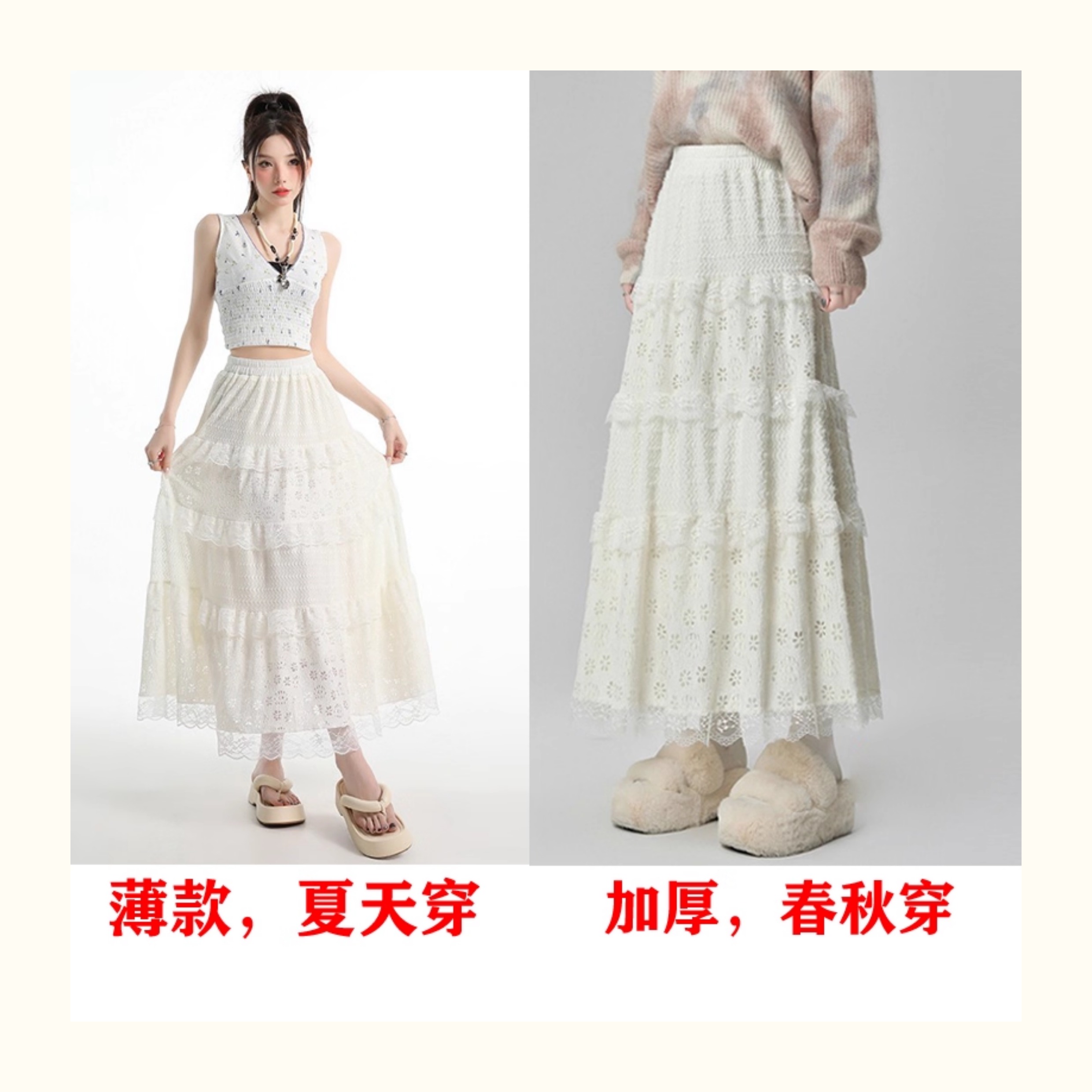 2025 Ballet-Style Embroidered Skirt, Thickened Lace Cake Skirt, Half-Length Skirt for Women, Spring and Autumn Long Skirt, A-Line Skirt, Fairy Skirt