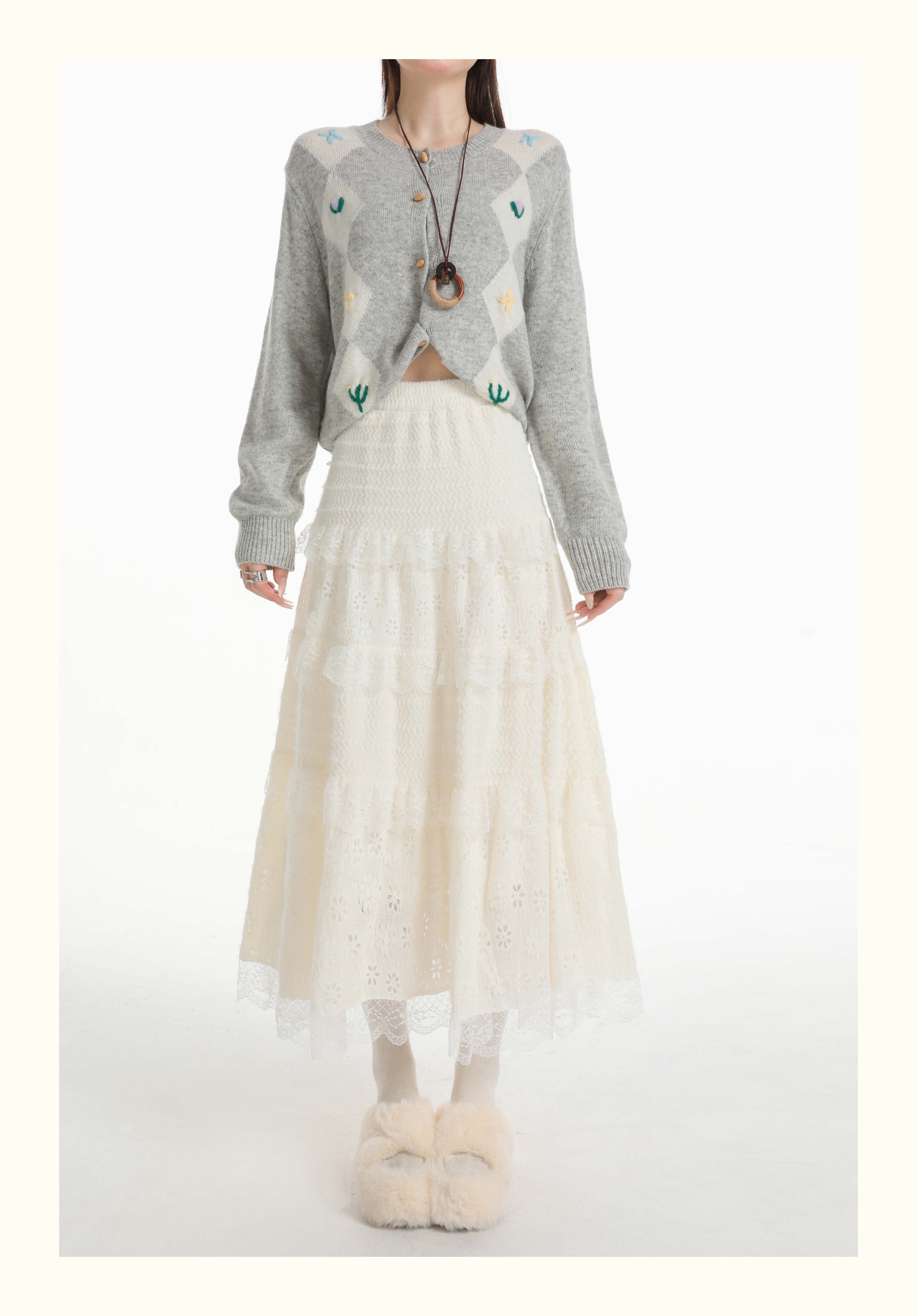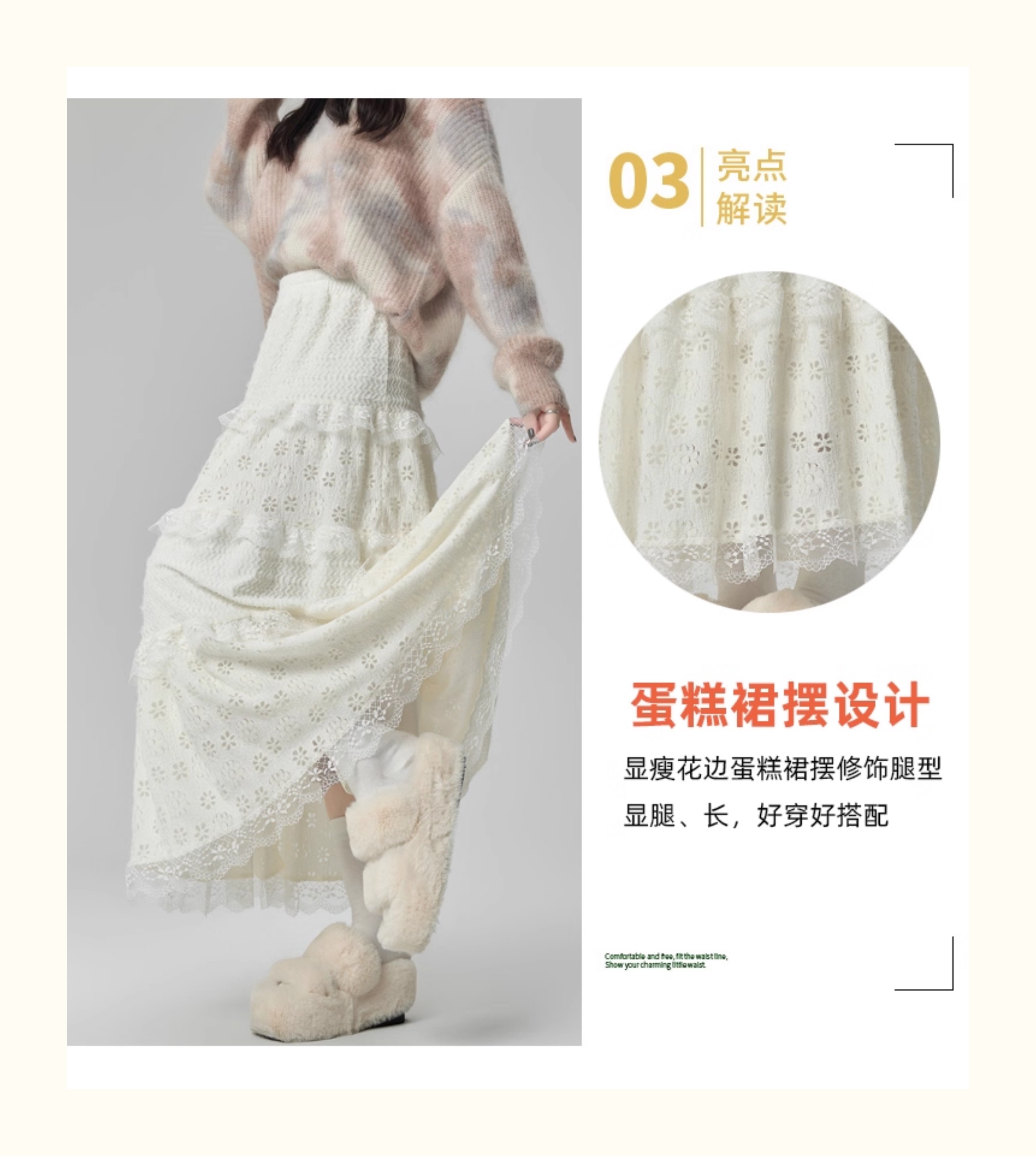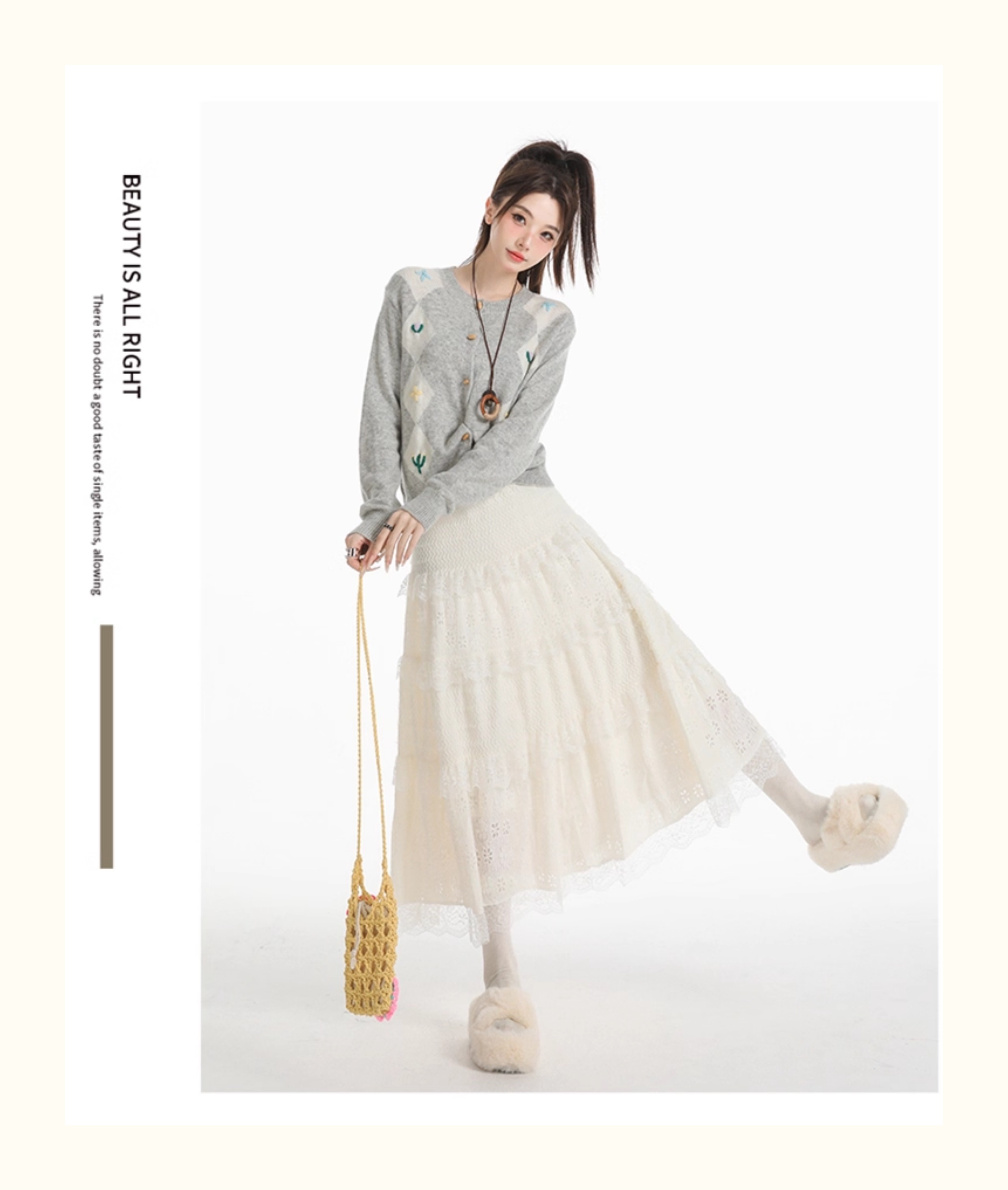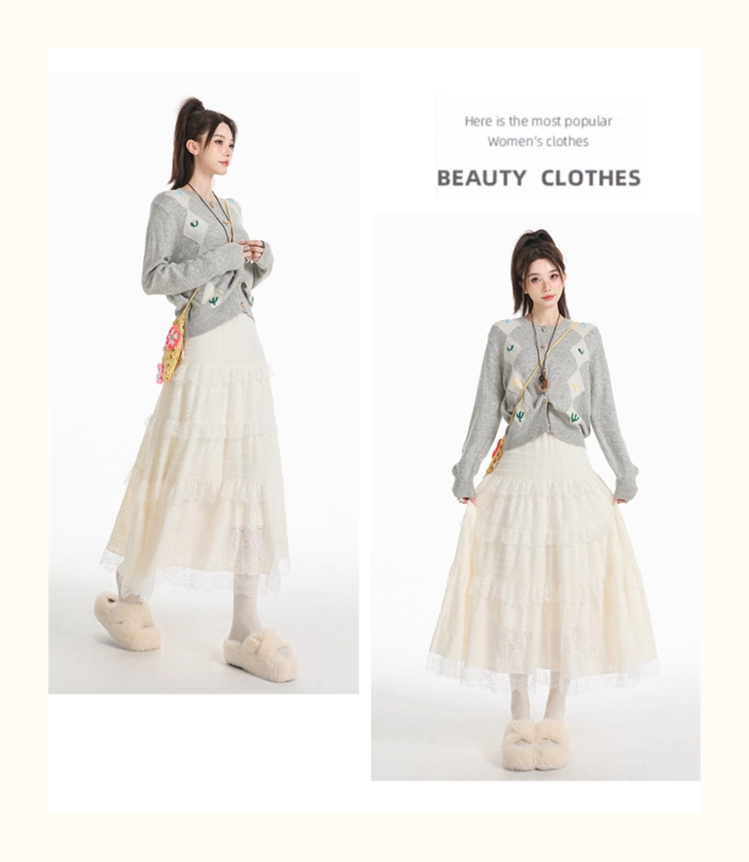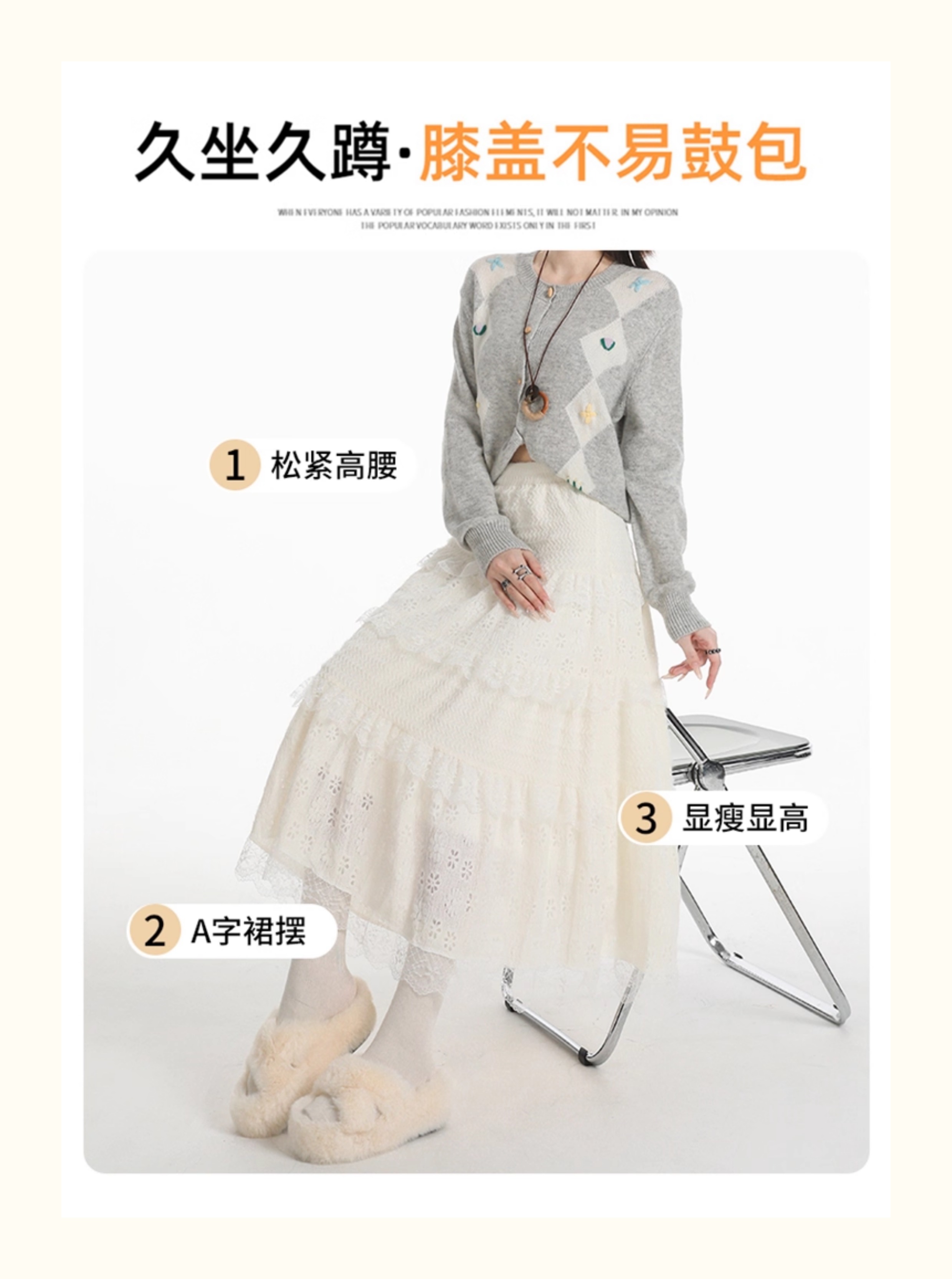 2025 Ballet-Style Embroidered Skirt, Thickened Lace Cake Skirt, Half-Length Skirt for Women, Spring and Autumn Long Skirt, A-Line Skirt, Fairy Skirt