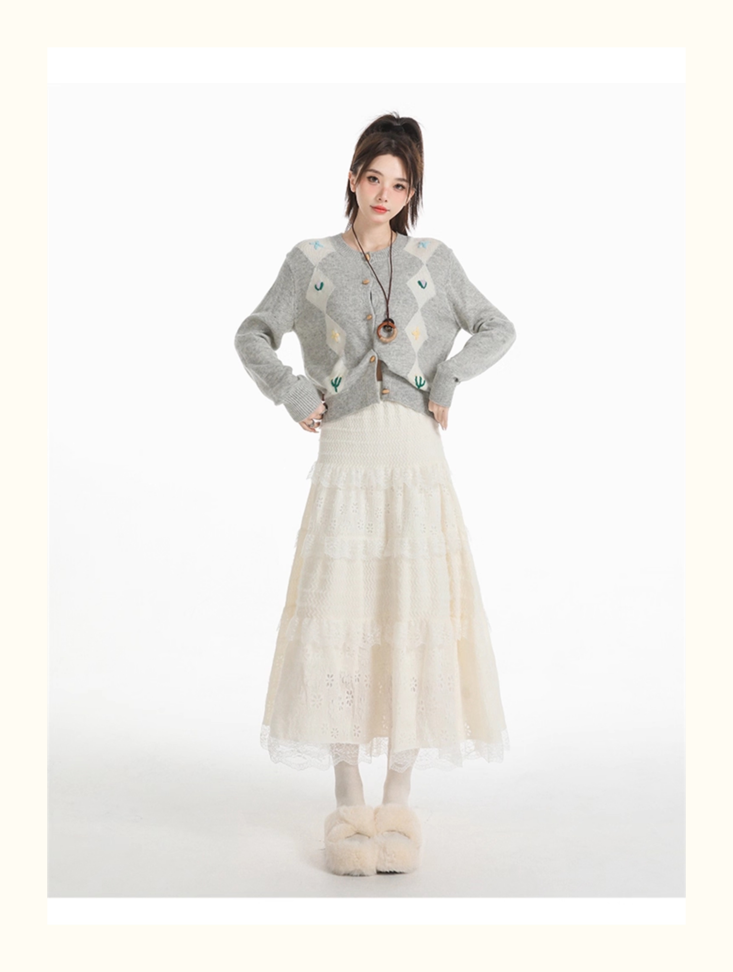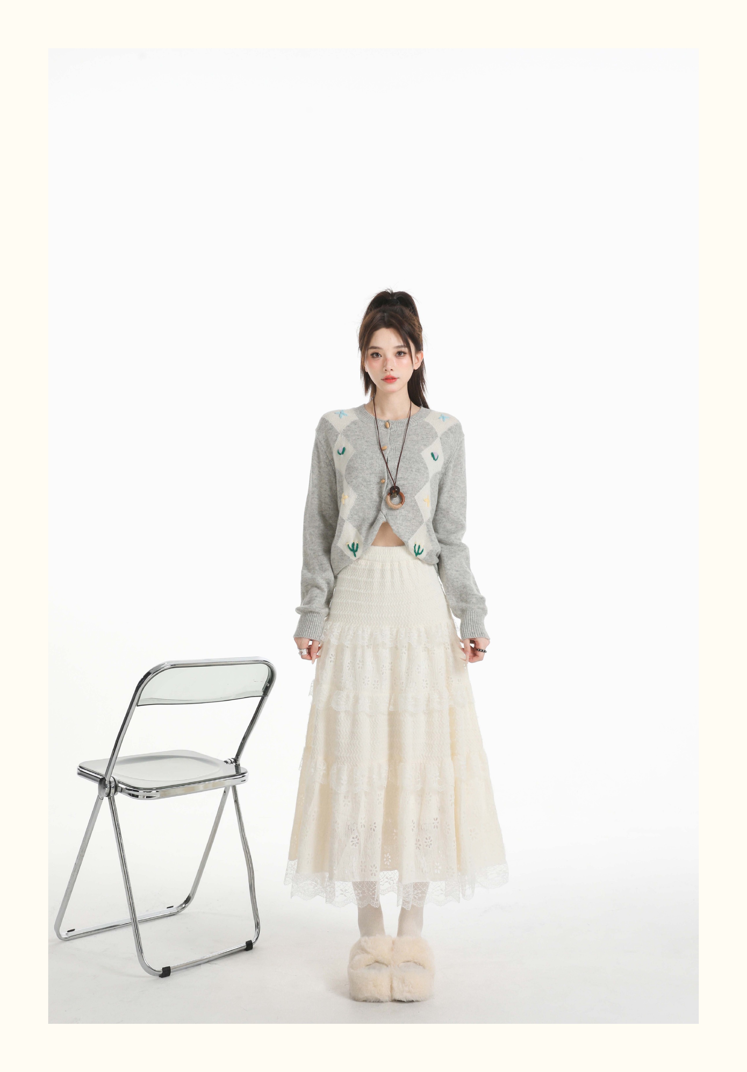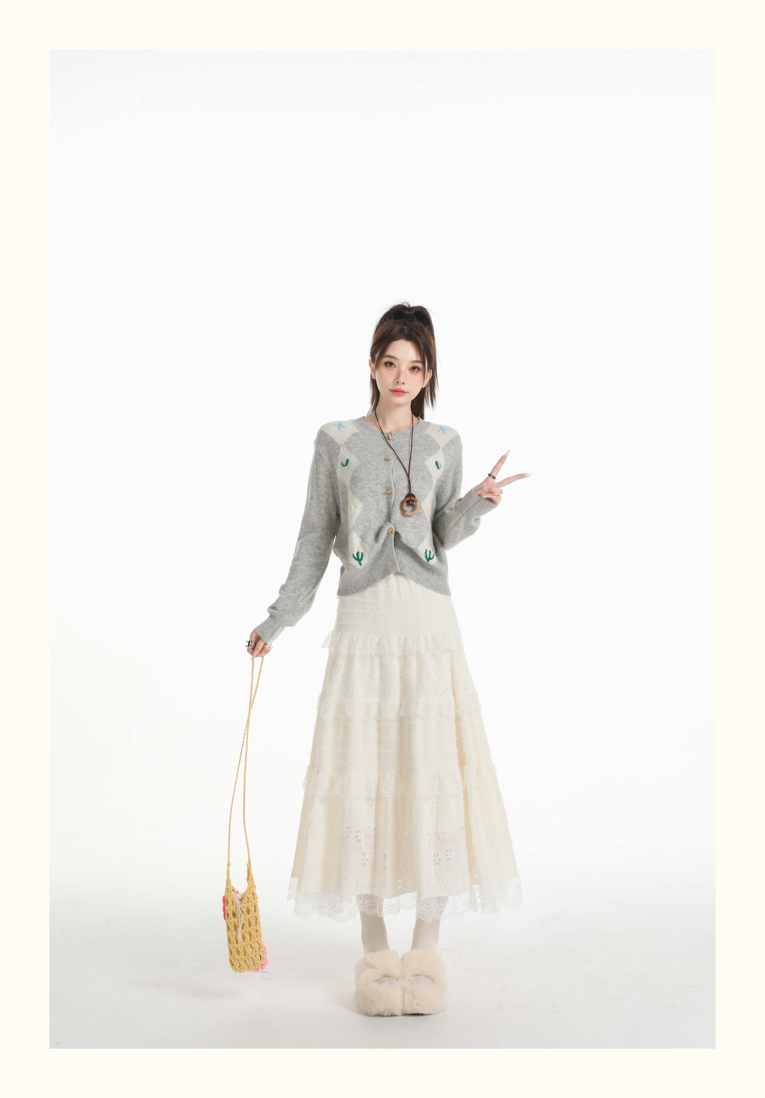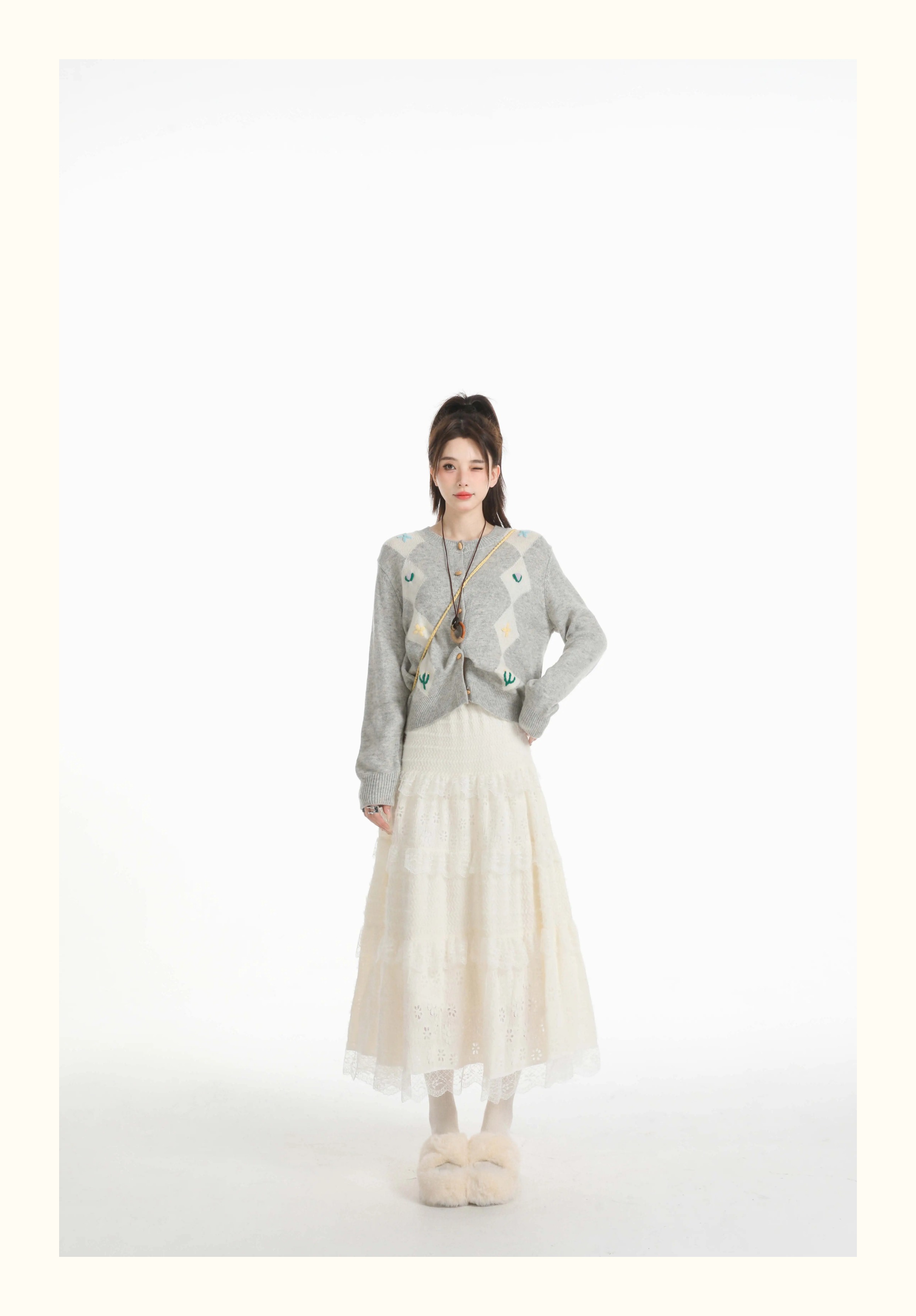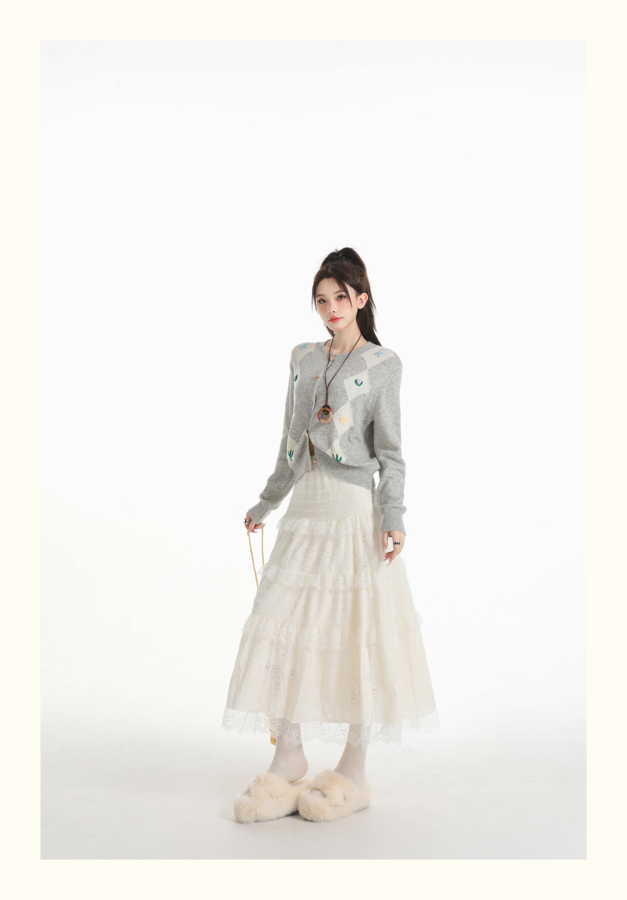 2025 Ballet-Style Embroidered Skirt, Thickened Lace Cake Skirt, Half-Length Skirt for Women, Spring and Autumn Long Skirt, A-Line Skirt, Fairy Skirt