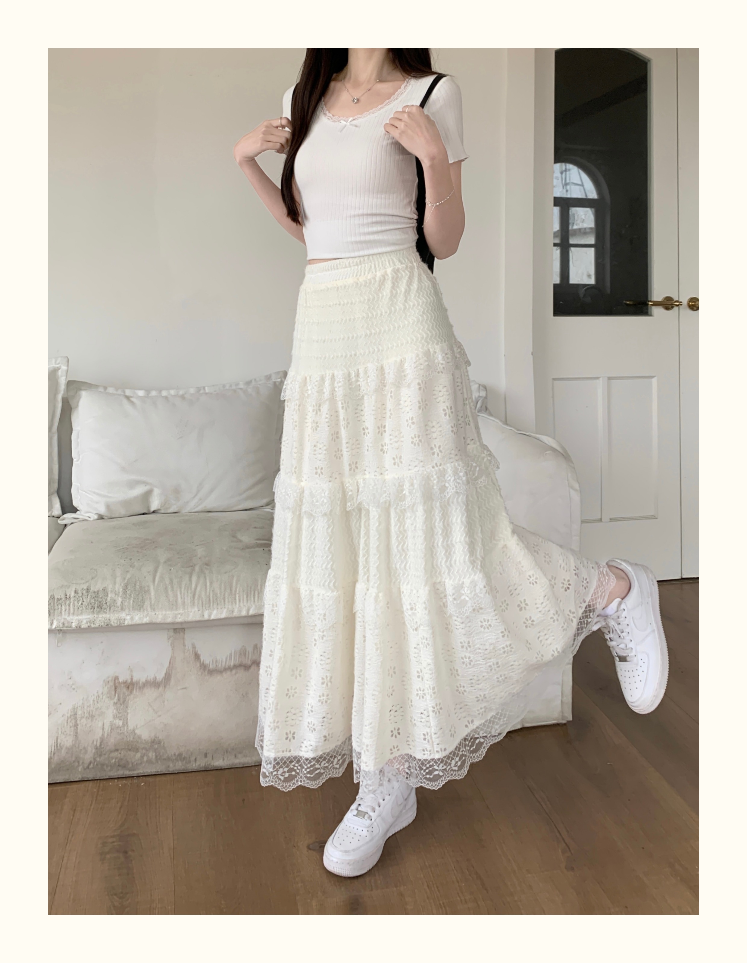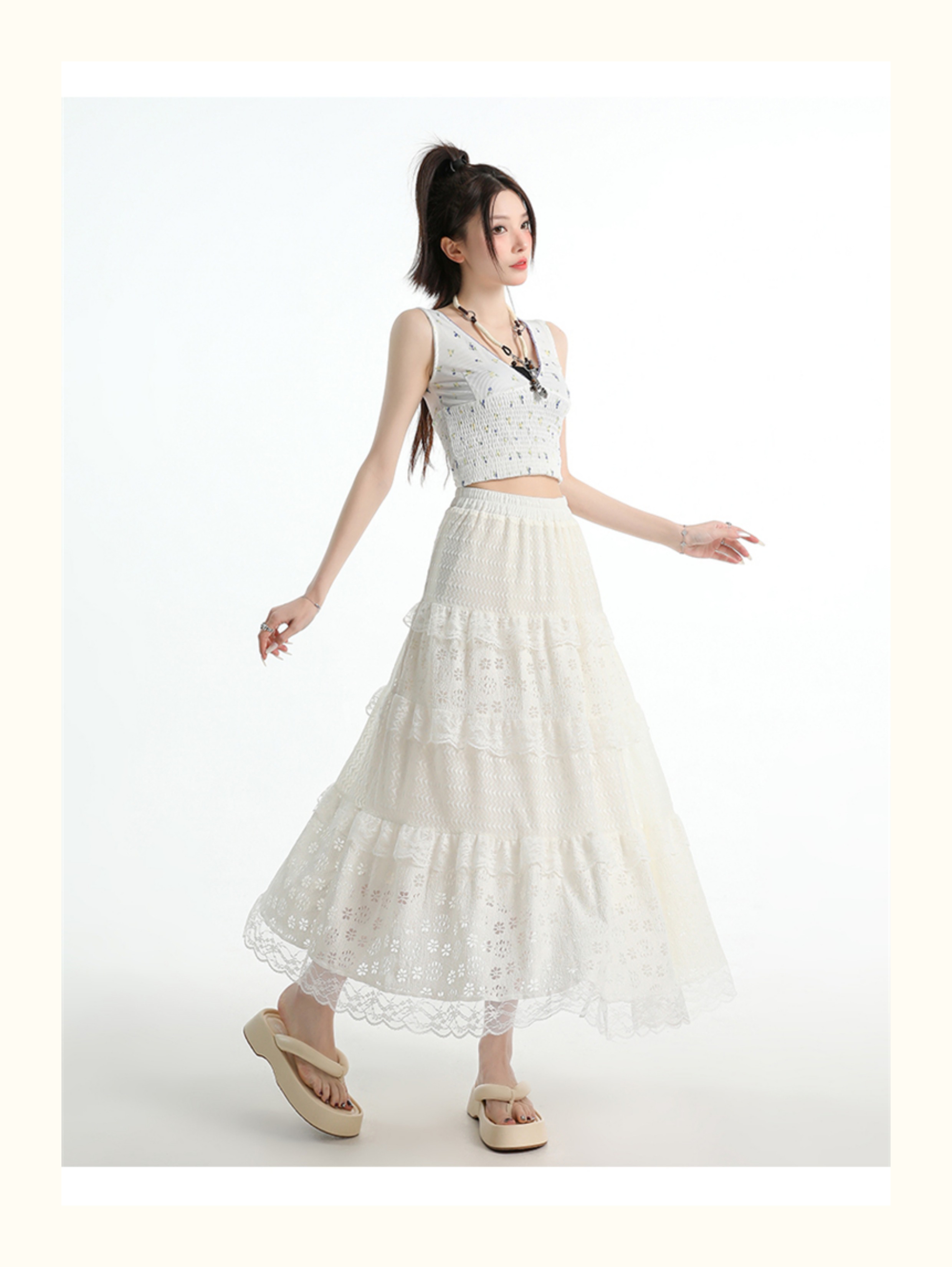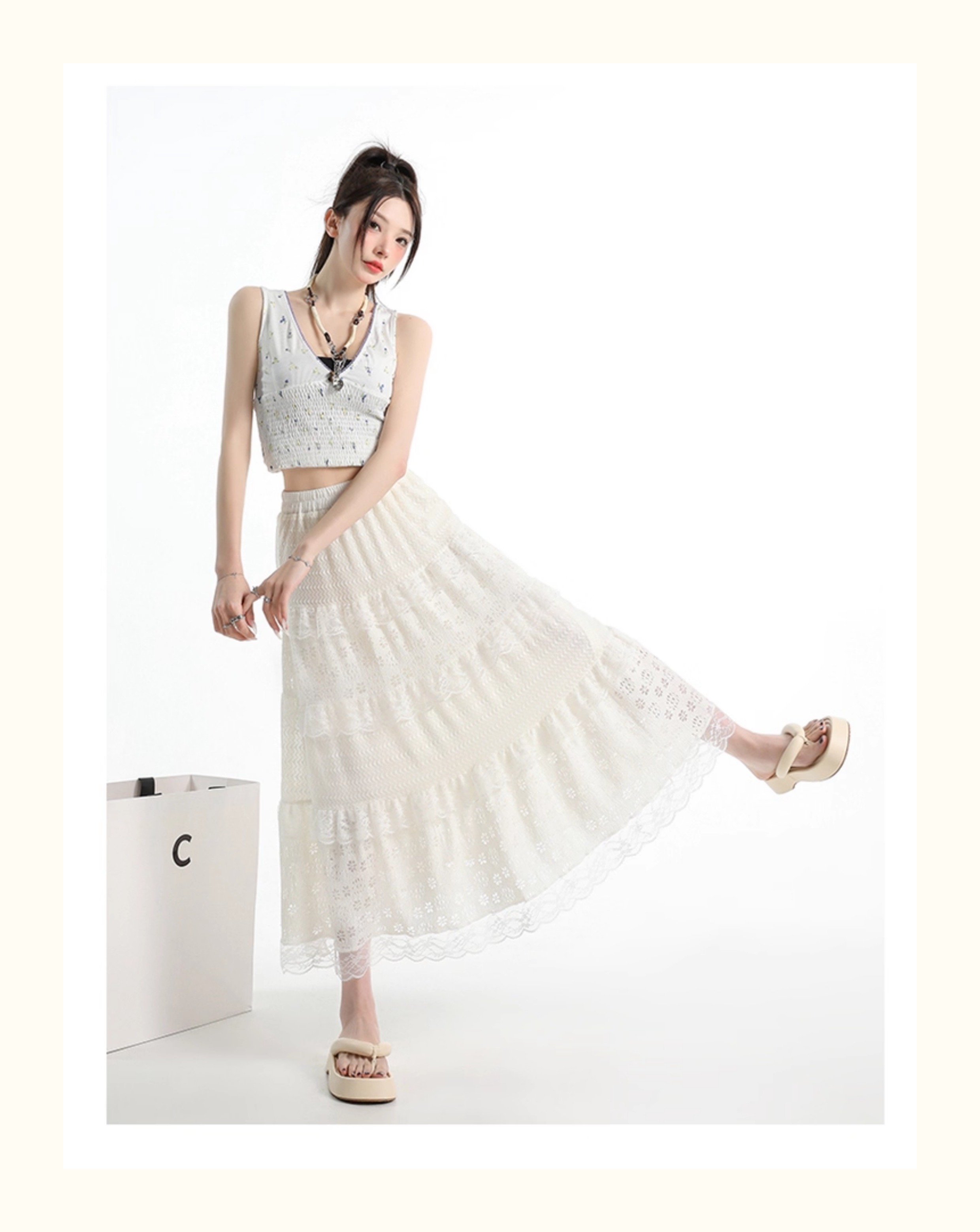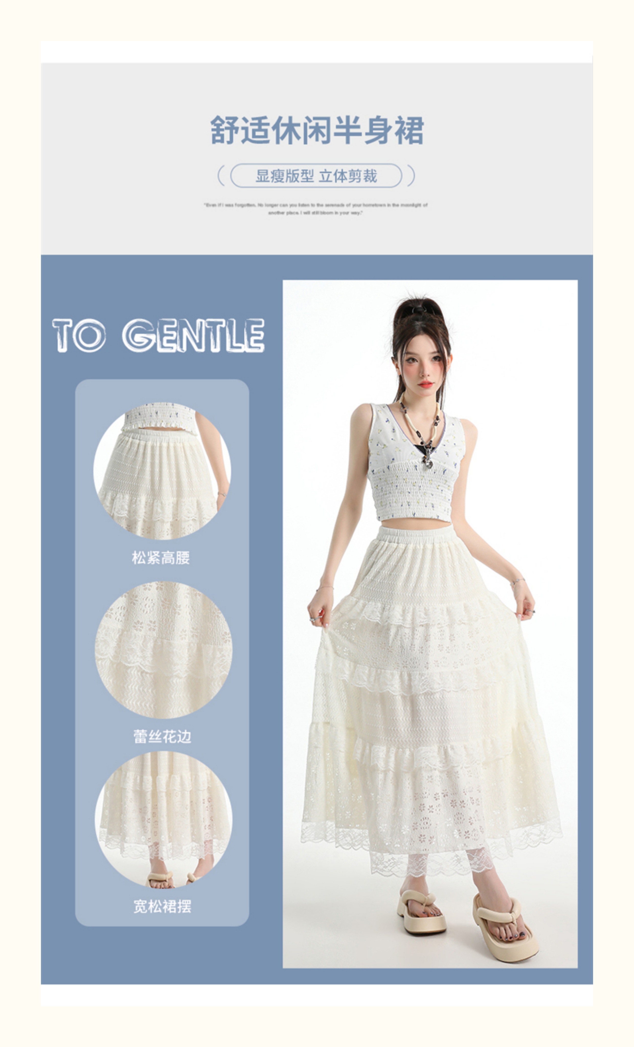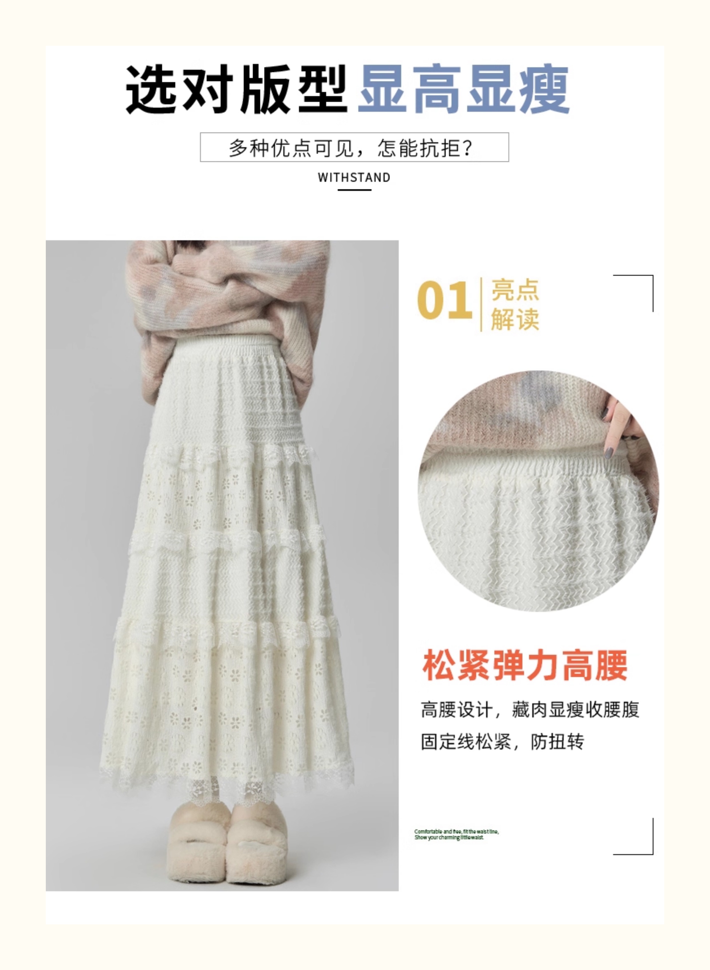 2025 Ballet-Style Embroidered Skirt, Thickened Lace Cake Skirt, Half-Length Skirt for Women, Spring and Autumn Long Skirt, A-Line Skirt, Fairy Skirt