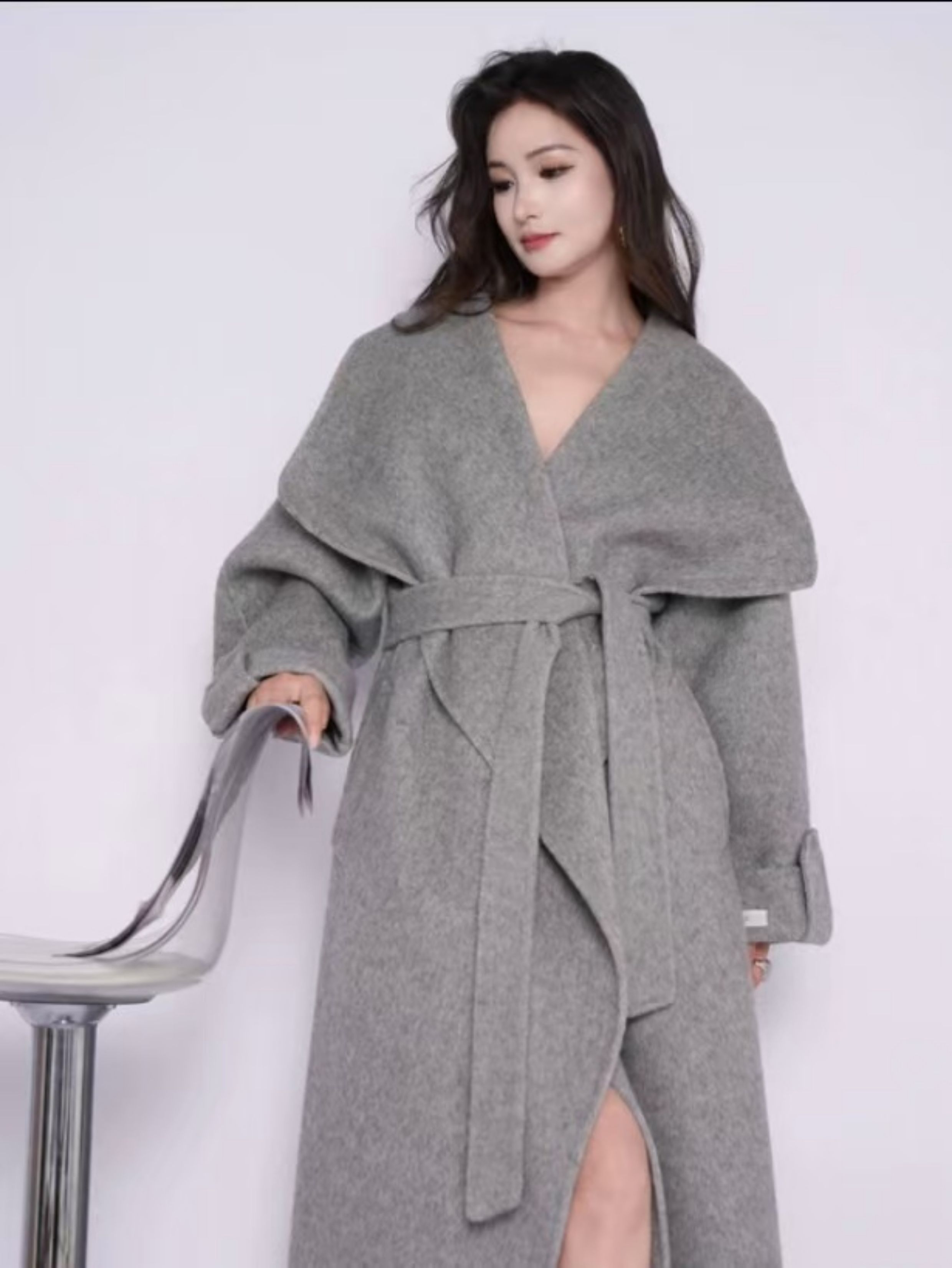 Double-Sided Cashmere Outwear Woolen Outwear for Women in Autumn and Winter High-End Large Lapel Buckle Removable Label Rejection 20 Yak Velvet
