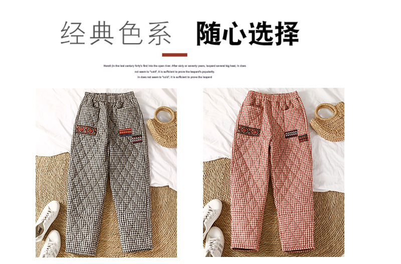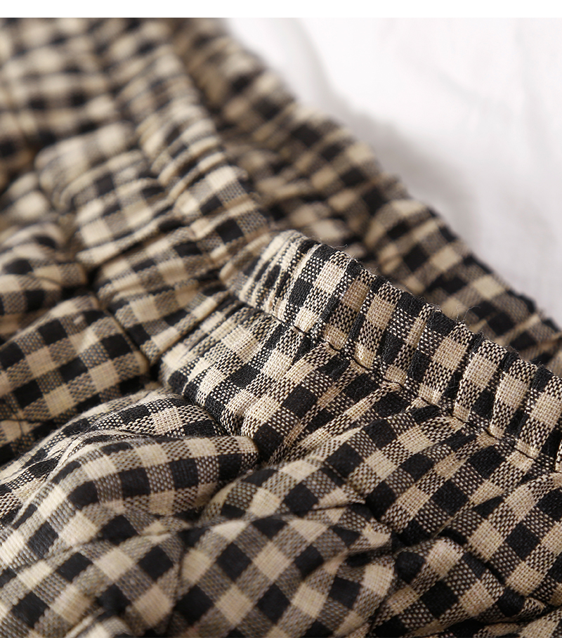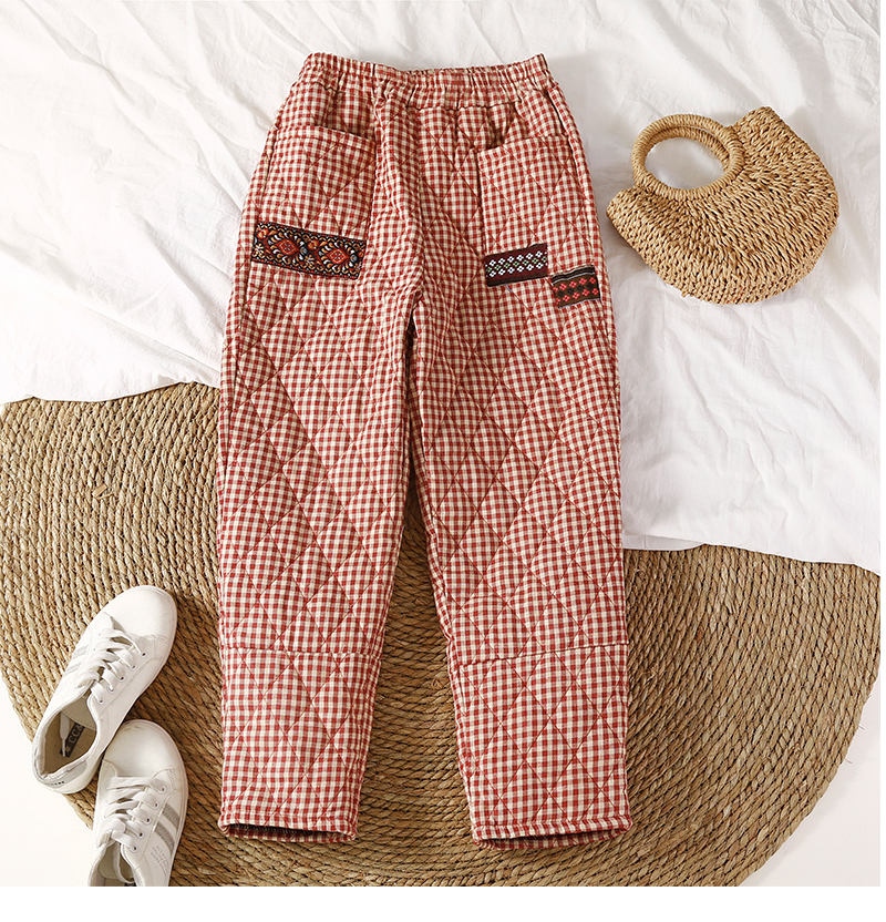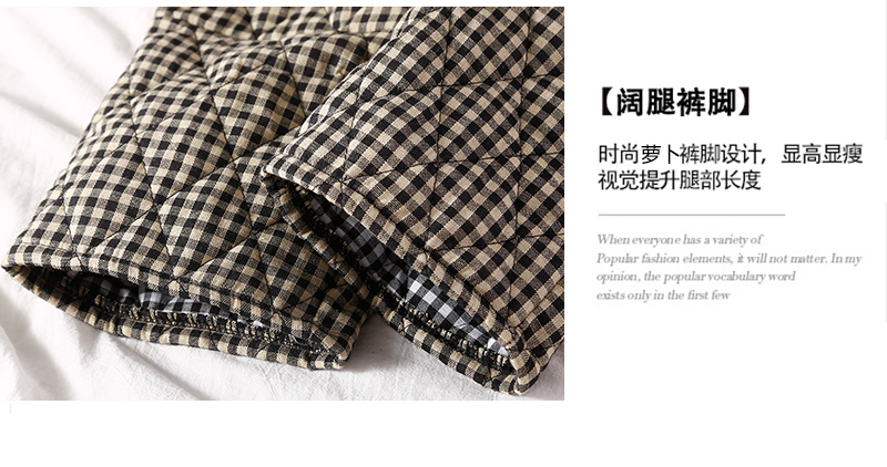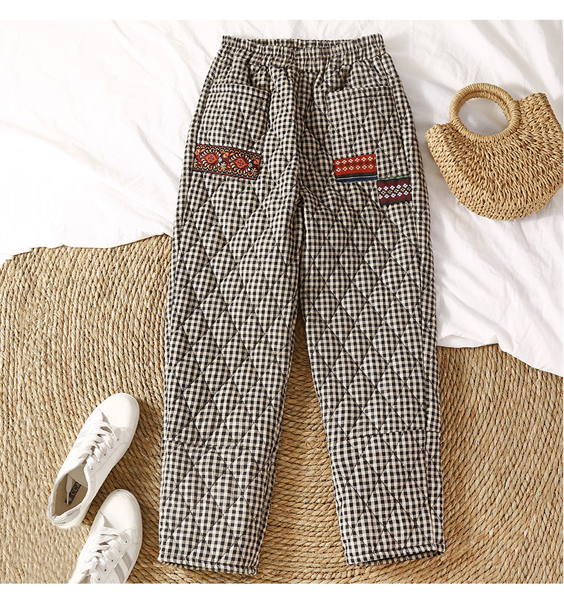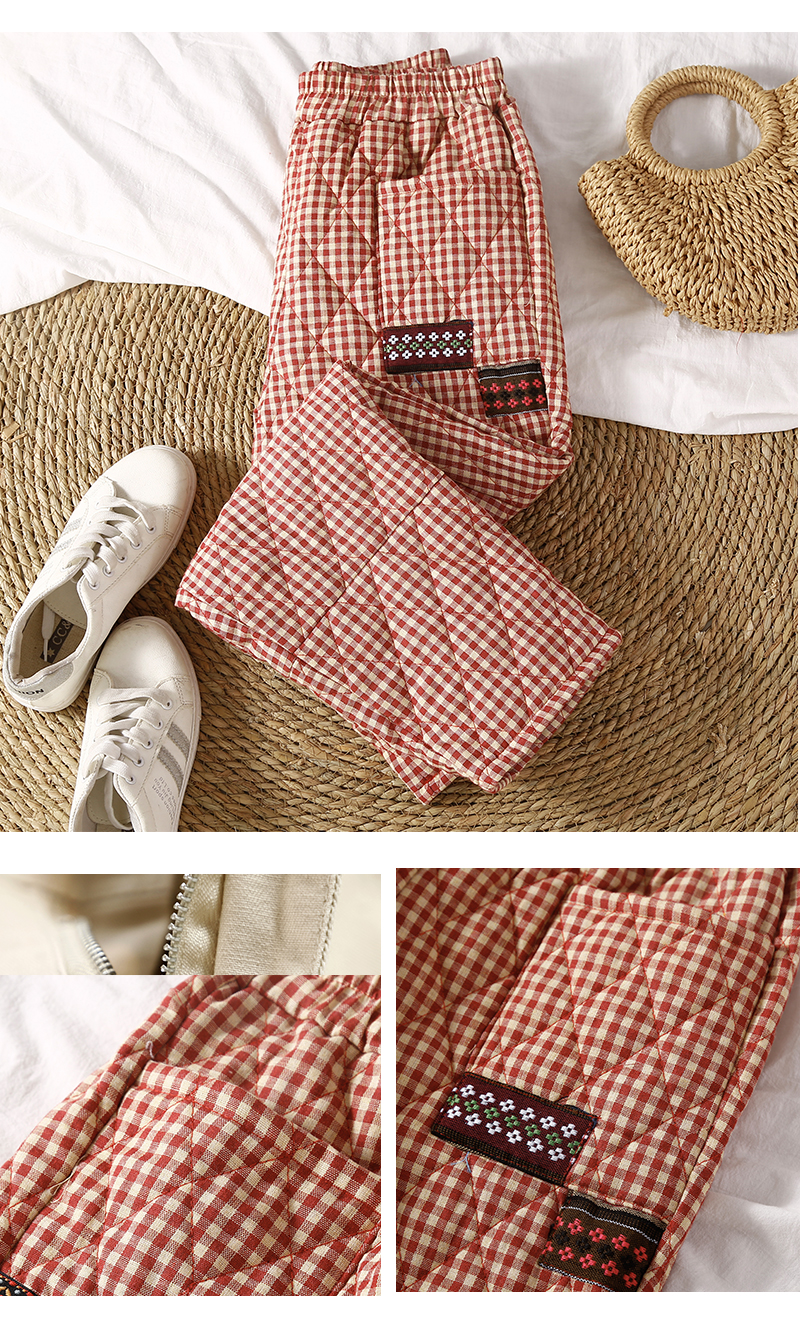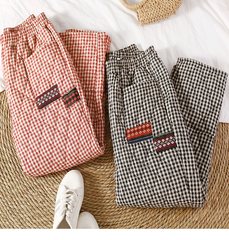 Japanese Original Brand Women's Outerwear Warm Cotton-Linen Padded Harem Pants High-Waisted Plaid Lightweight down Cotton Pants