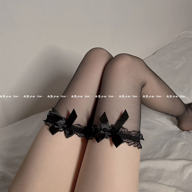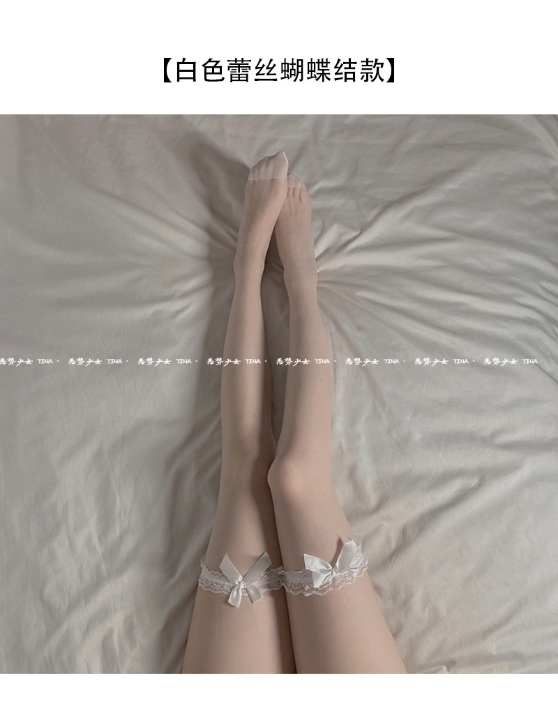 White Silk Bow Jk Over-The-Knee Socks, Feminine White Pure Desire High Stockings, Lace Thin Style, Fast Attack Black Stockings