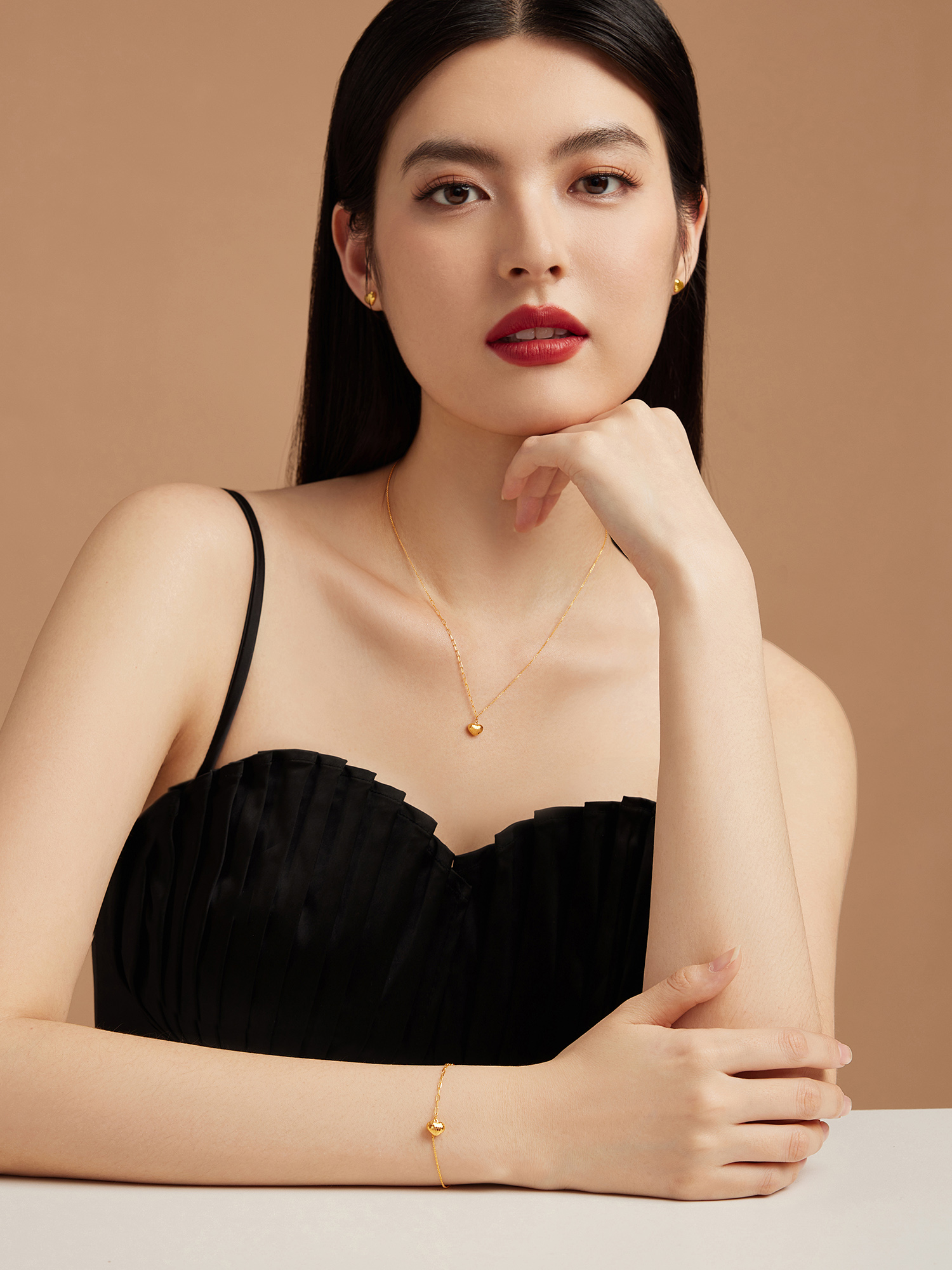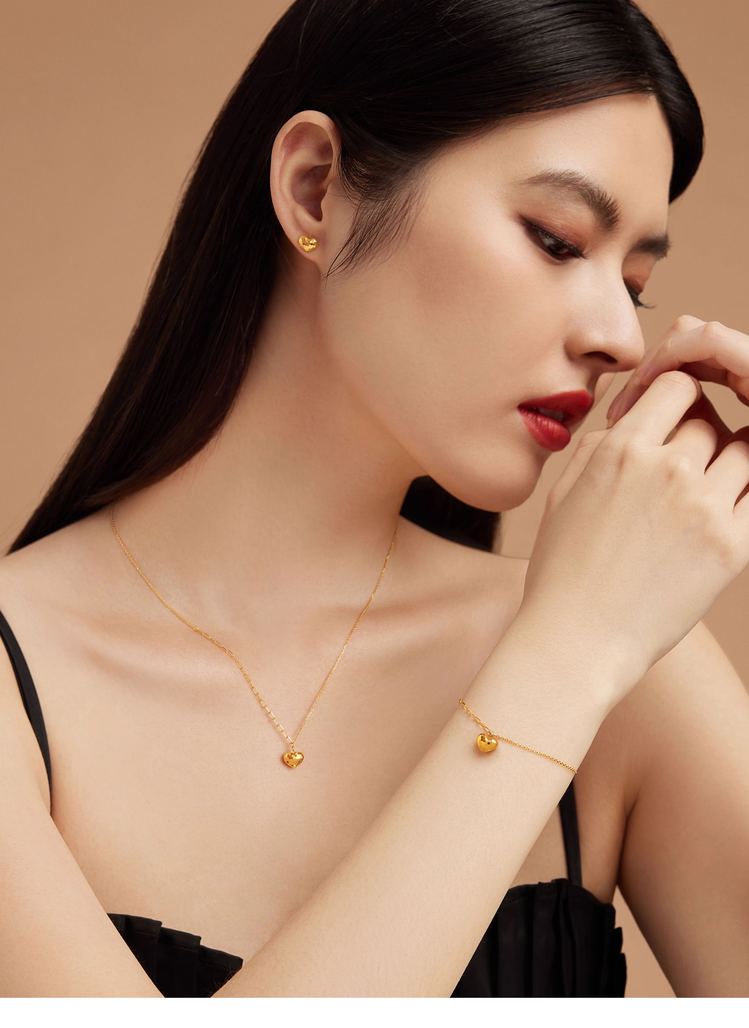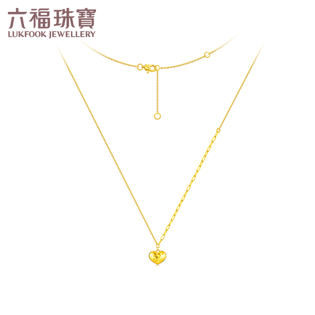 Lukfook Jewelry Goldstyle Flashing Love Dynamic Gold Necklace Pure Gold Clavicle Chain Set for Women Price 010948Nb