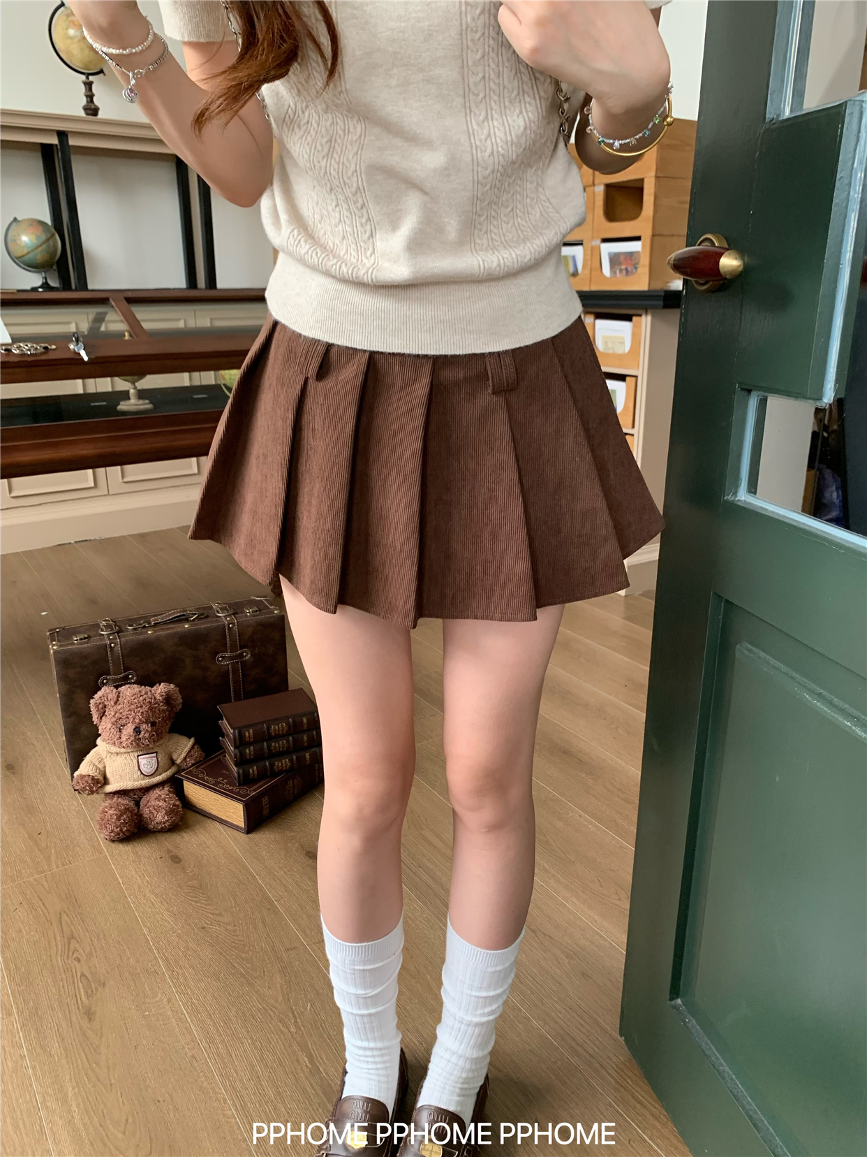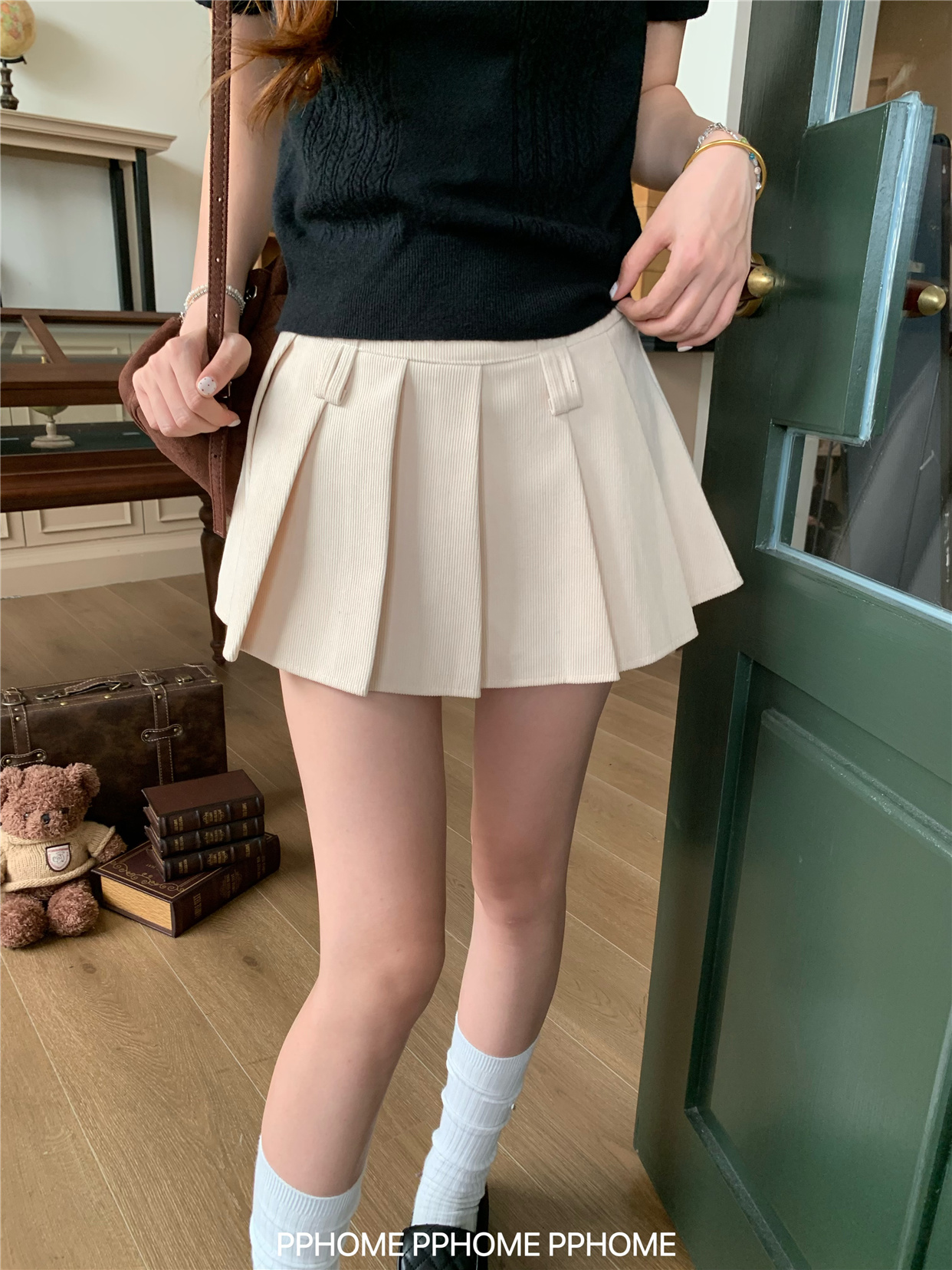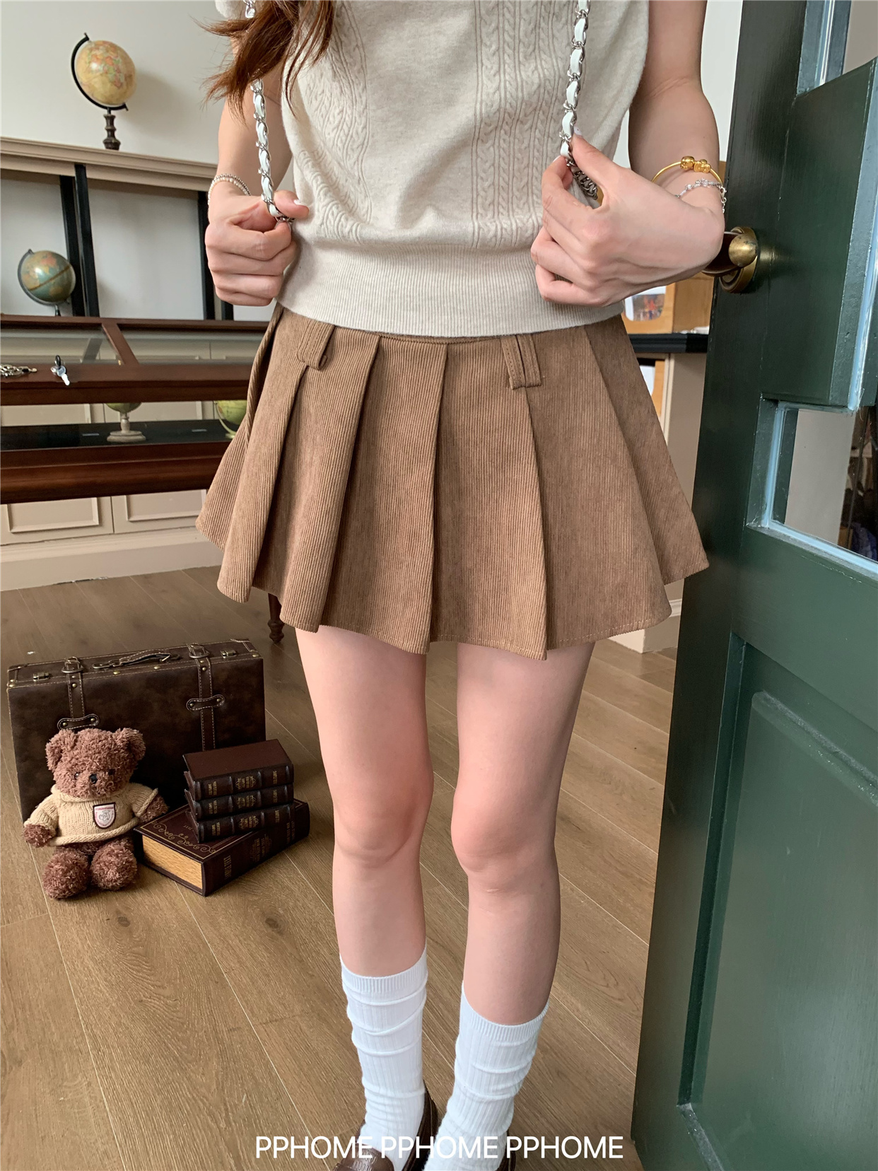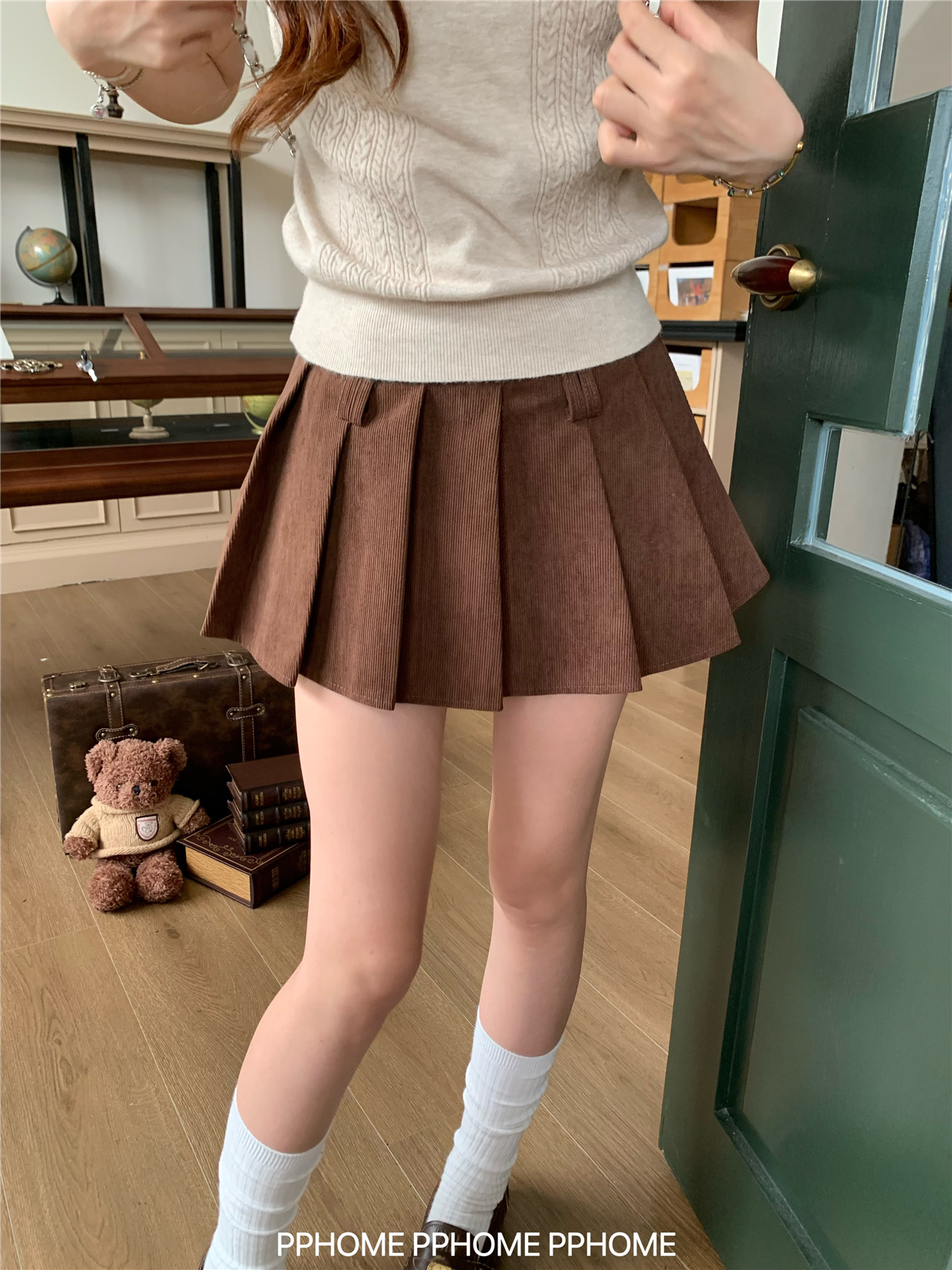 Pphome LAOSHU ~ Pleated Culottes Corduroy Pleated Skirt Anti-Exposure Autumn Women's A-Line Skirt Ultra-Short Skirt
