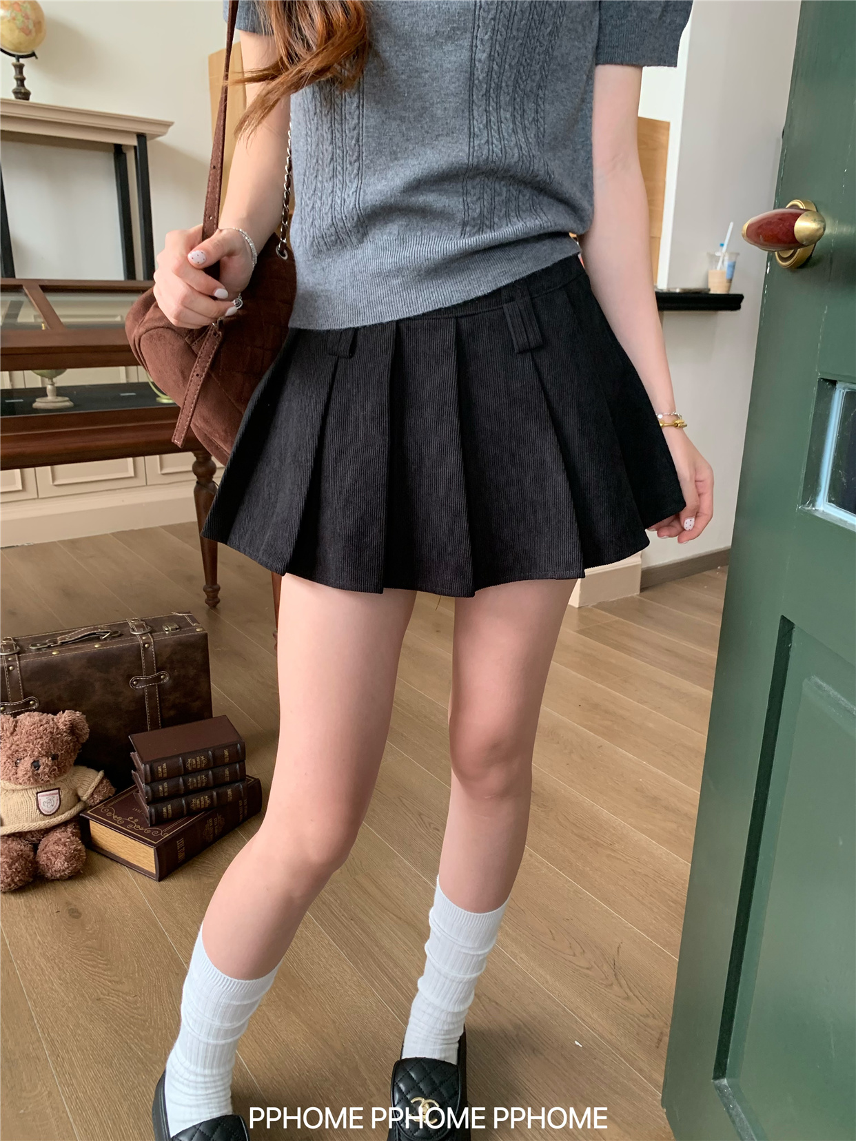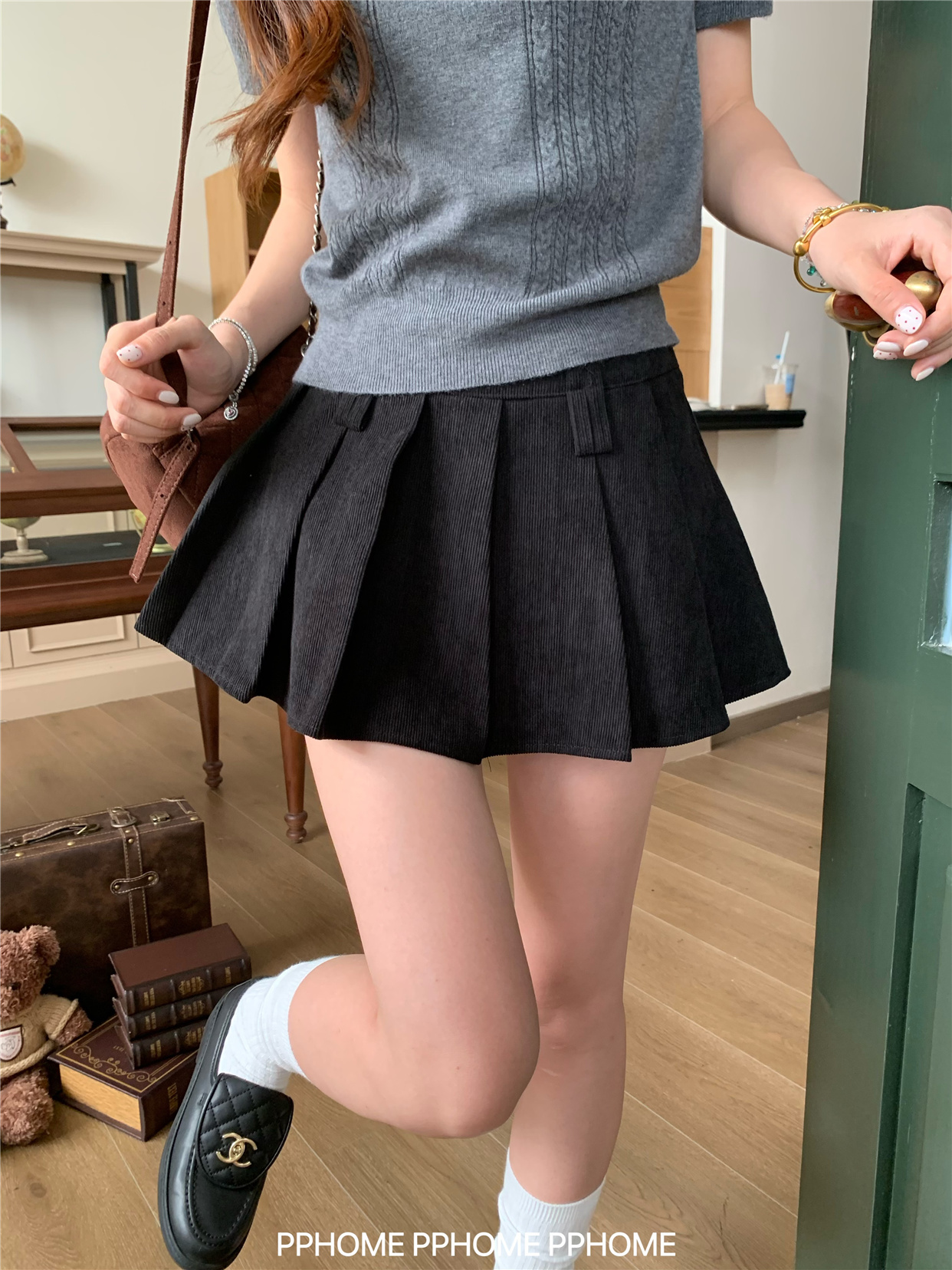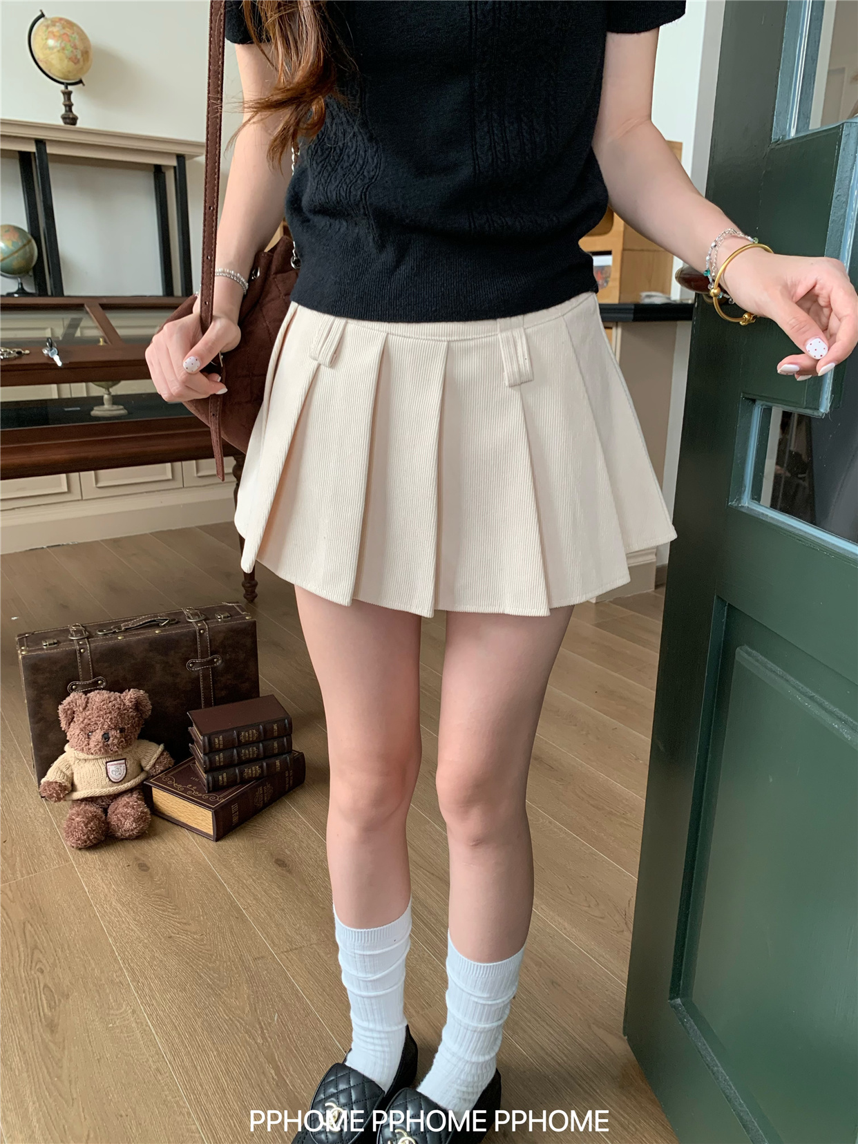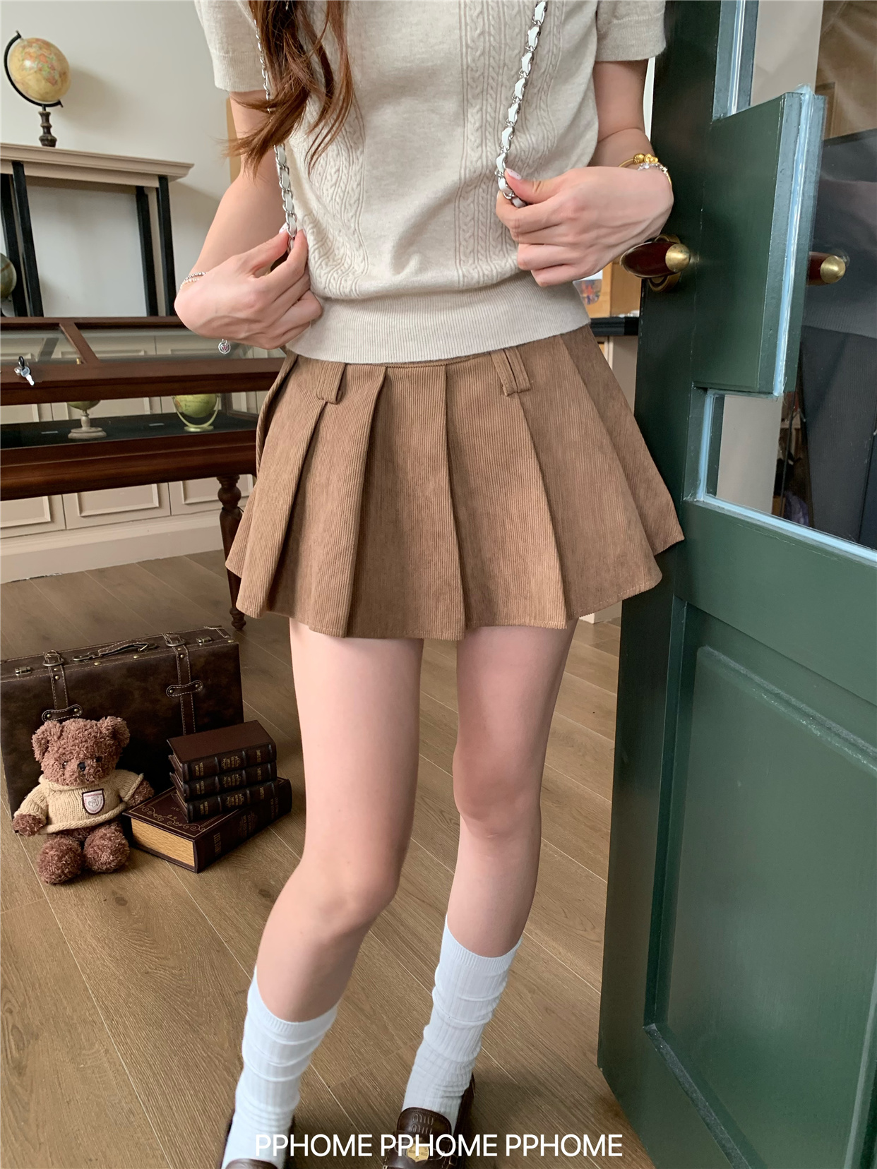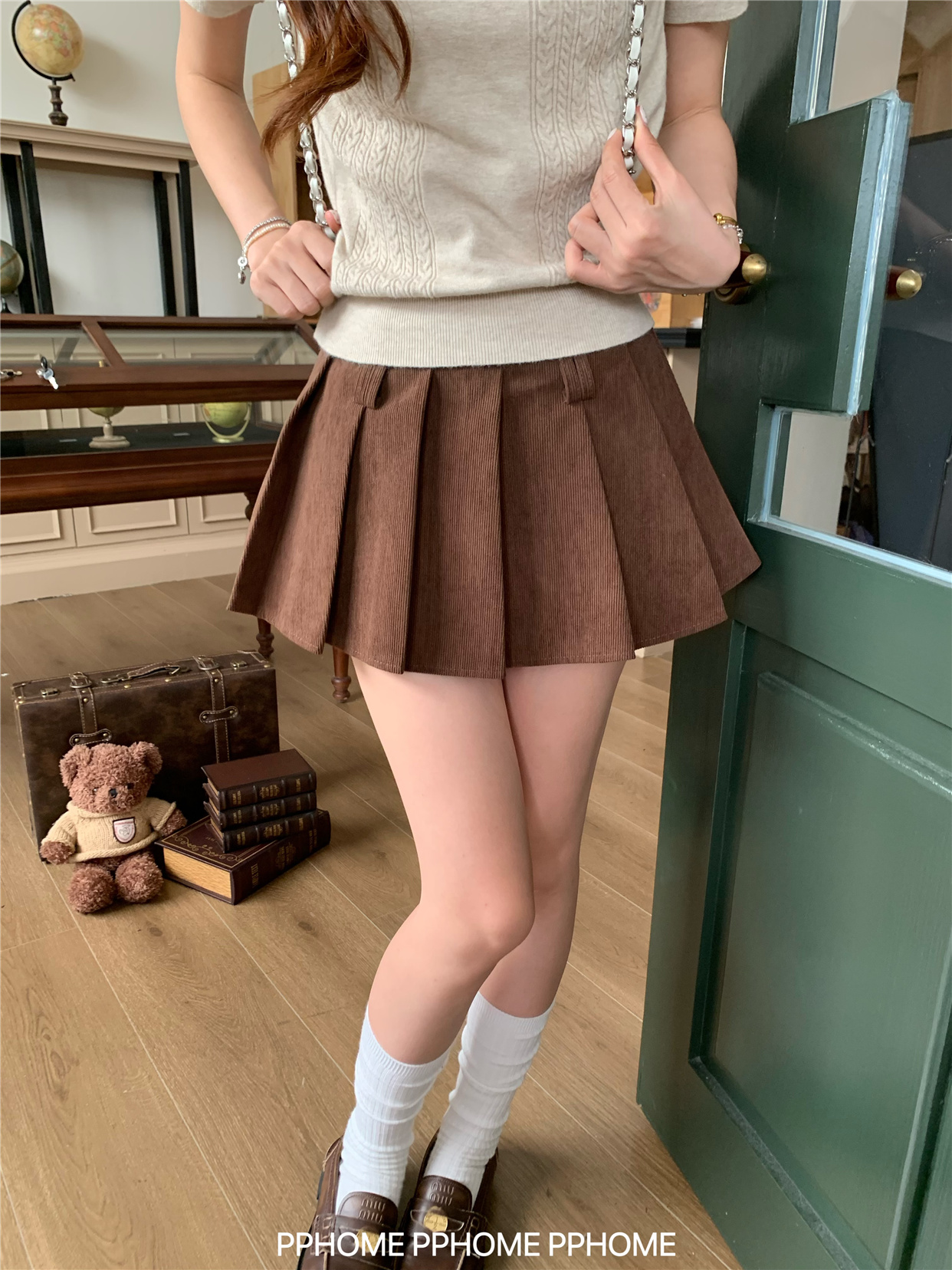 Pphome LAOSHU ~ Pleated Culottes Corduroy Pleated Skirt Anti-Exposure Autumn Women's A-Line Skirt Ultra-Short Skirt