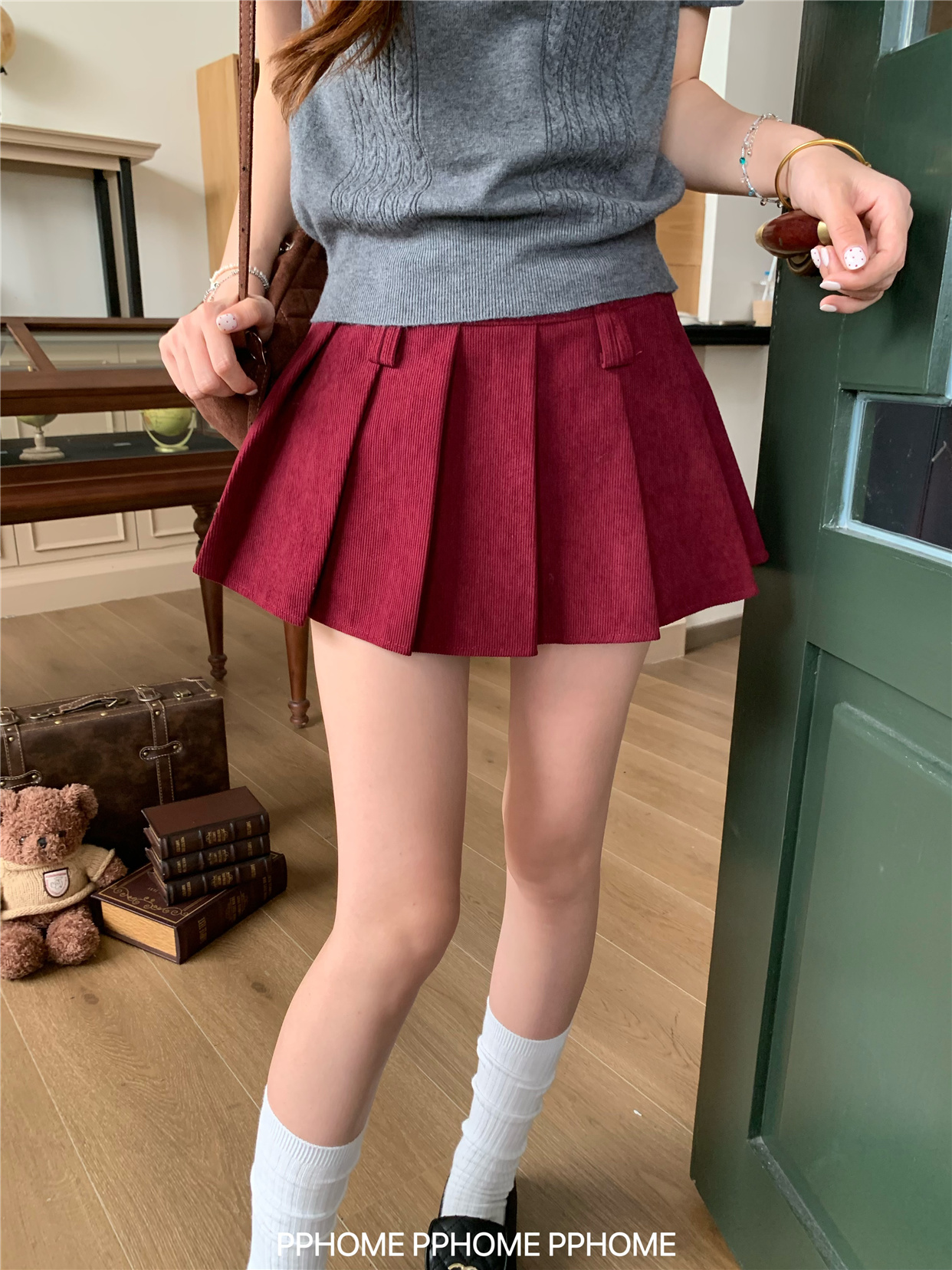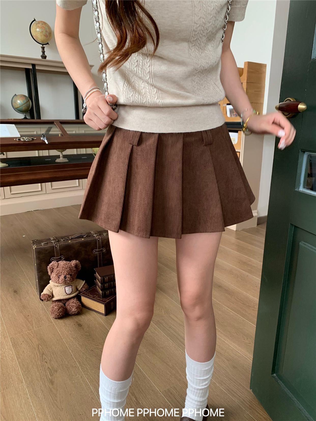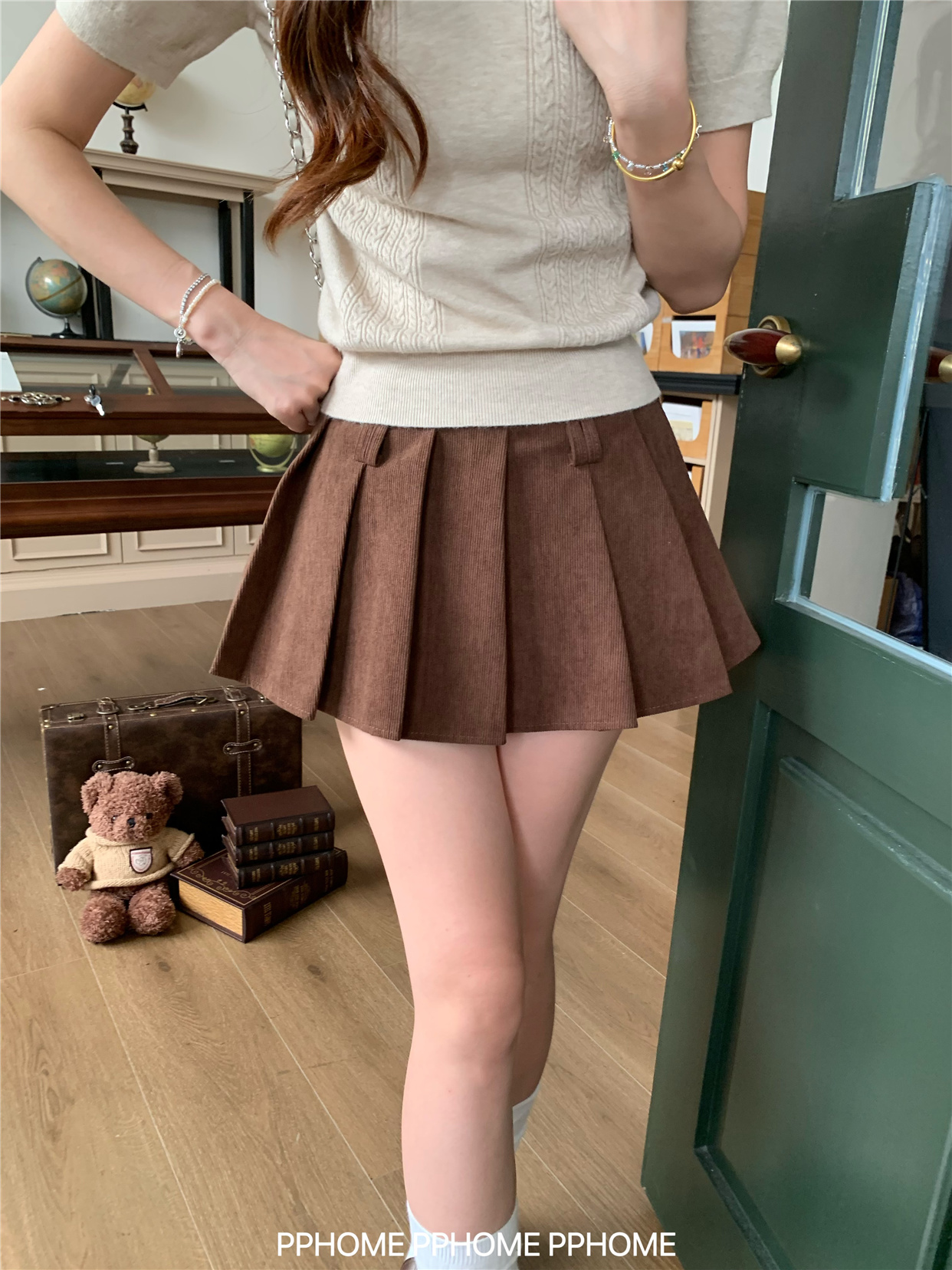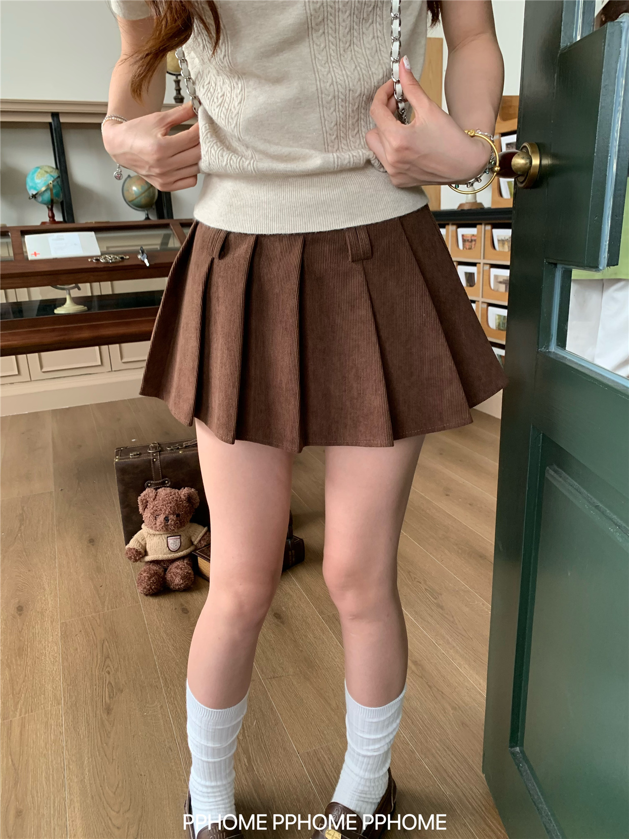 Pphome LAOSHU ~ Pleated Culottes Corduroy Pleated Skirt Anti-Exposure Autumn Women's A-Line Skirt Ultra-Short Skirt