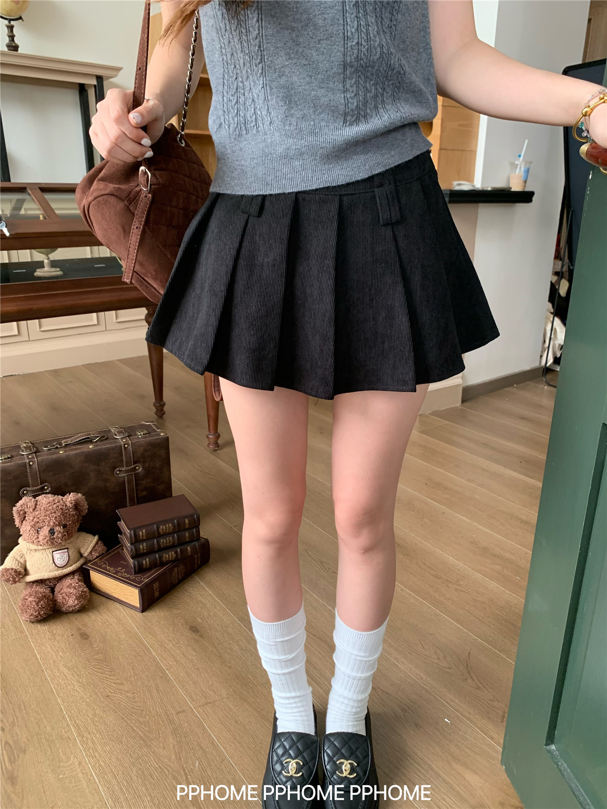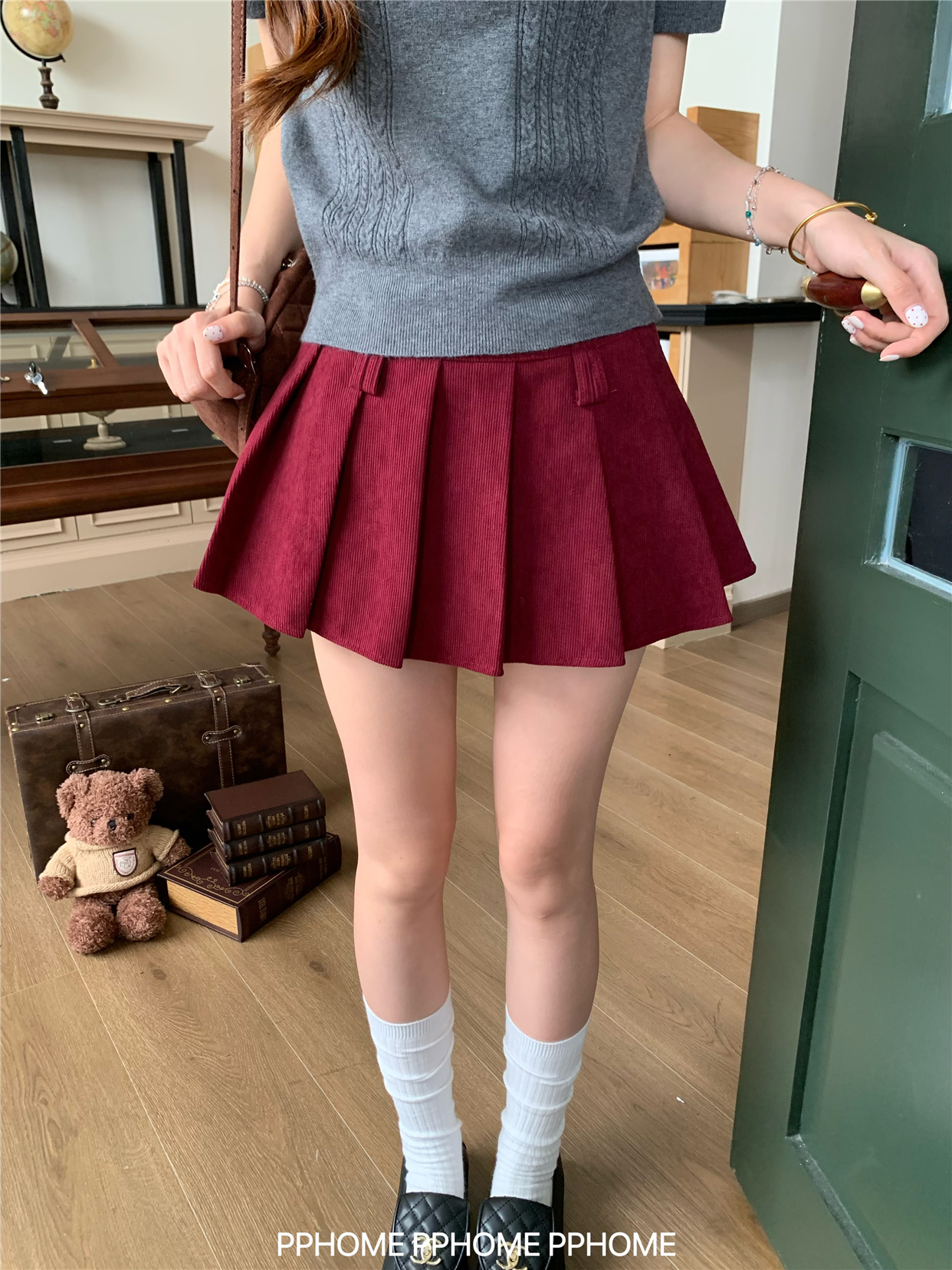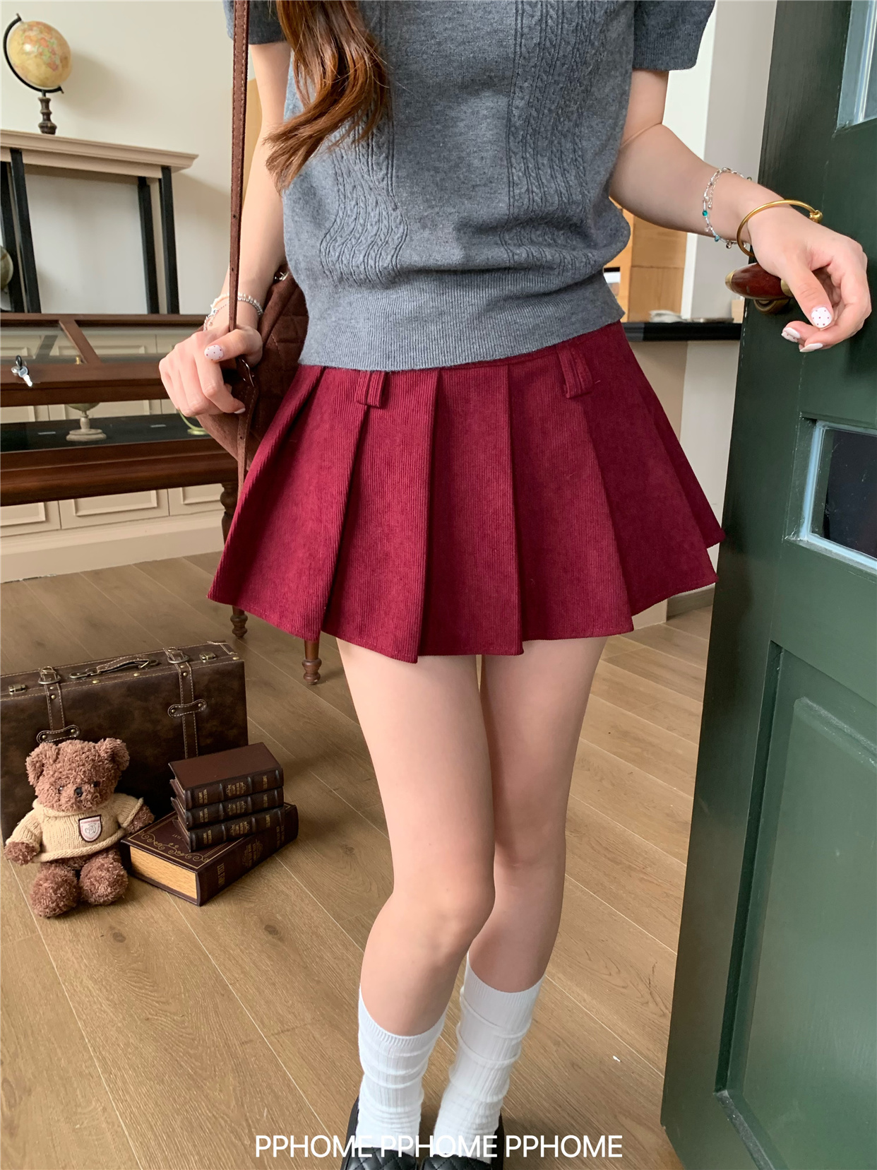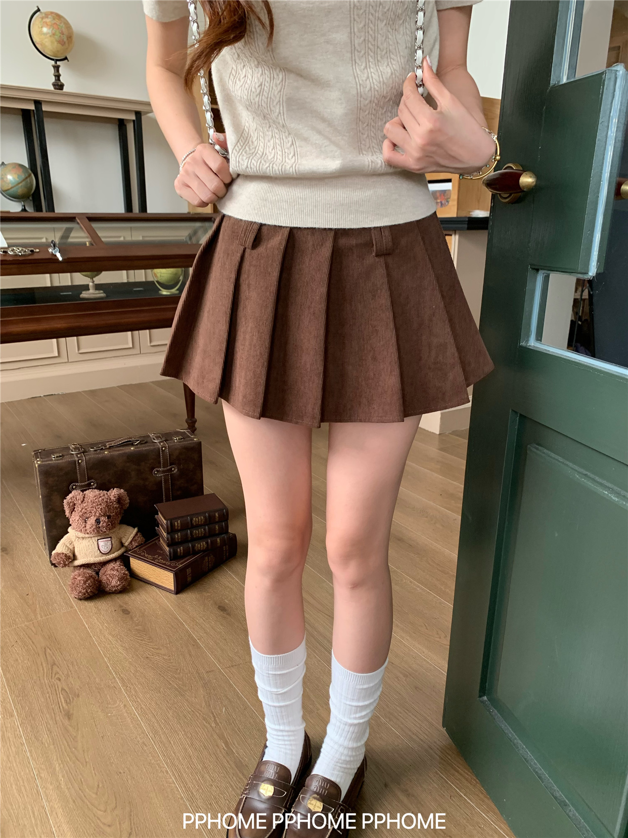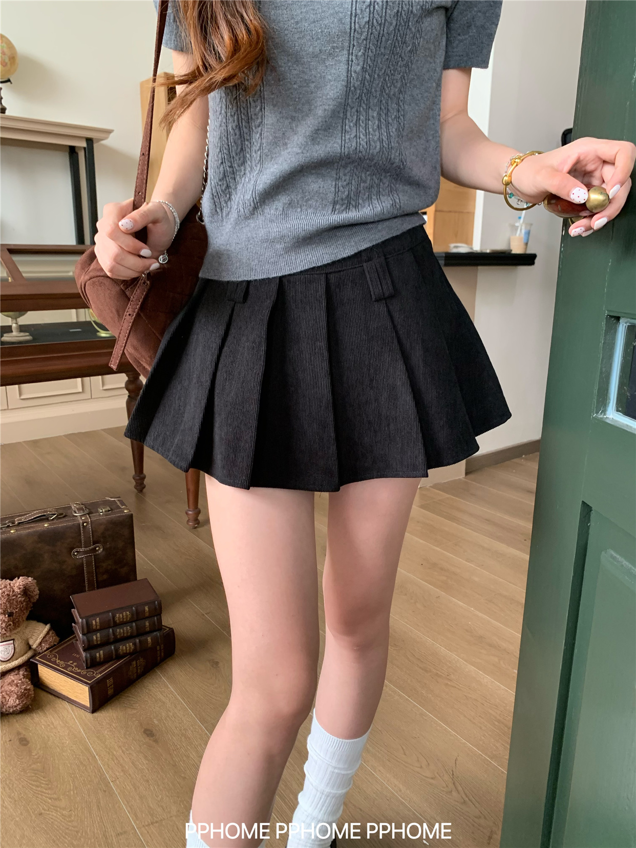 Pphome LAOSHU ~ Pleated Culottes Corduroy Pleated Skirt Anti-Exposure Autumn Women's A-Line Skirt Ultra-Short Skirt
