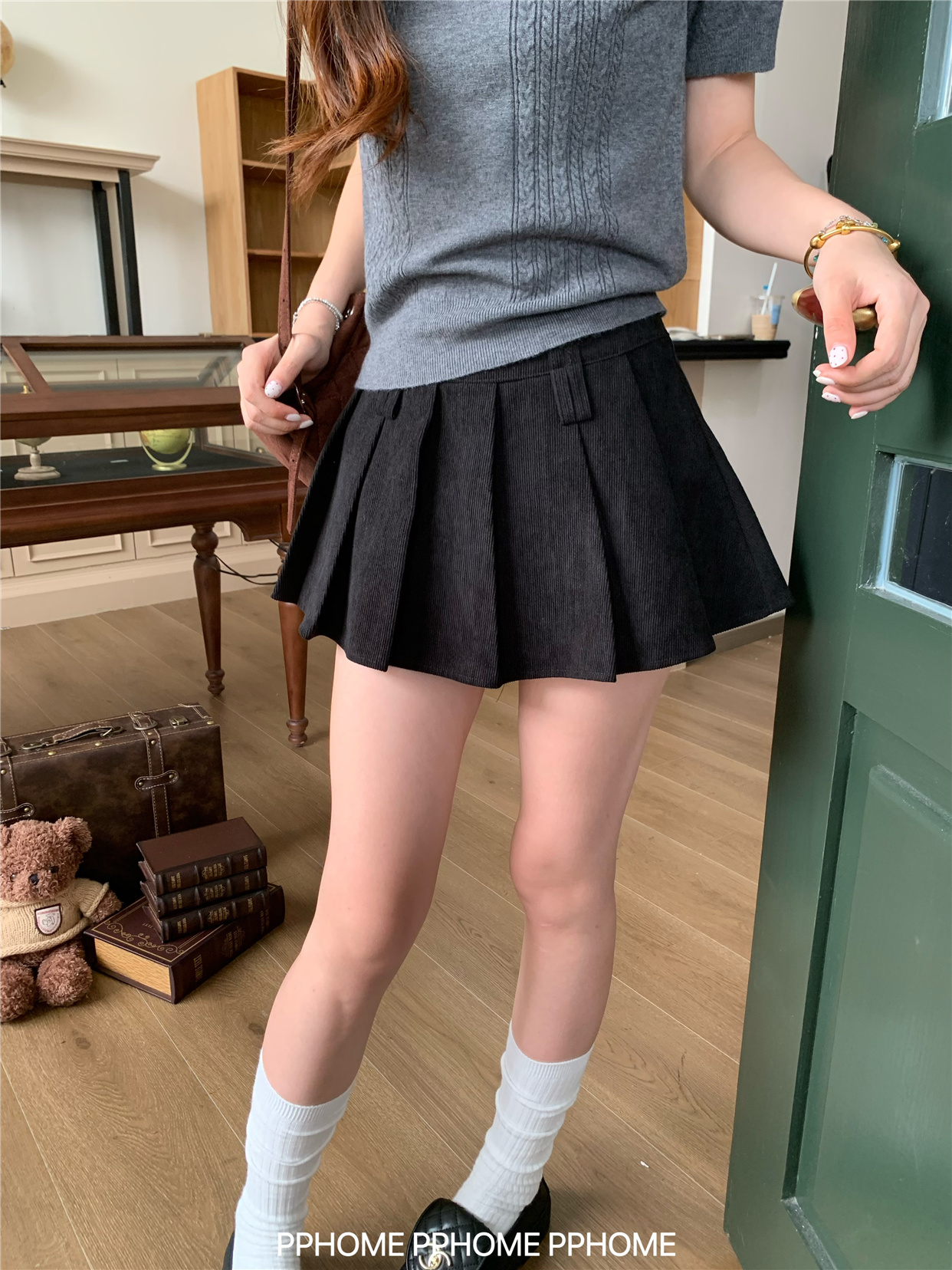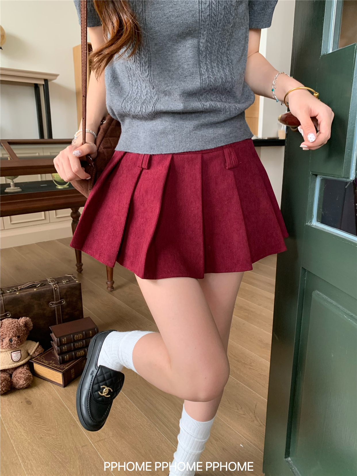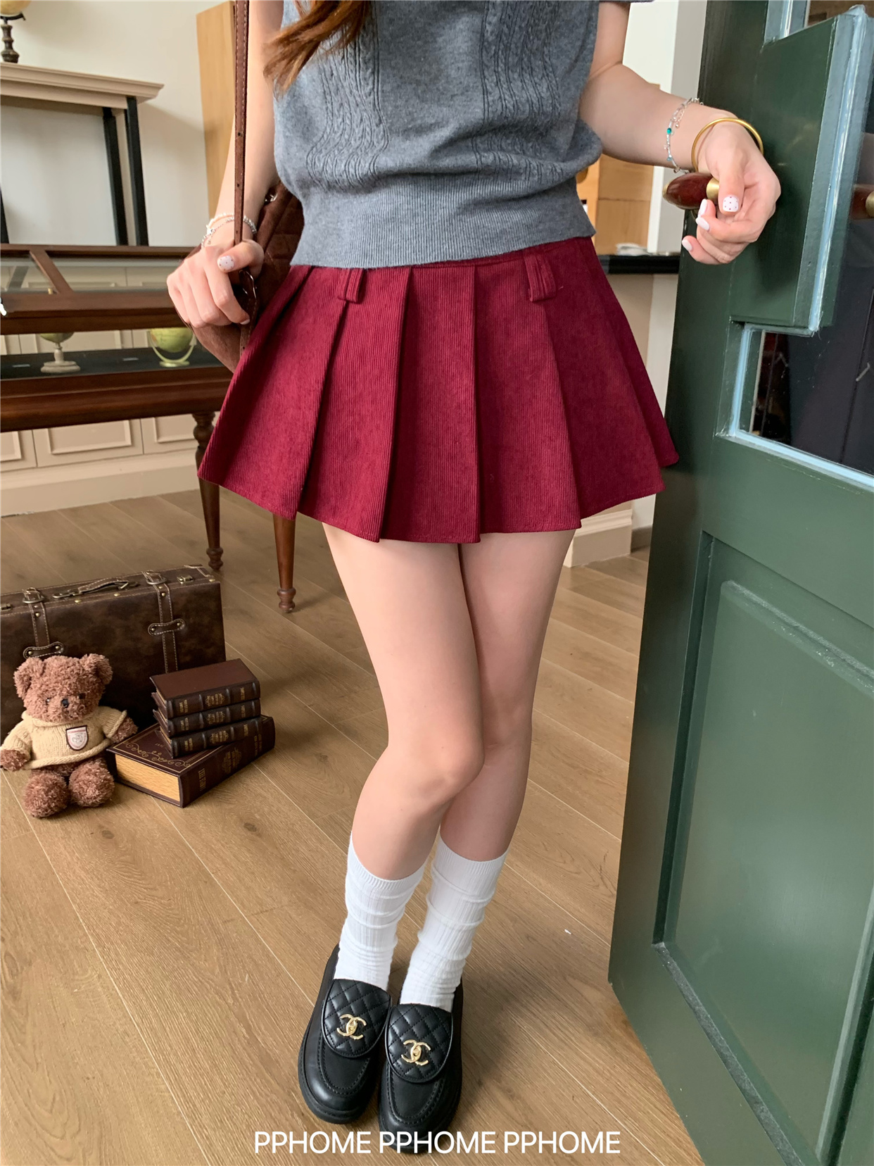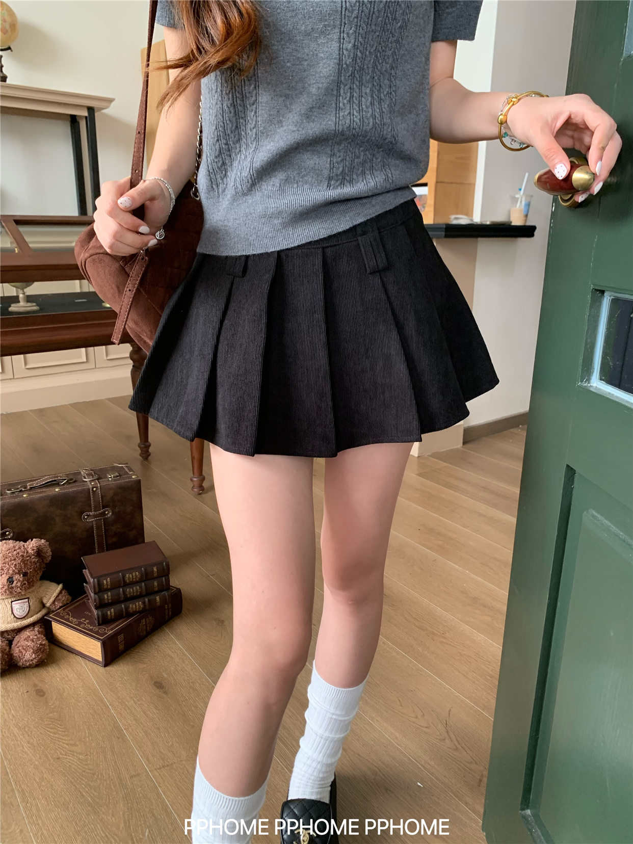 Pphome LAOSHU ~ Pleated Culottes Corduroy Pleated Skirt Anti-Exposure Autumn Women's A-Line Skirt Ultra-Short Skirt