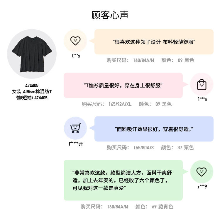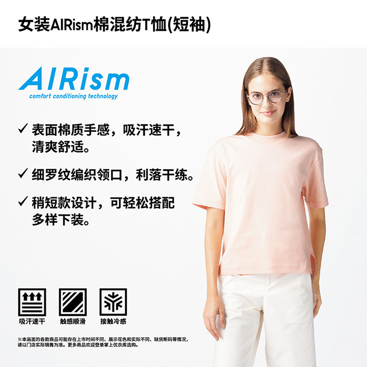 Uniqlo Women's Airism Cotton Blend T-Shirt/Short-Sleeved Loose Slimming 474405