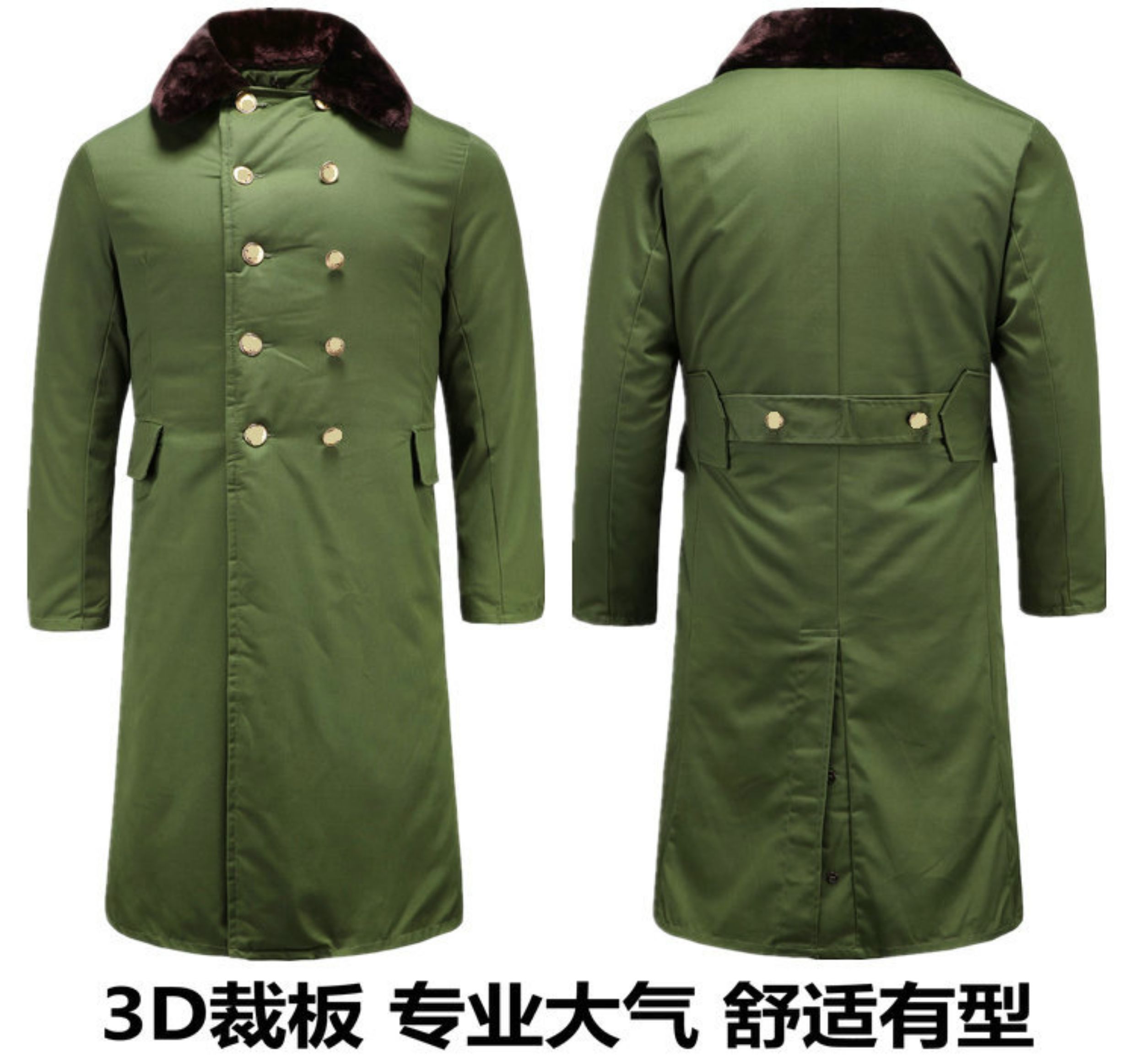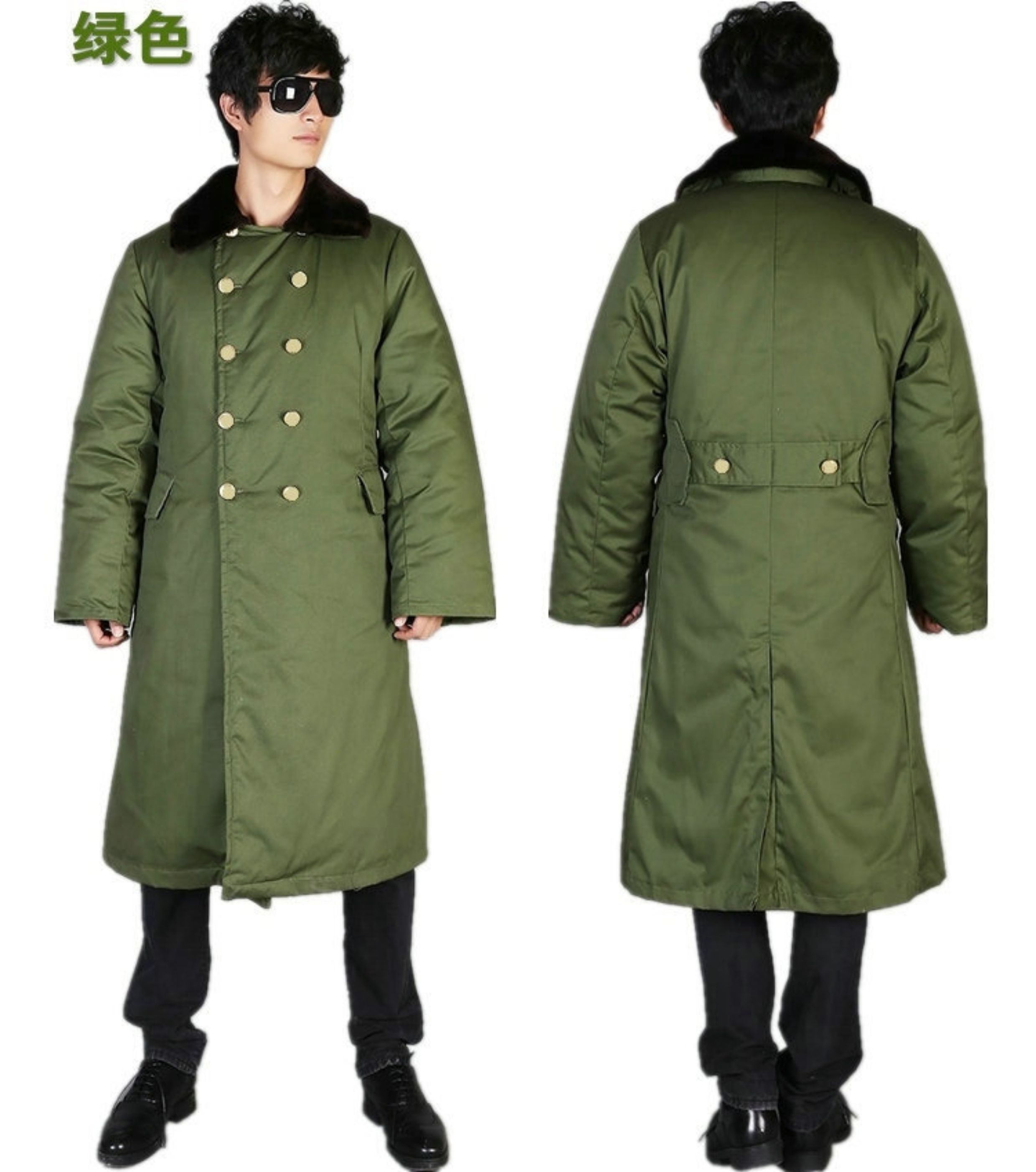 Men's Military Coat, Green Trench Coat, Northeast Cotton Coat, Yellow Winter Thickened Cotton Long Coat, Security Uniform, Cold-Proof