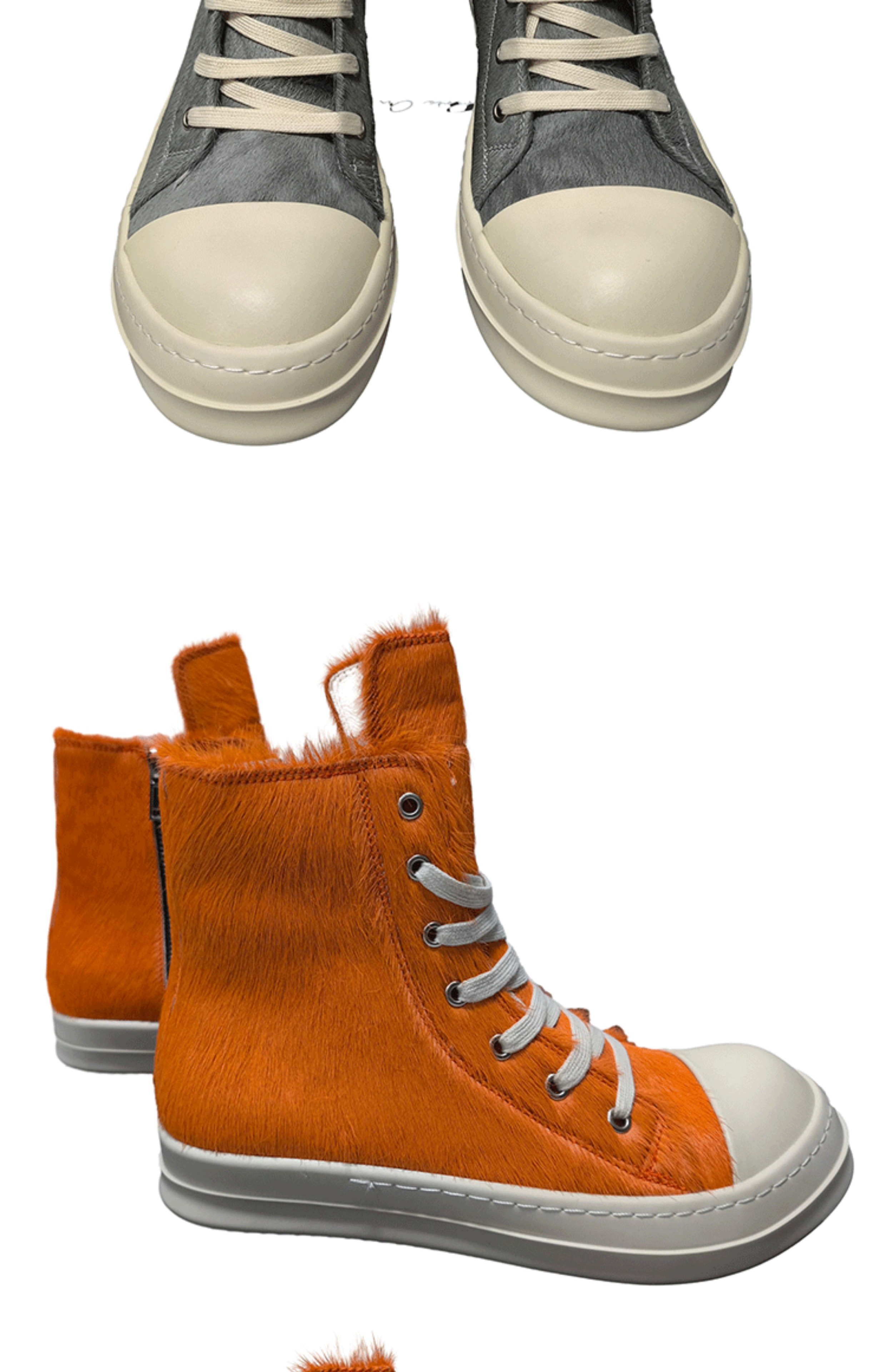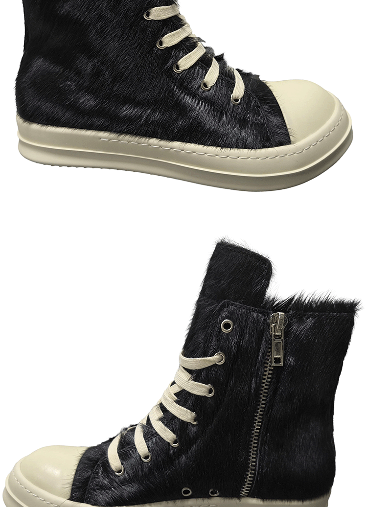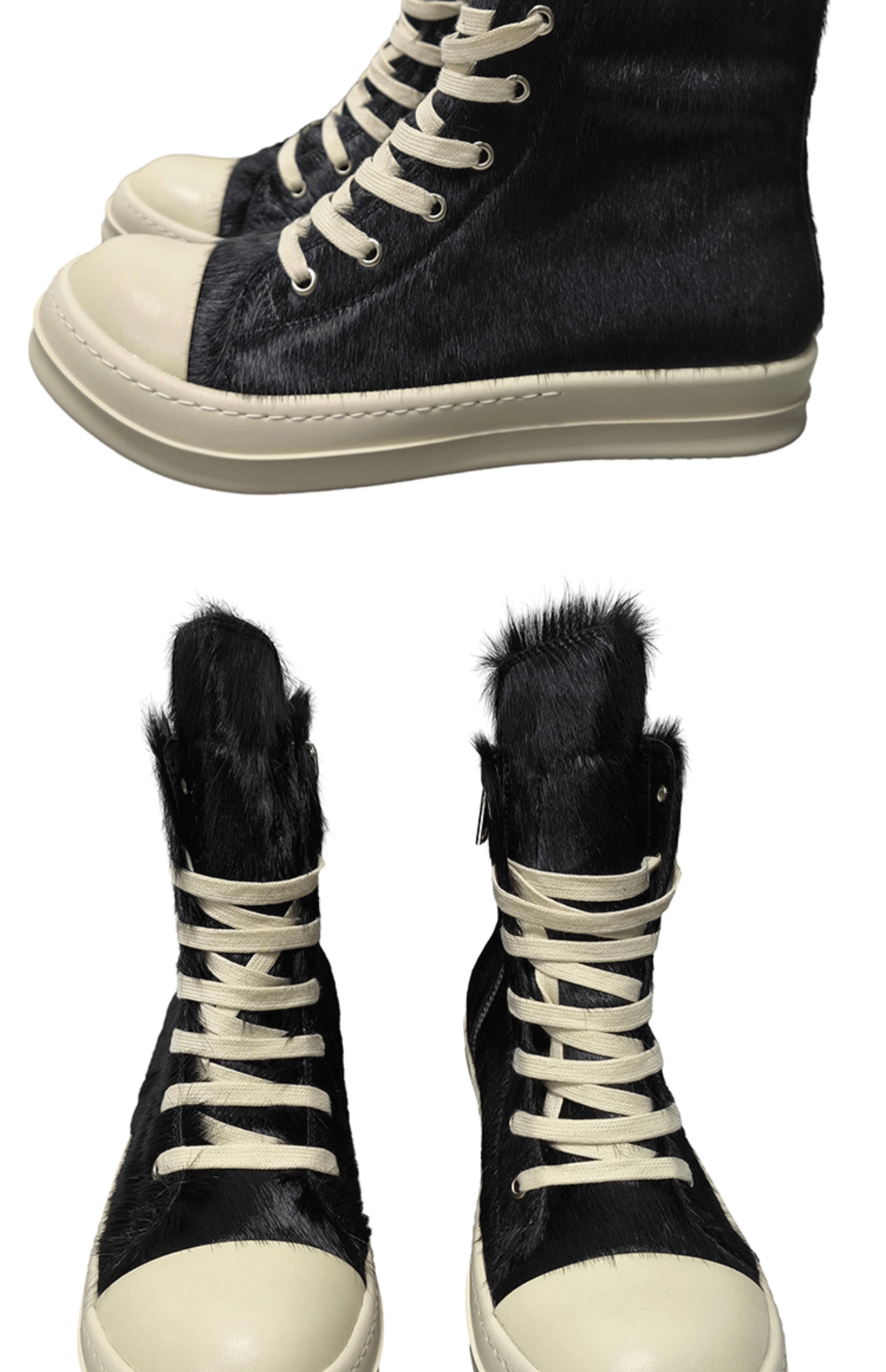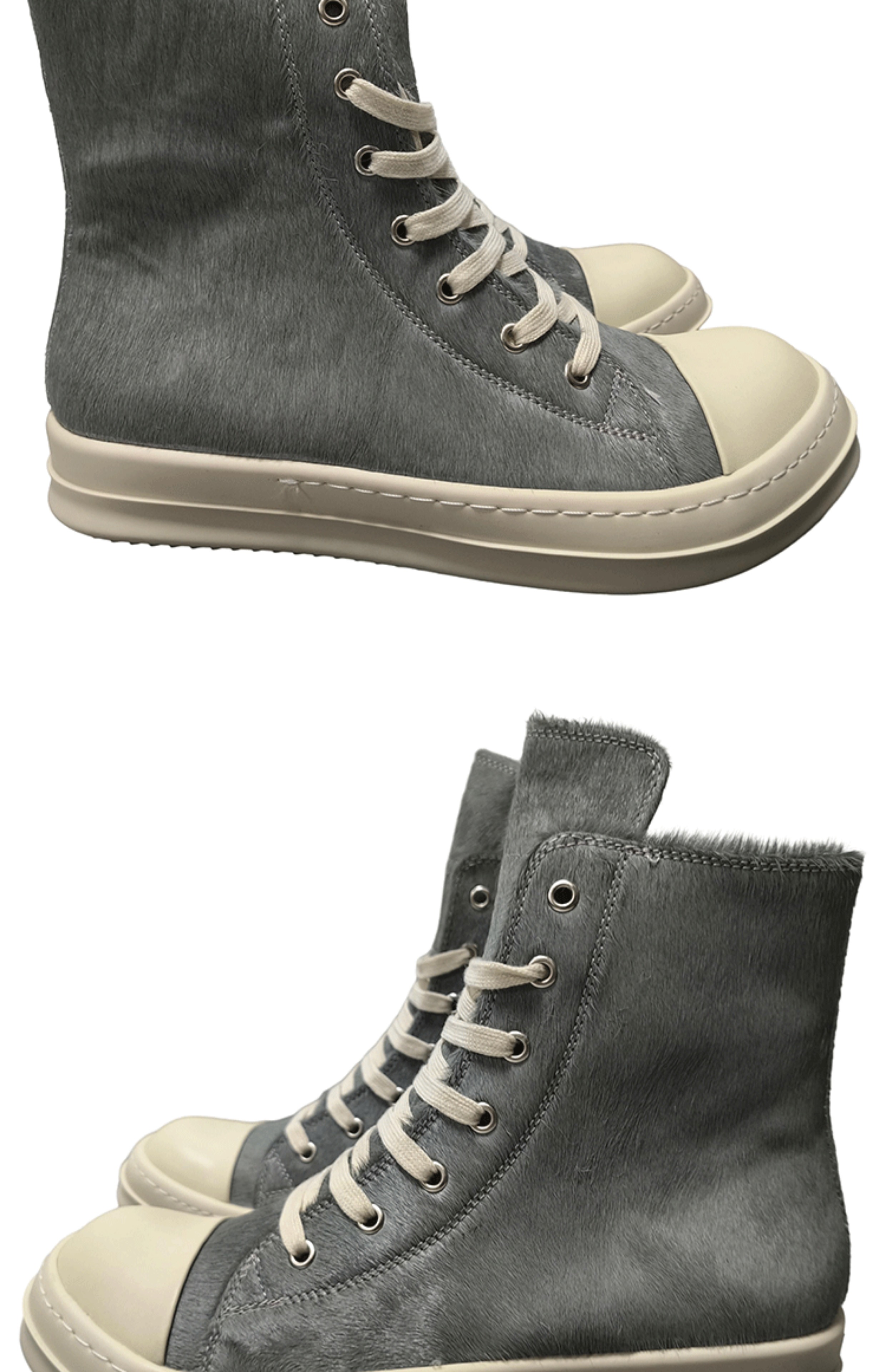 2024 New Ro Shoes Horsehair High-Top Shoes European and American Genuine Leather Street Fashion Trendy Shoes Casual Sneakers Unisex