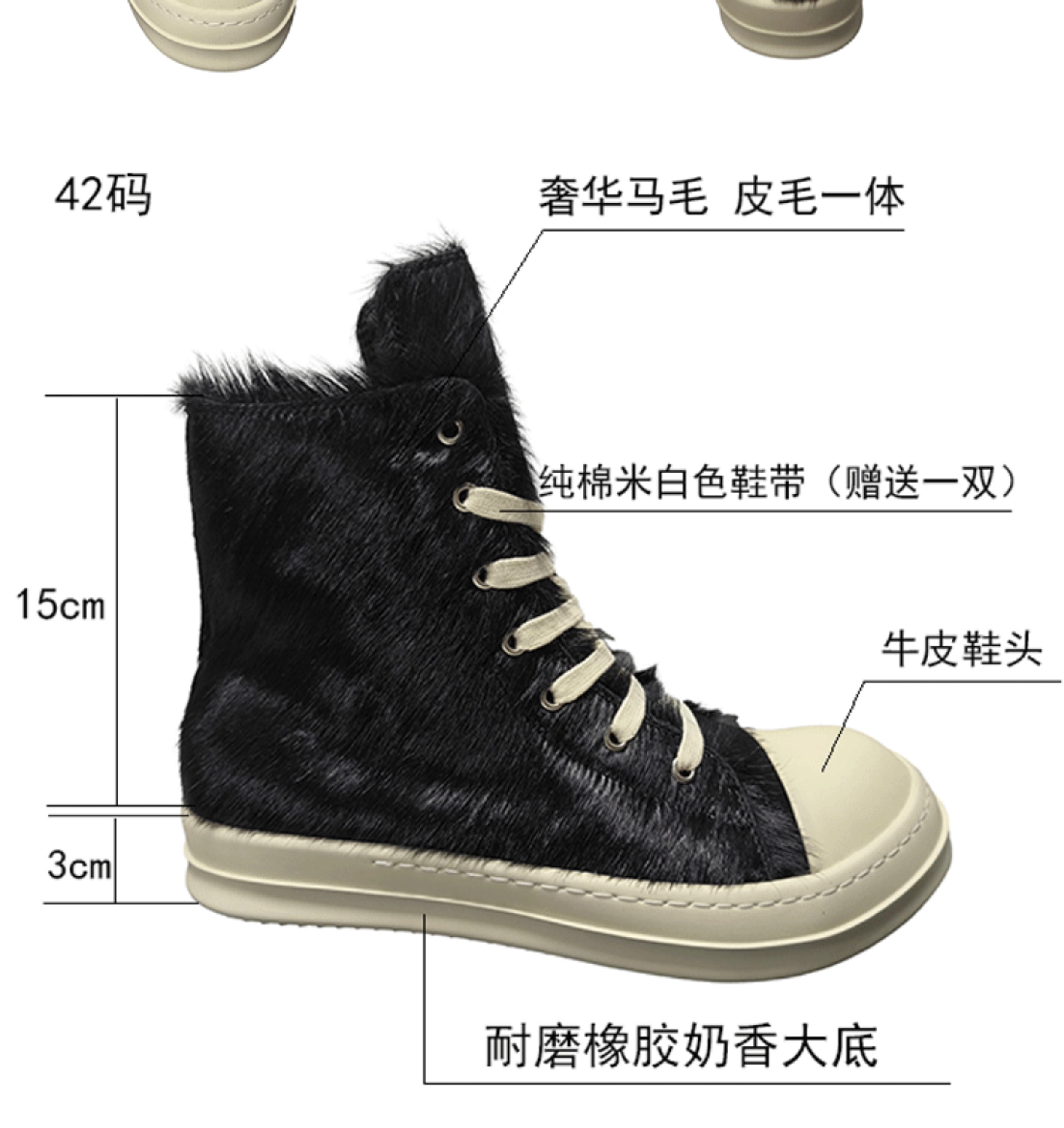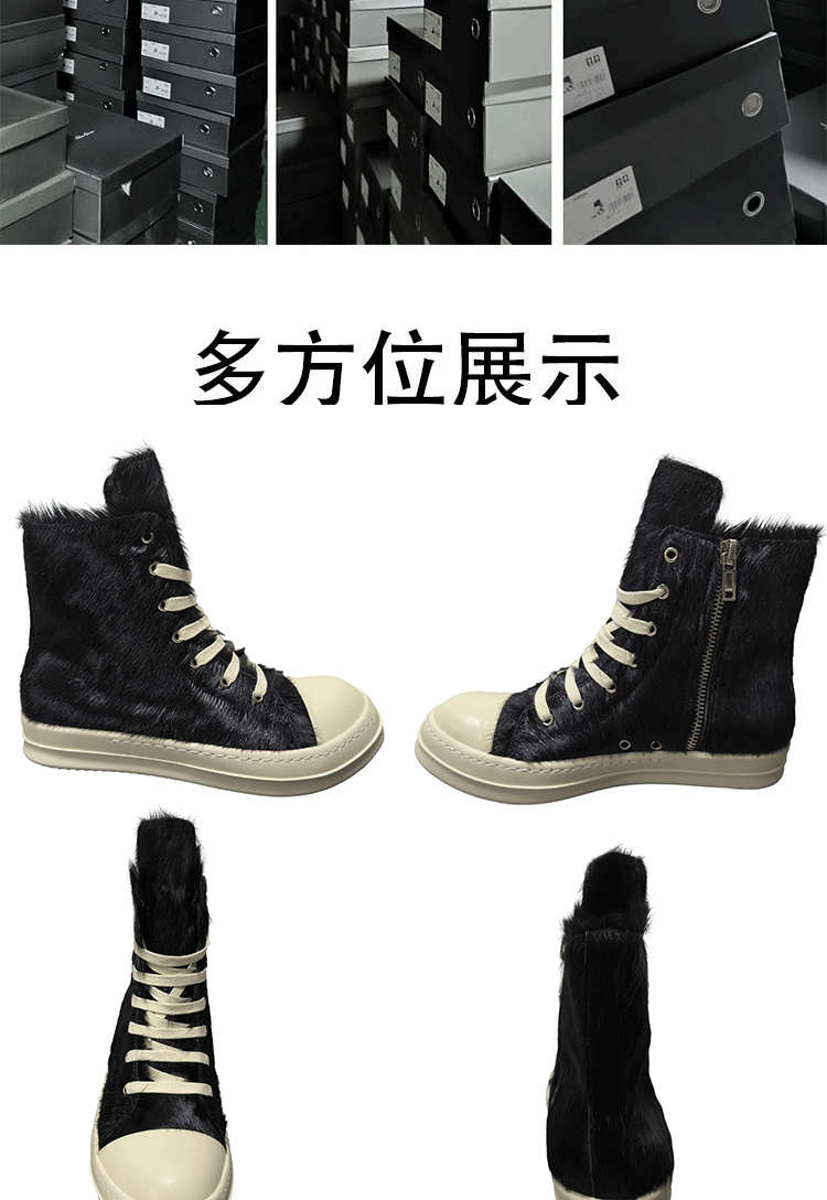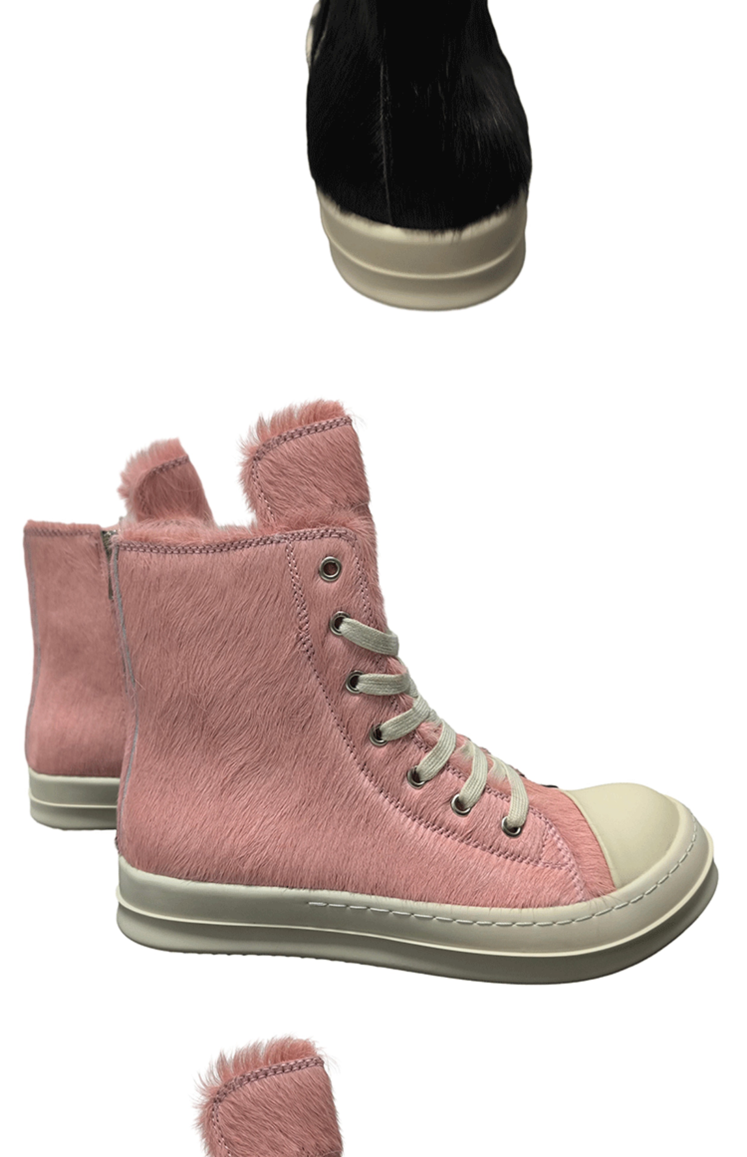 2024 New Ro Shoes Horsehair High-Top Shoes European and American Genuine Leather Street Fashion Trendy Shoes Casual Sneakers Unisex