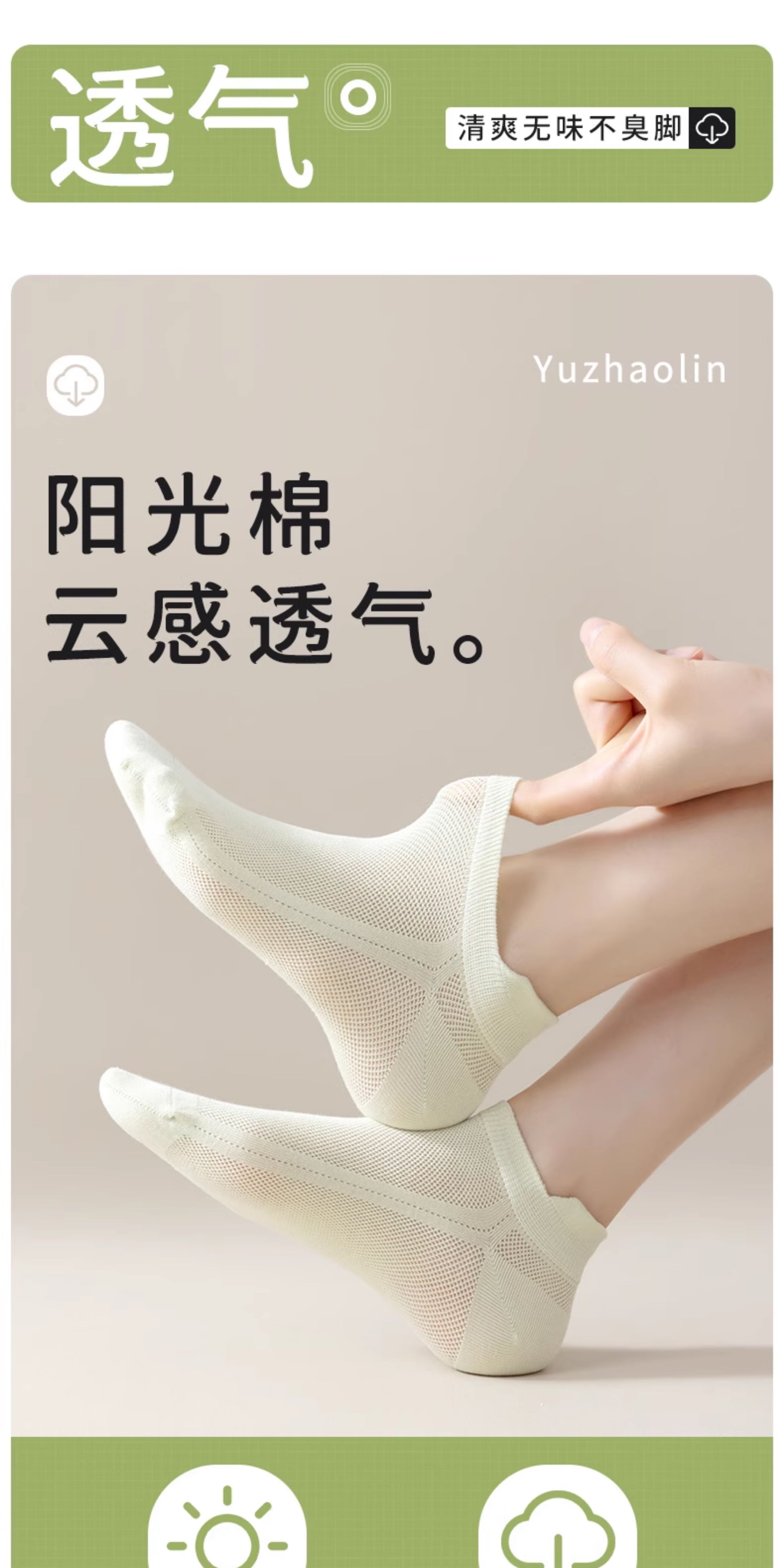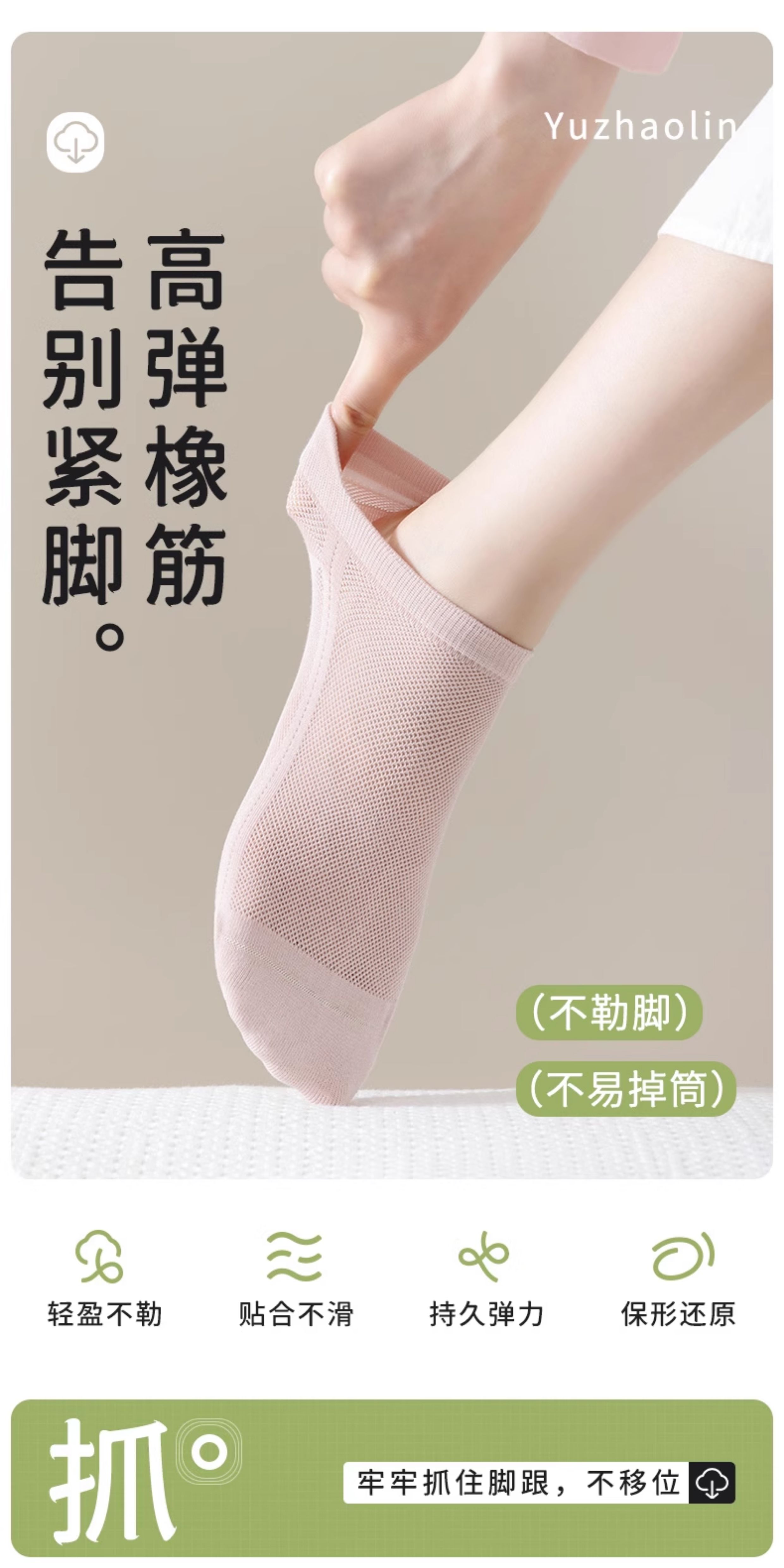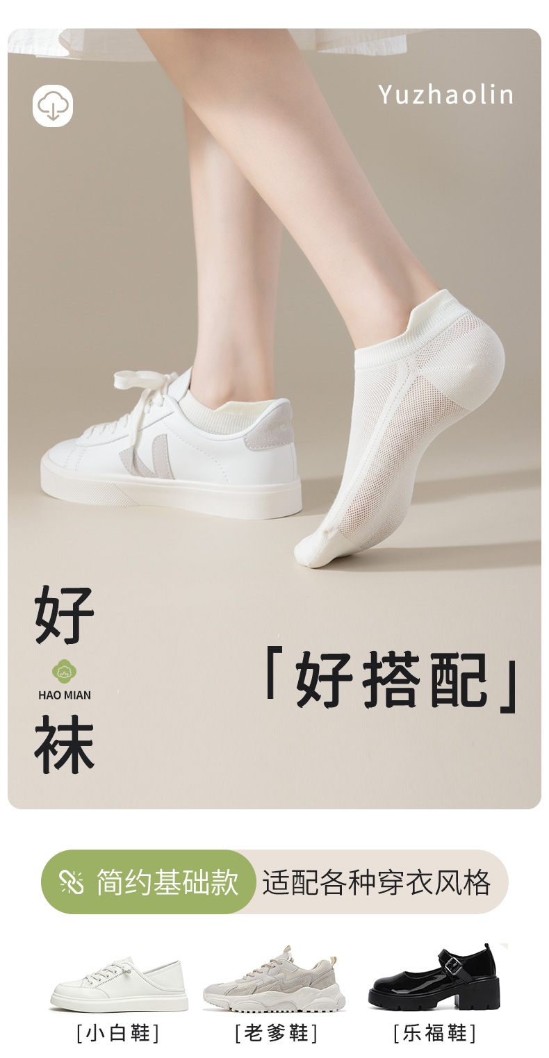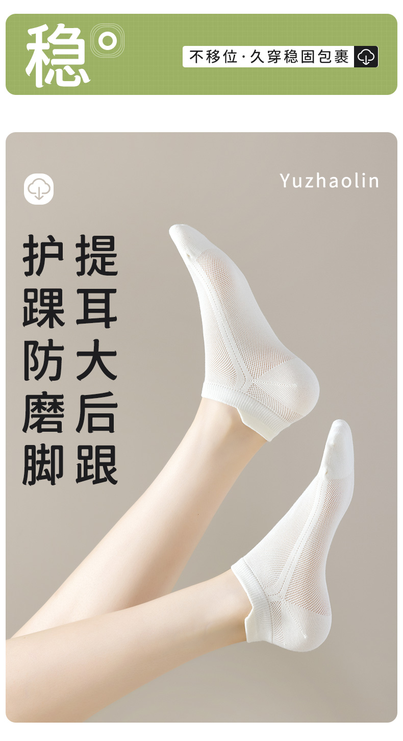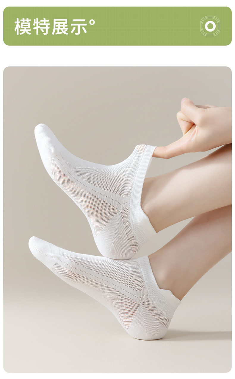 Women's Short Socks, Summer Mesh Thin Style, Cool and Breathable, Non-Slip, No-Show Socks, Seamless Cotton Socks, Pull-On Short Socks