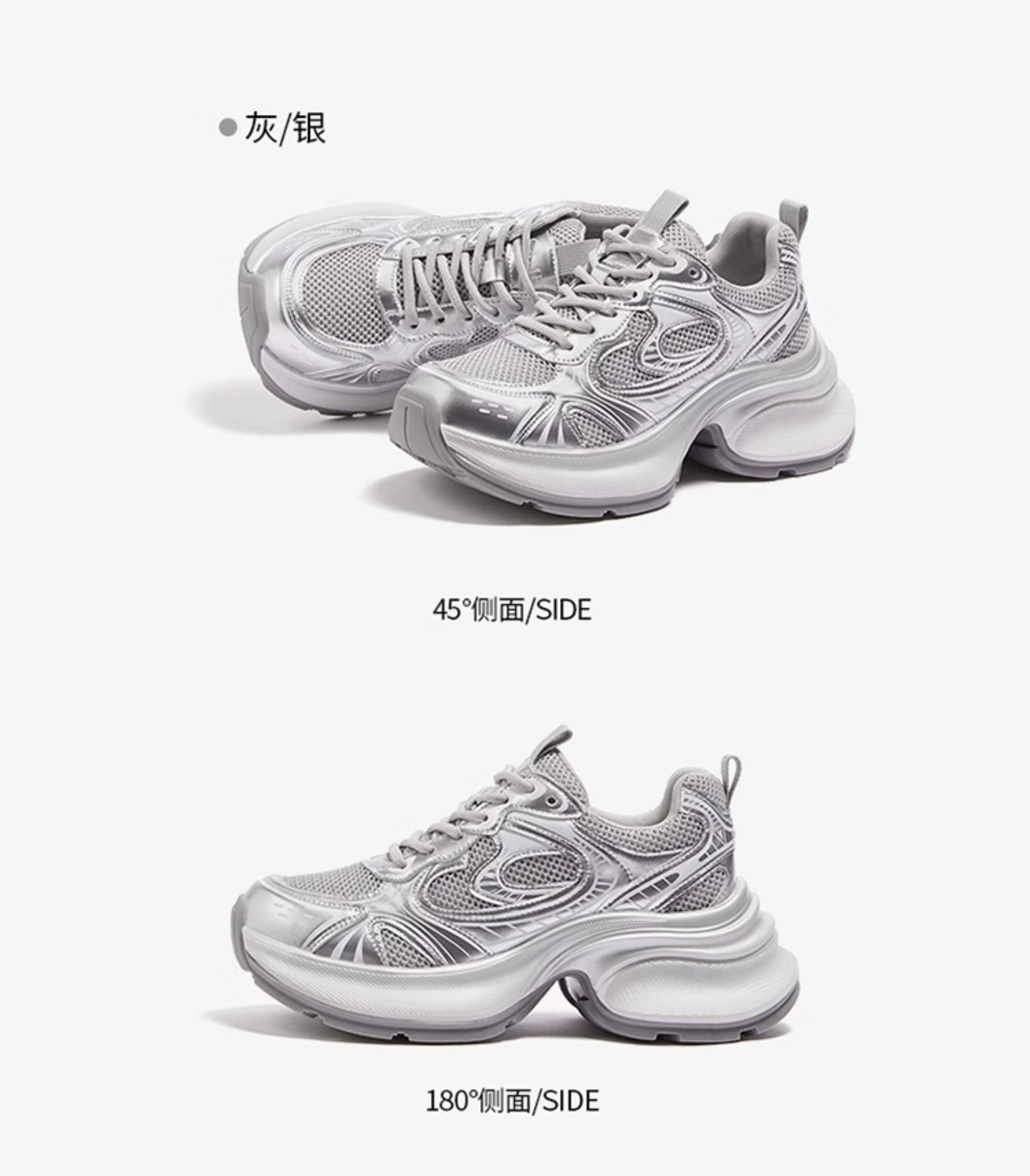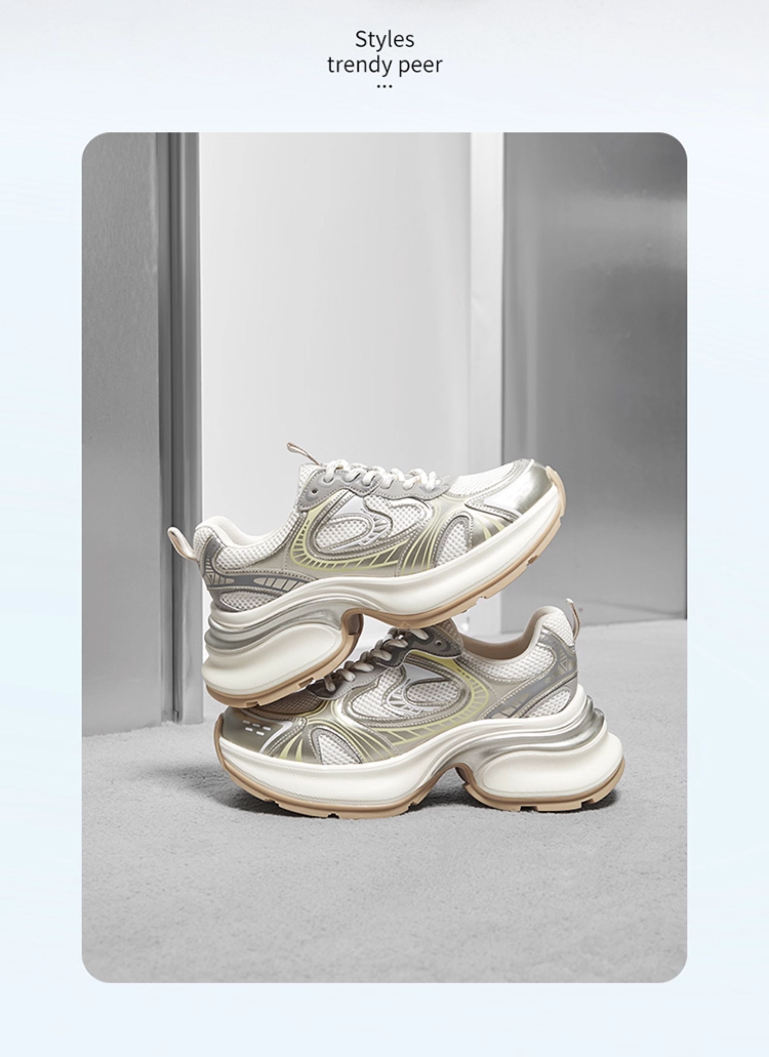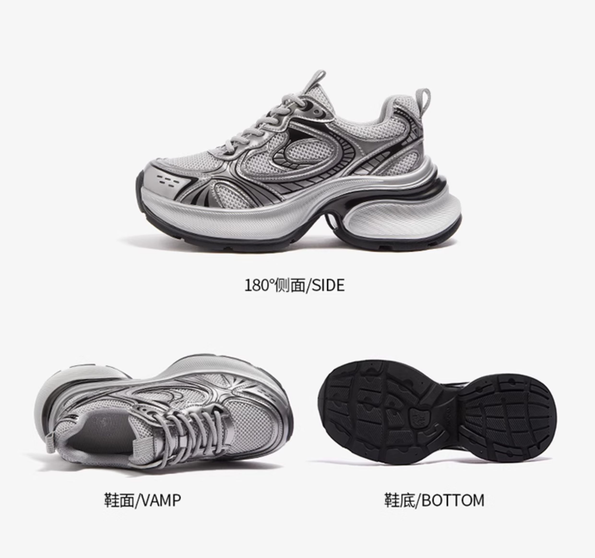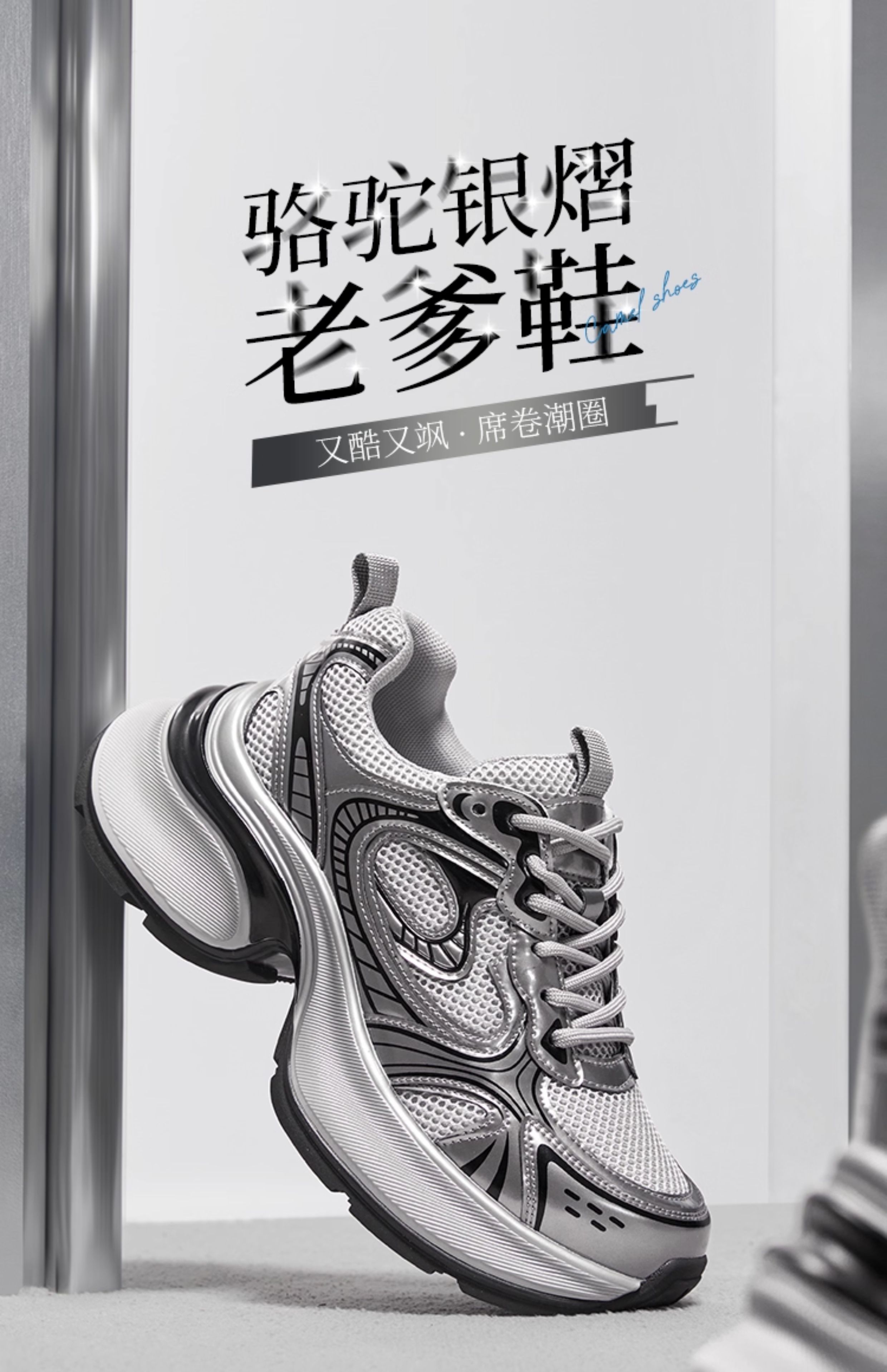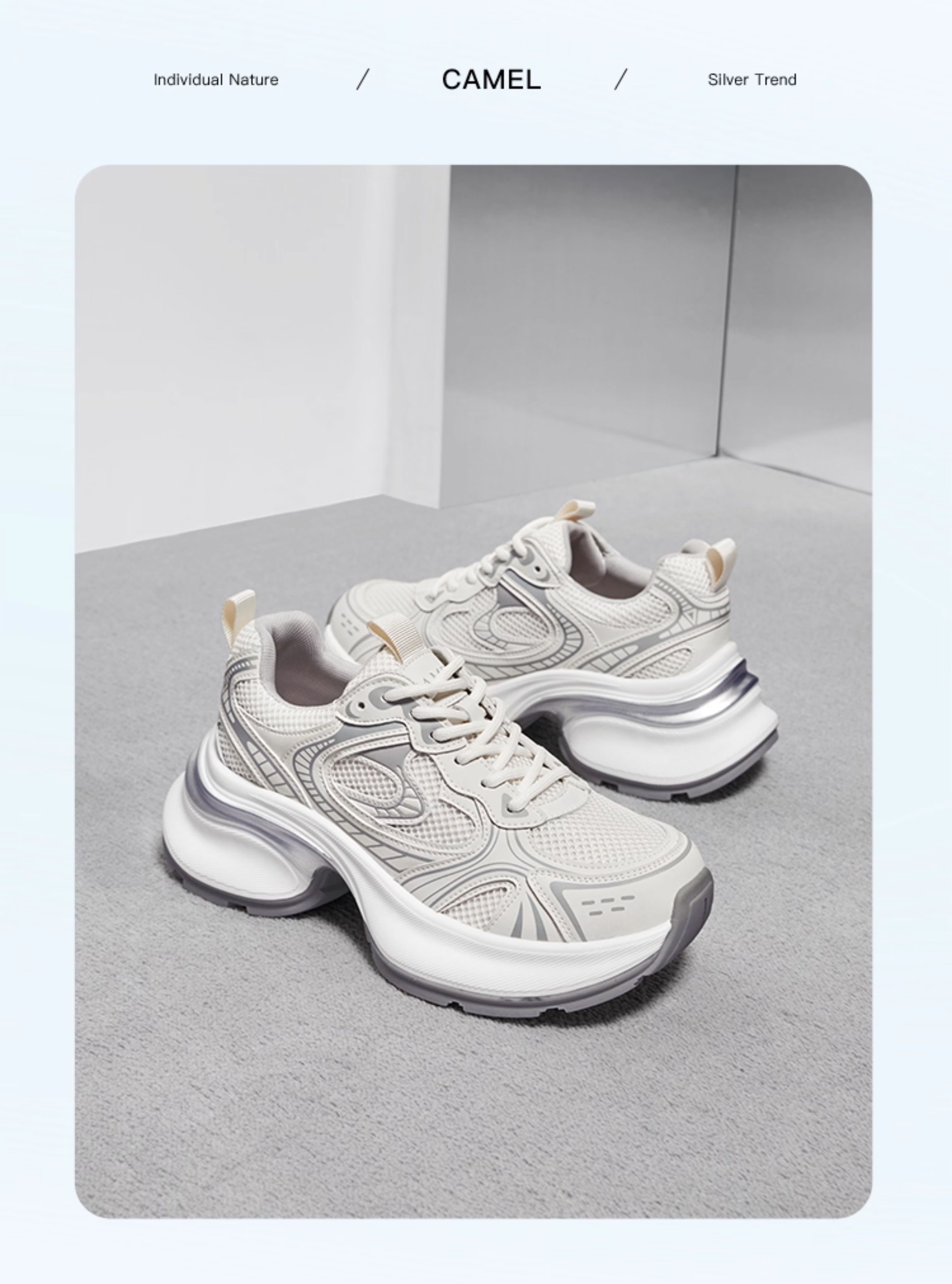 Camel Silver Daddy Shoes Women's 2025 Summer New Casual Thick-Soled Height-Increasing Silver Casual Running Sneakers