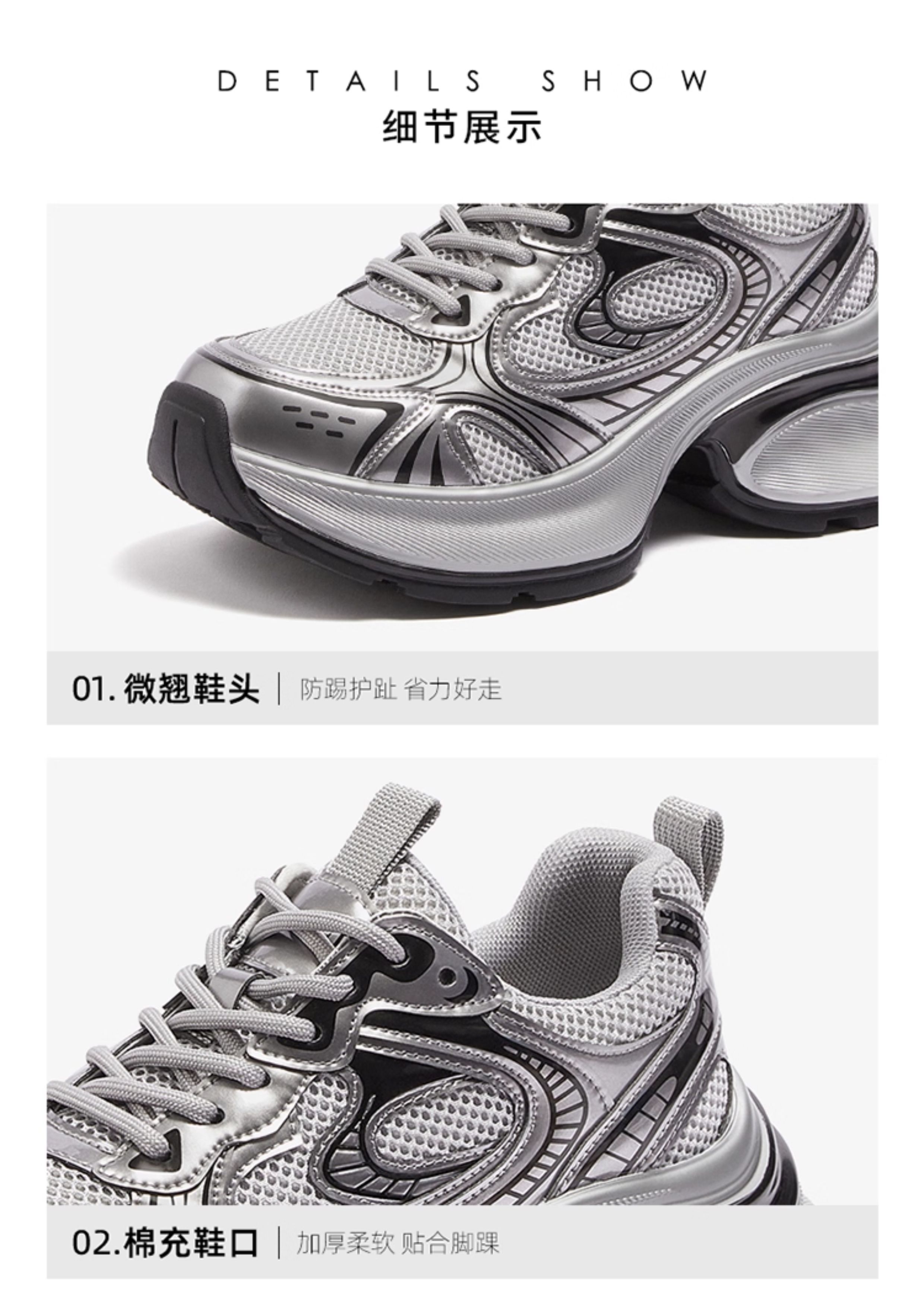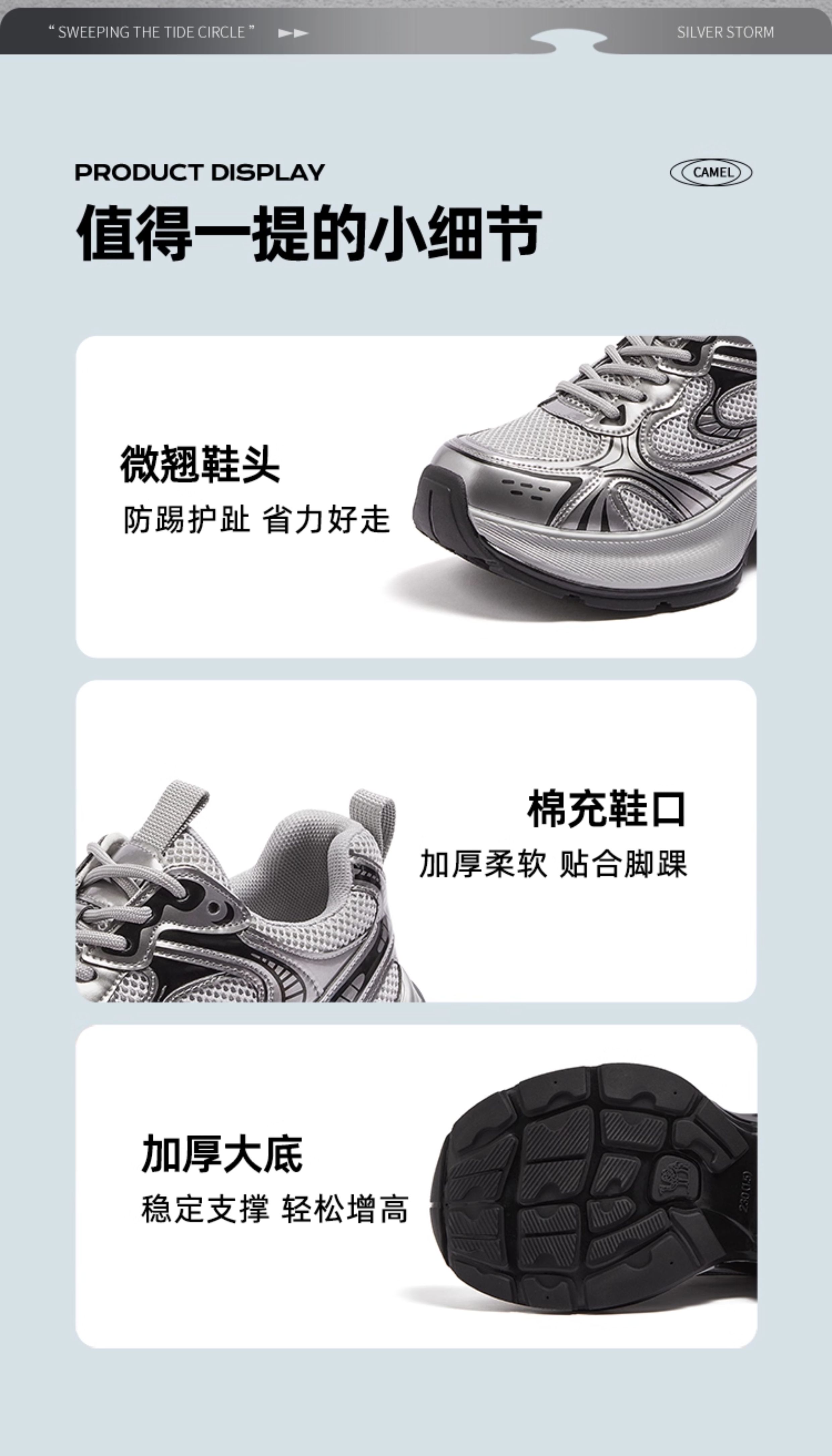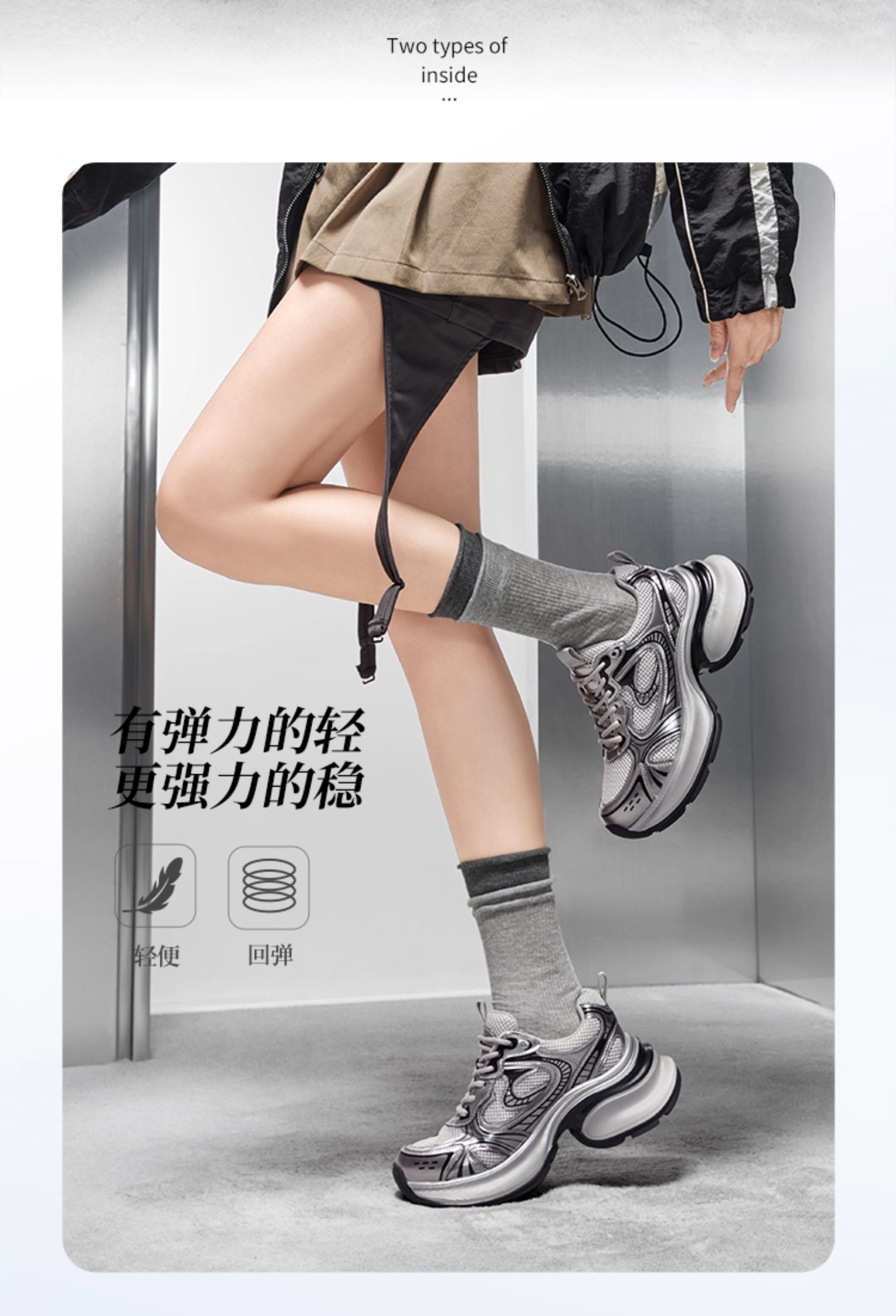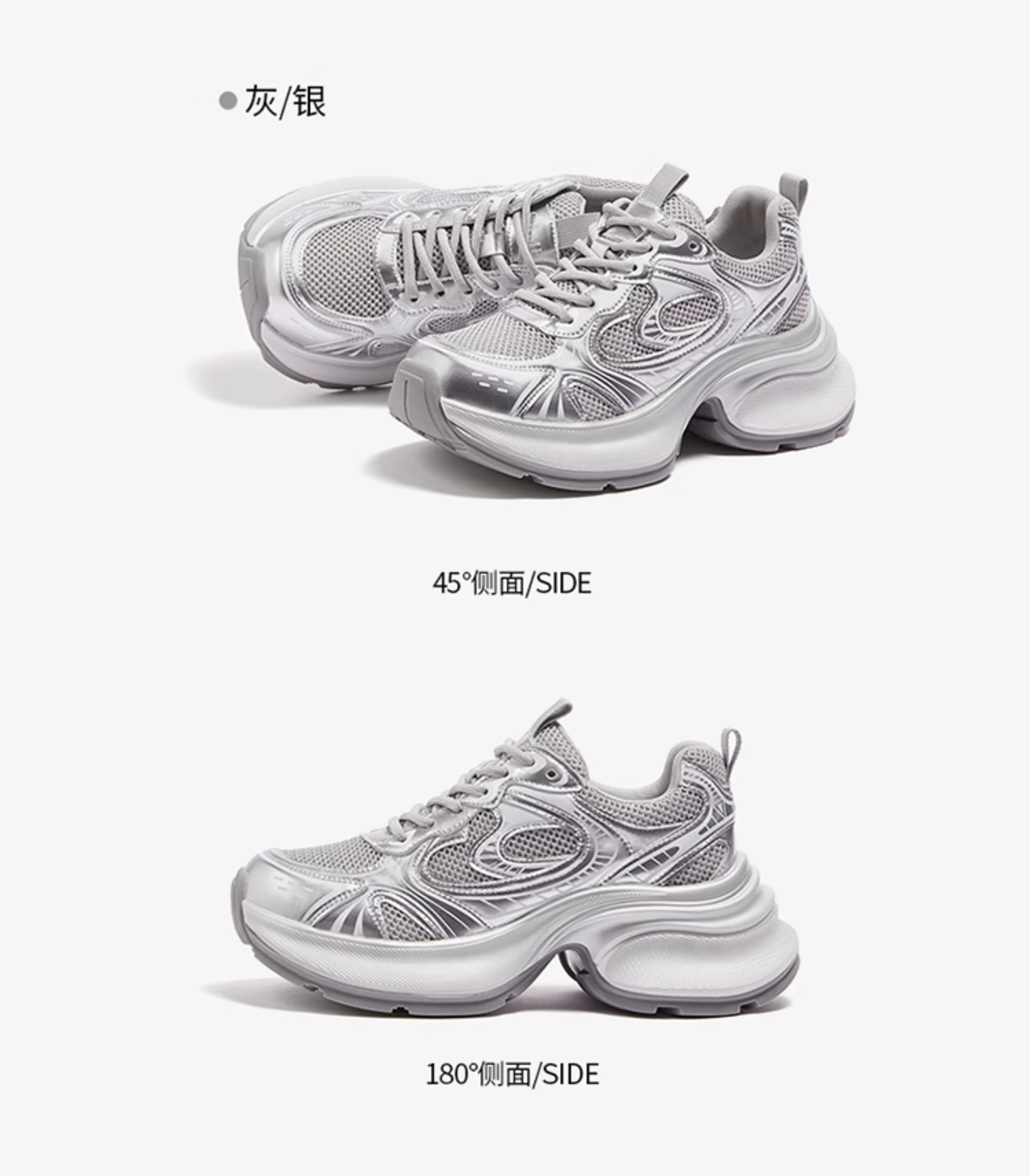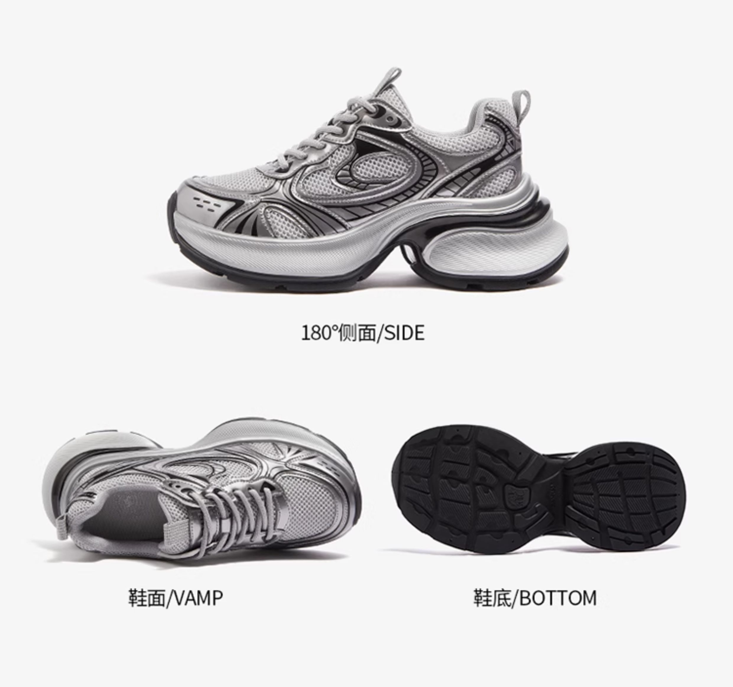 Camel Silver Daddy Shoes Women's 2025 Summer New Casual Thick-Soled Height-Increasing Silver Casual Running Sneakers