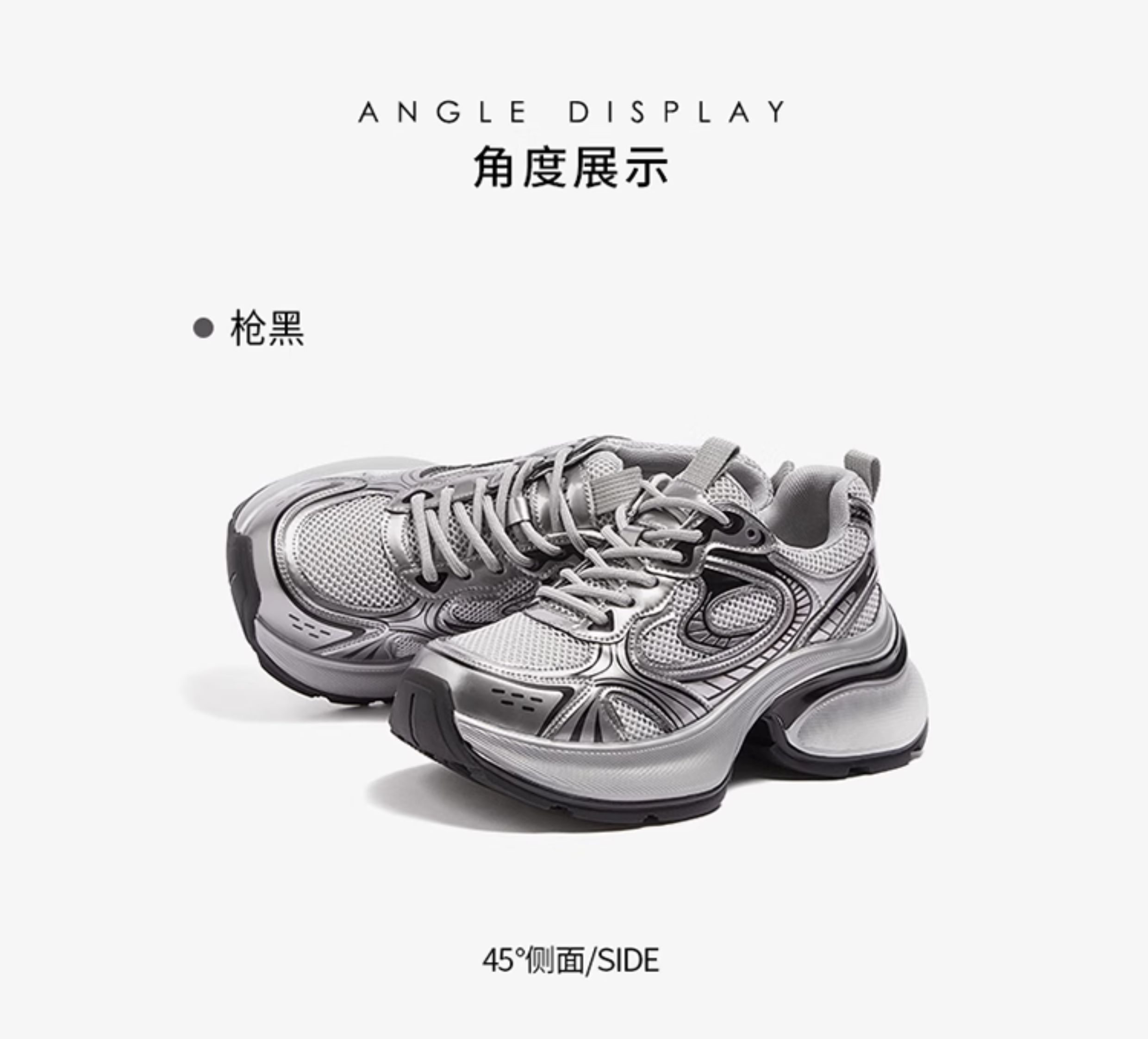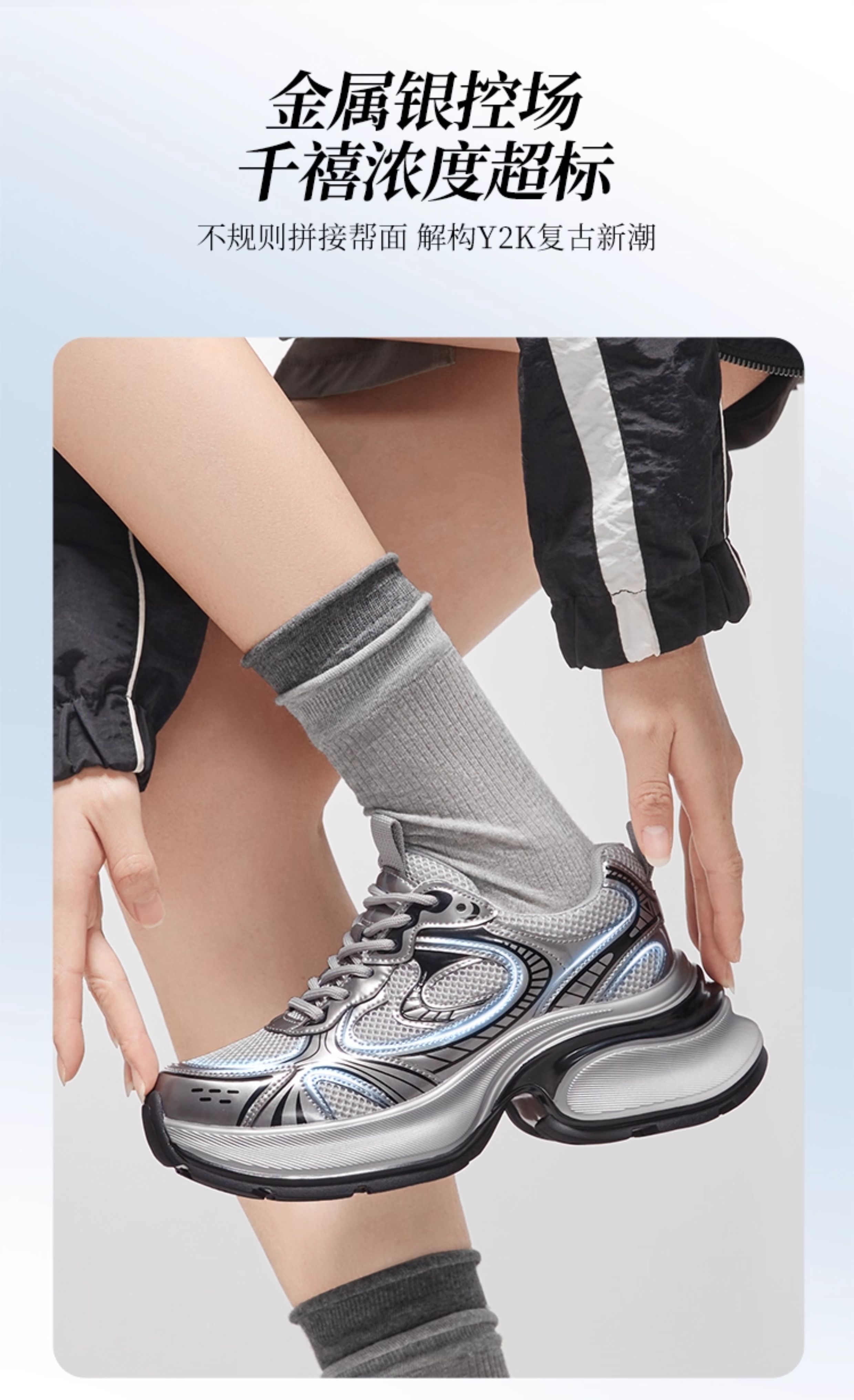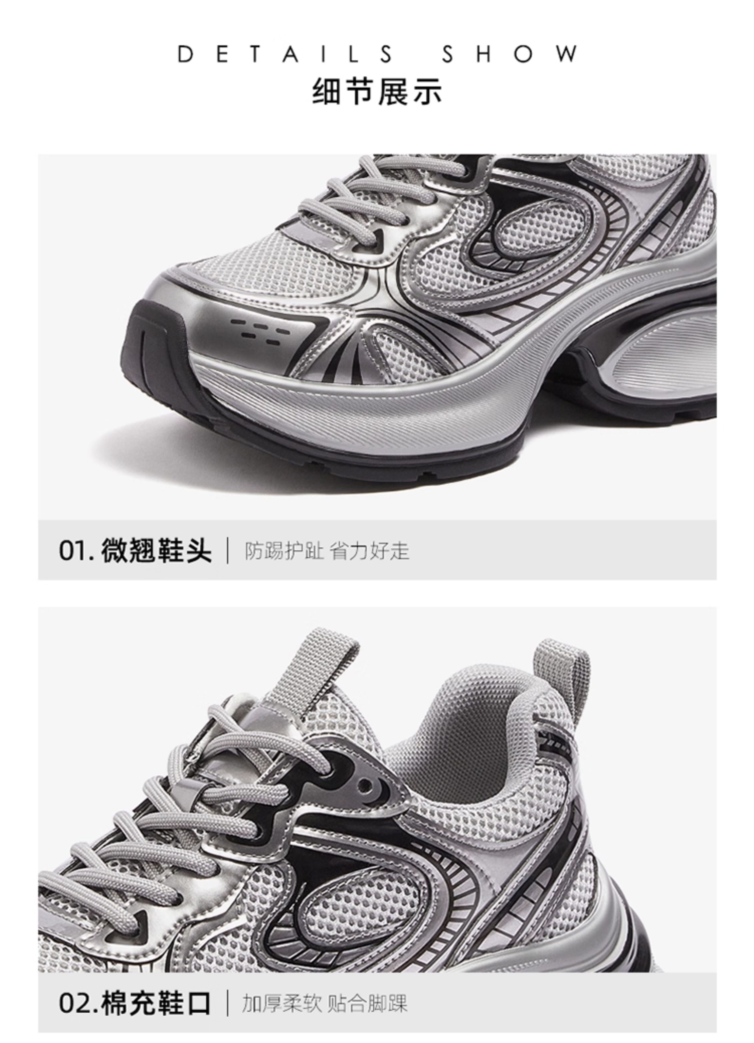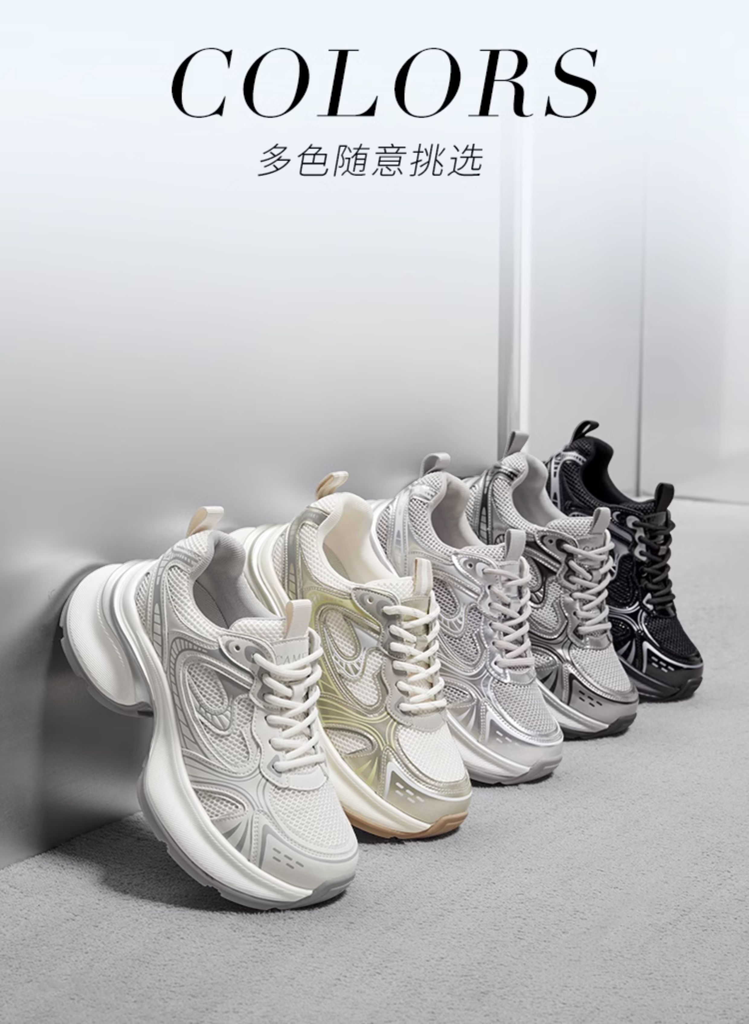 Camel Silver Daddy Shoes Women's 2025 Summer New Casual Thick-Soled Height-Increasing Silver Casual Running Sneakers