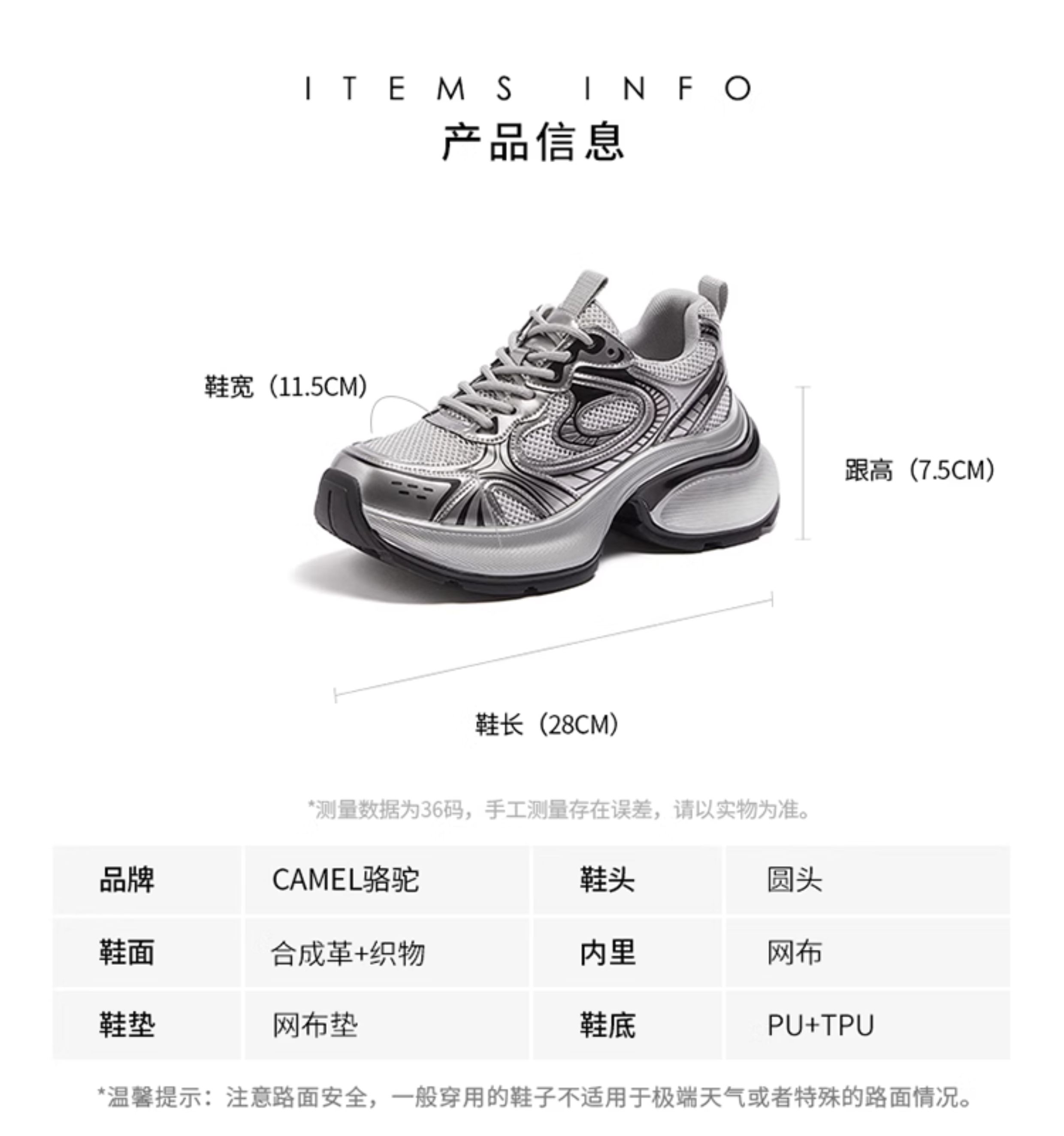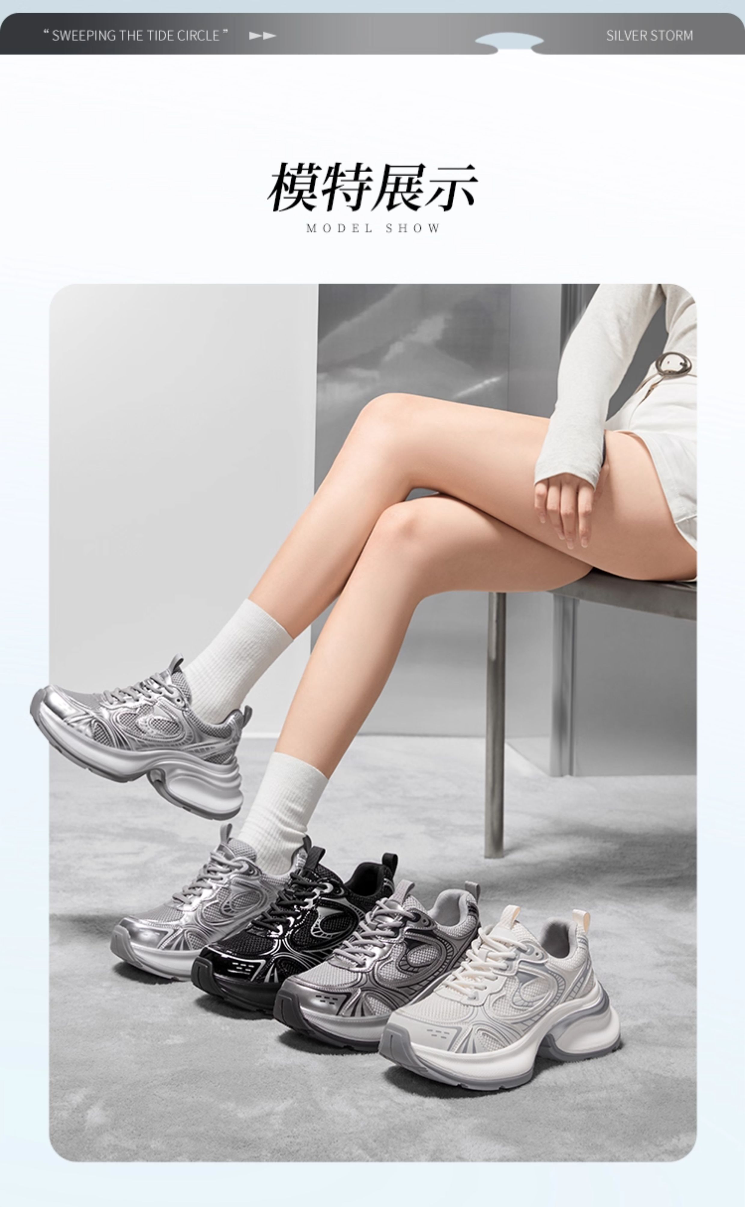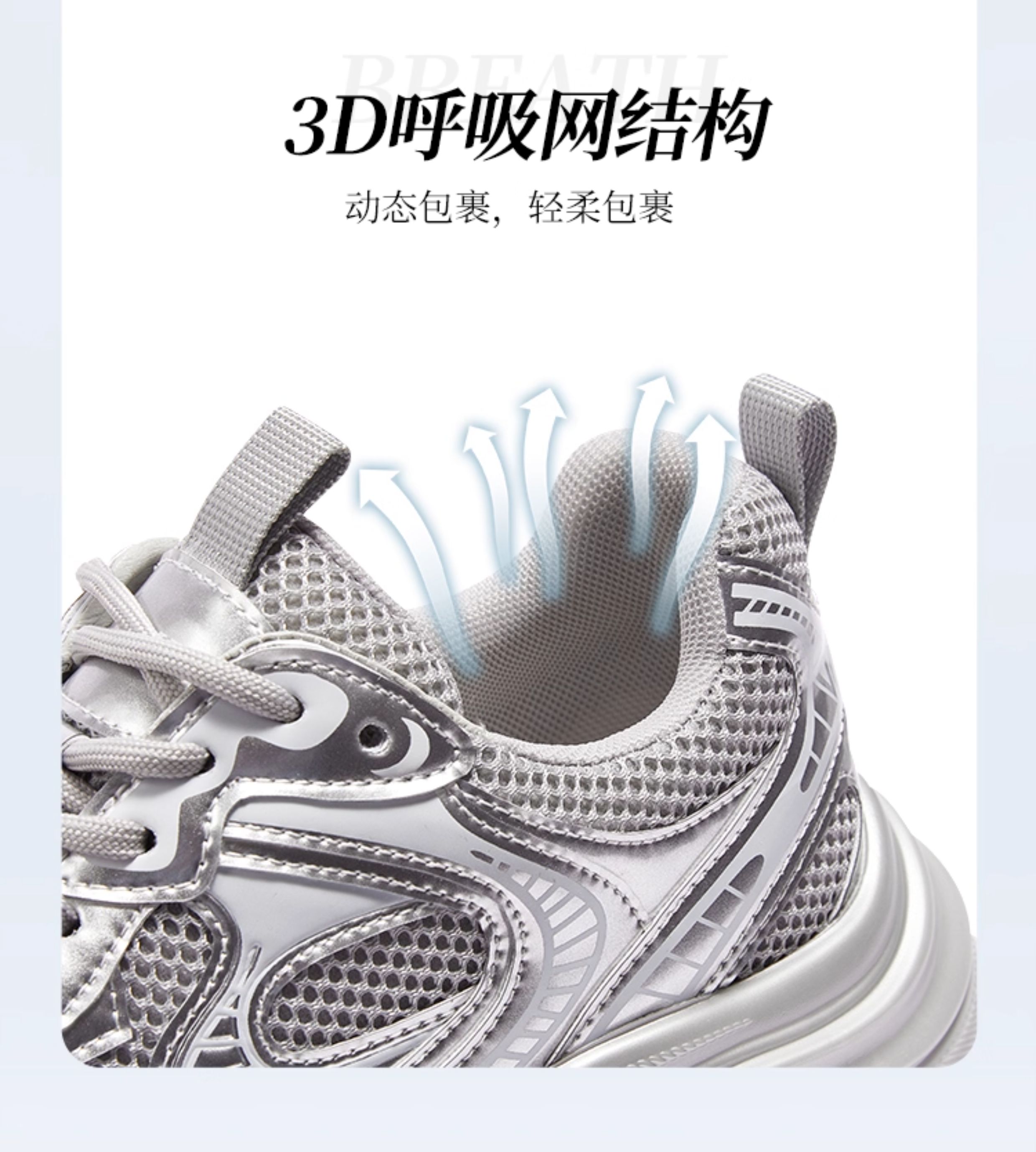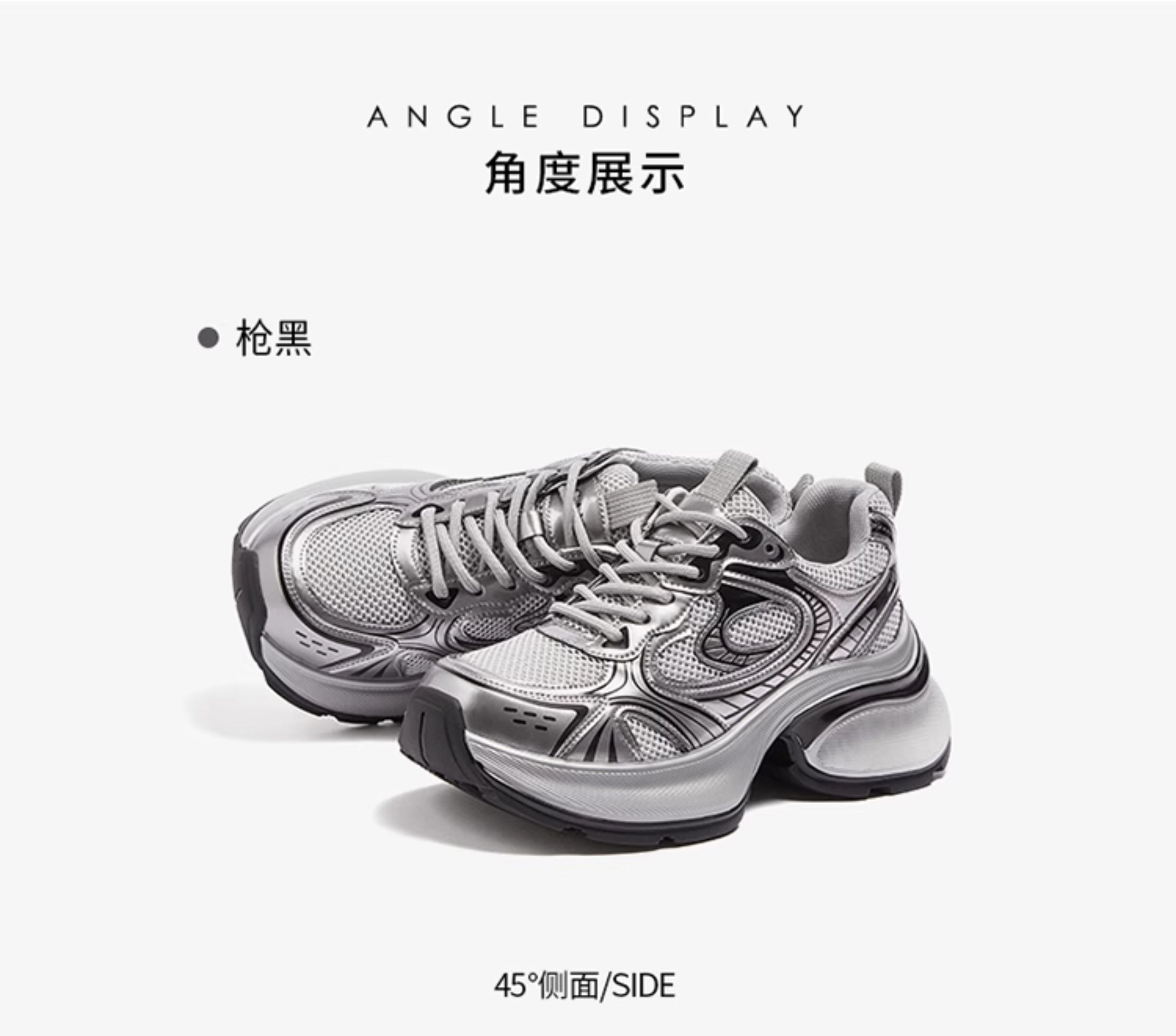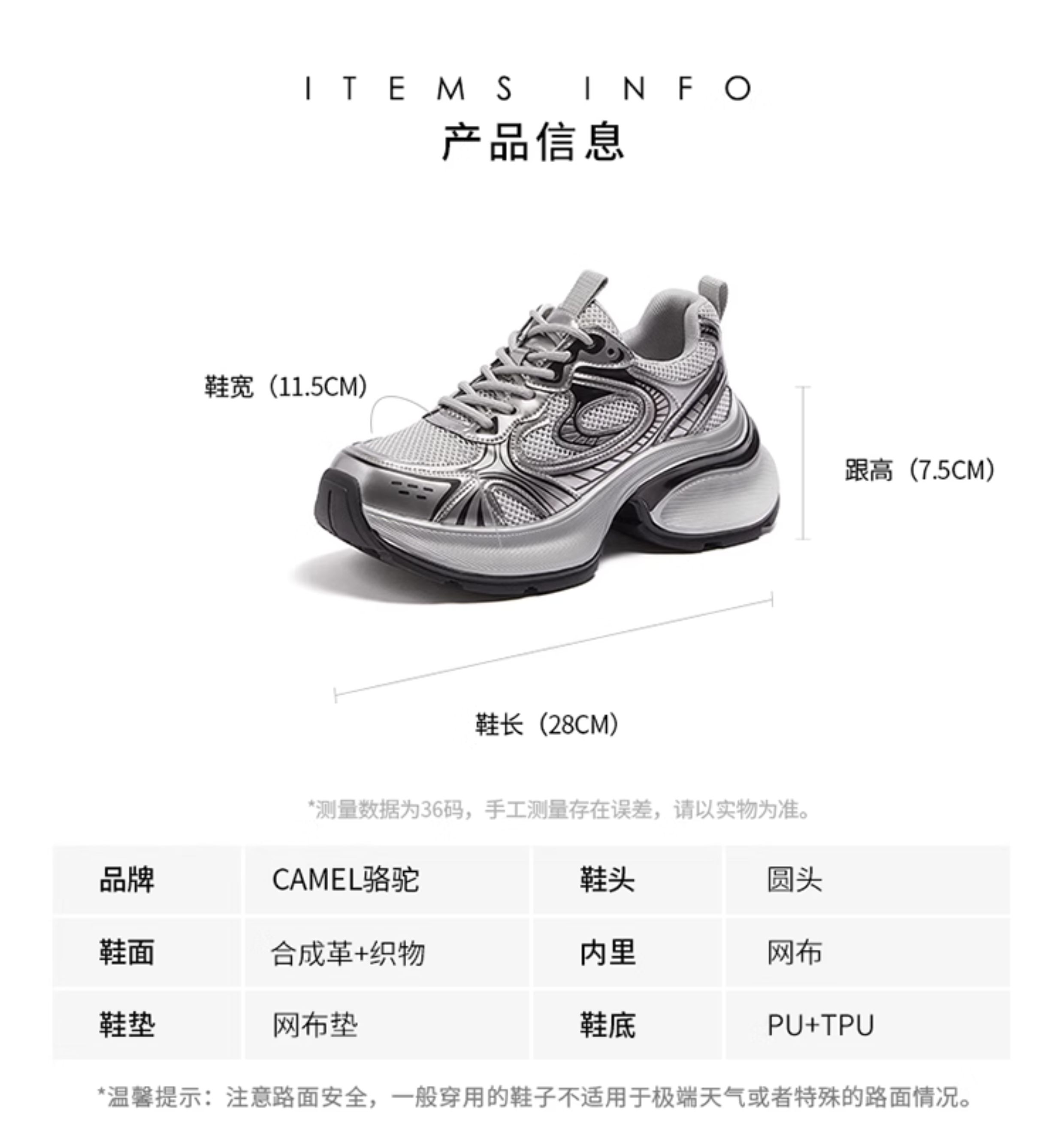 Camel Silver Daddy Shoes Women's 2025 Summer New Casual Thick-Soled Height-Increasing Silver Casual Running Sneakers