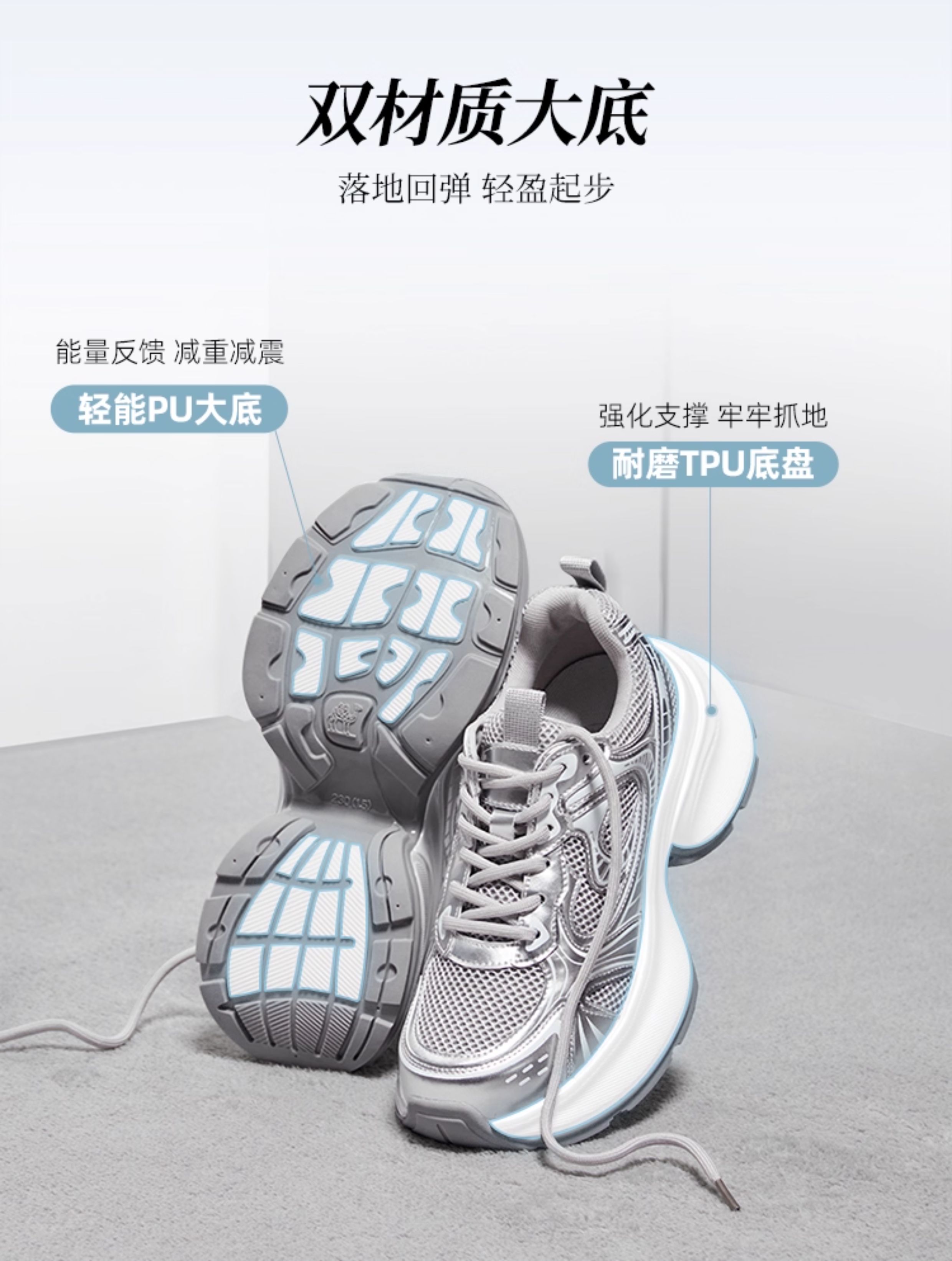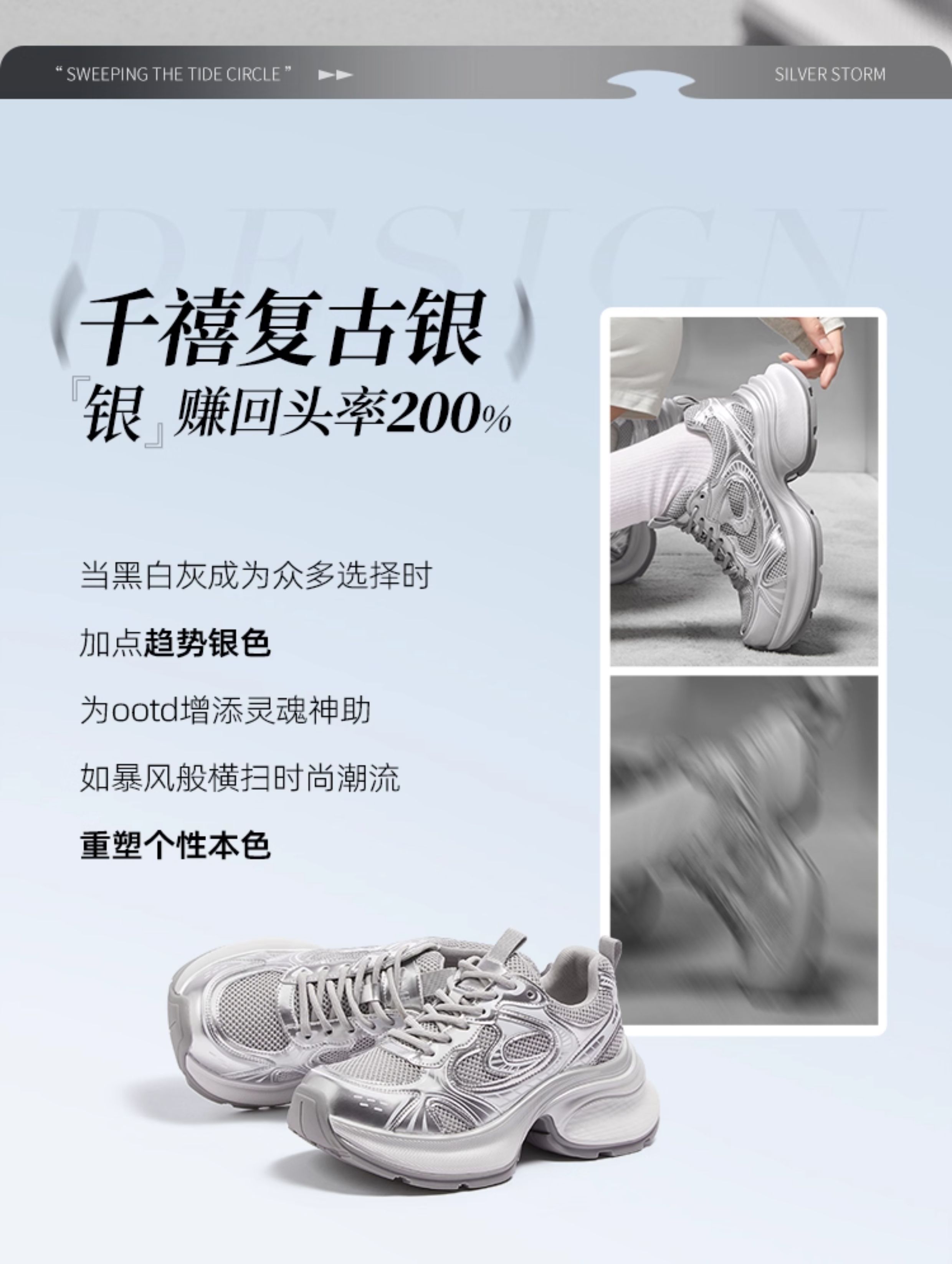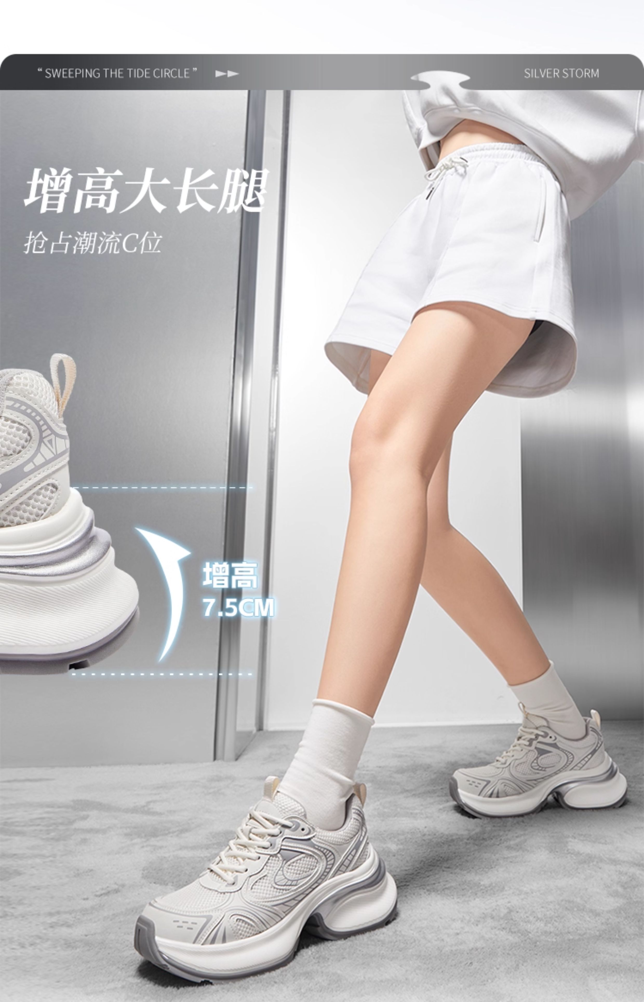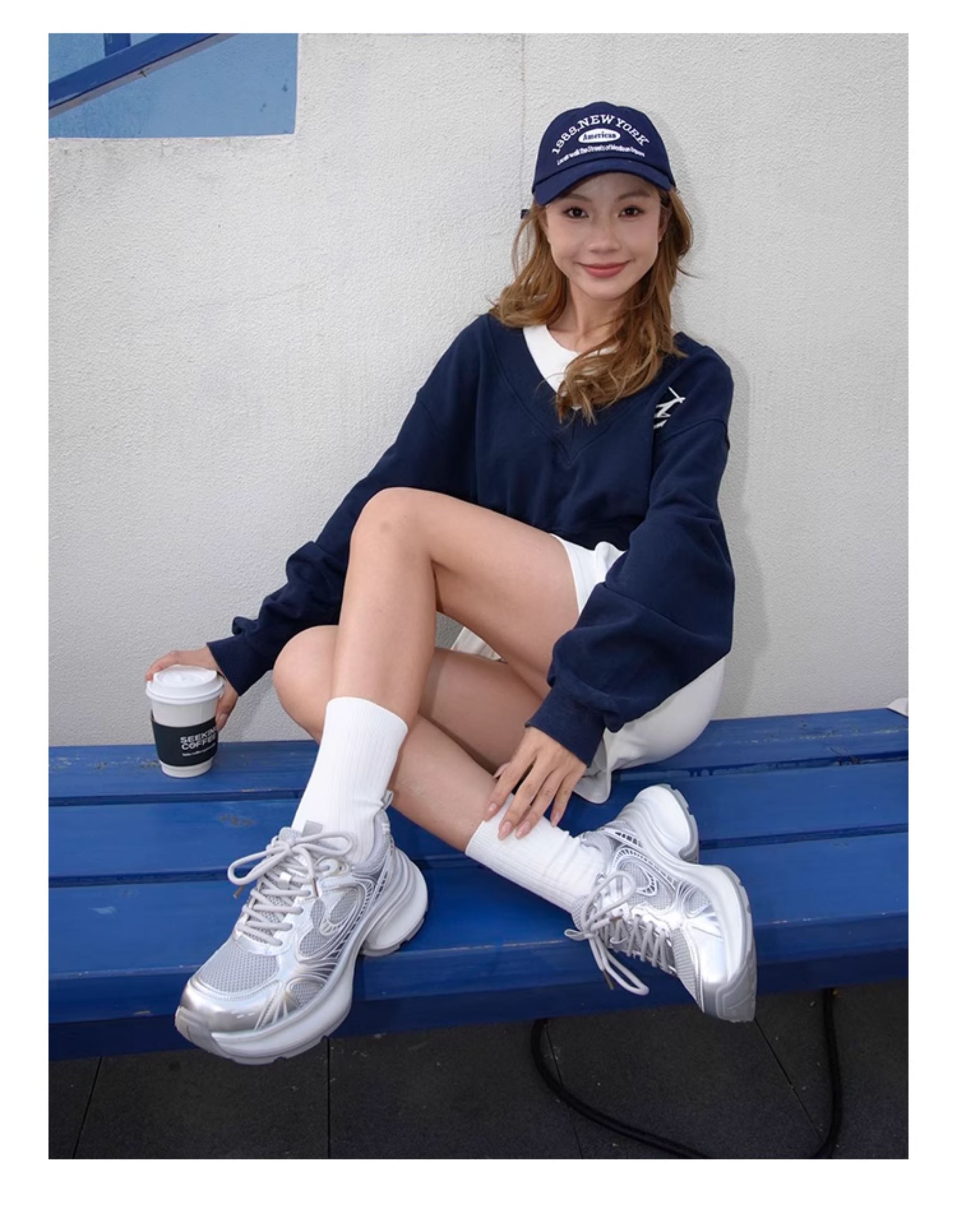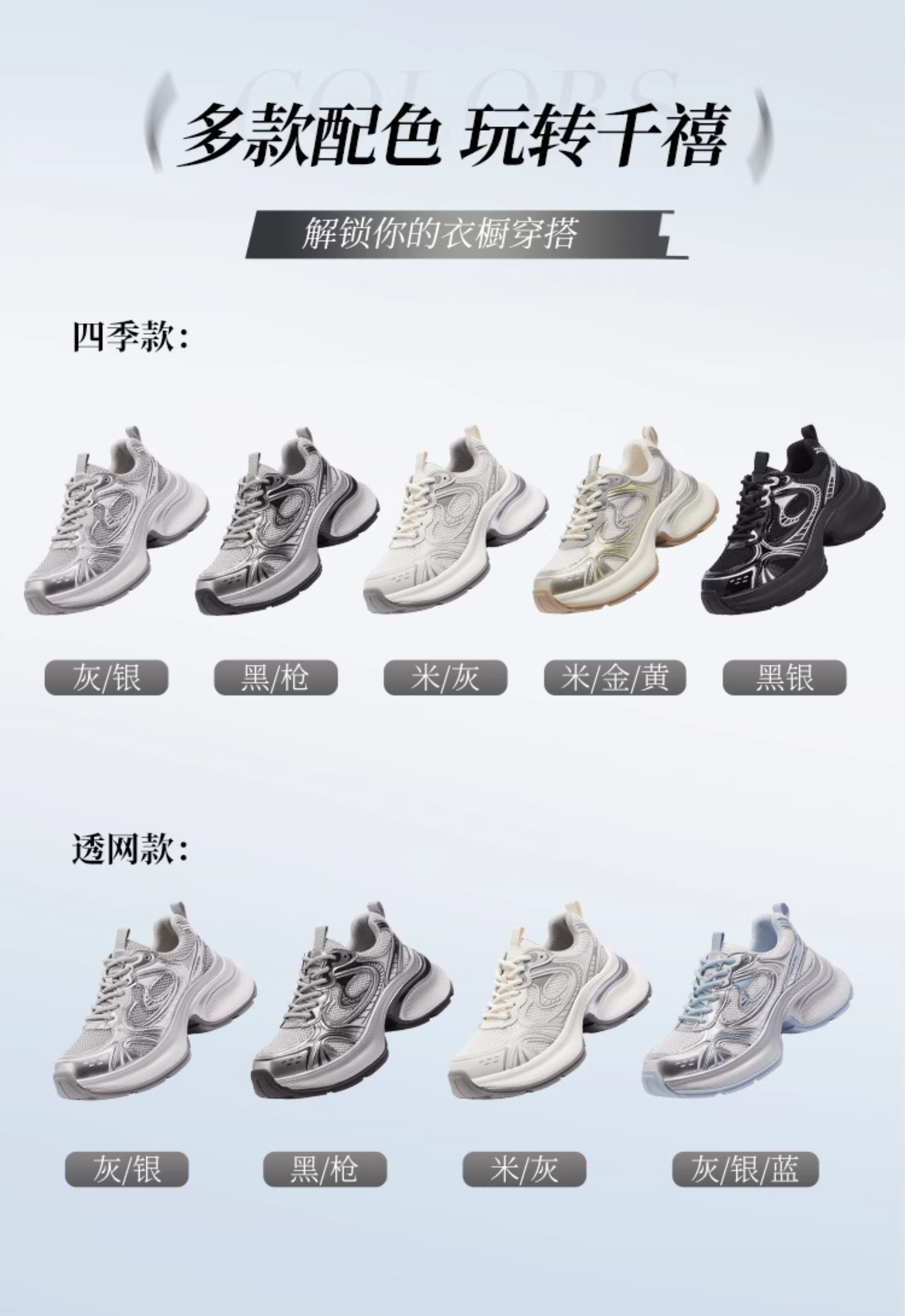 Camel Silver Daddy Shoes Women's 2025 Summer New Casual Thick-Soled Height-Increasing Silver Casual Running Sneakers