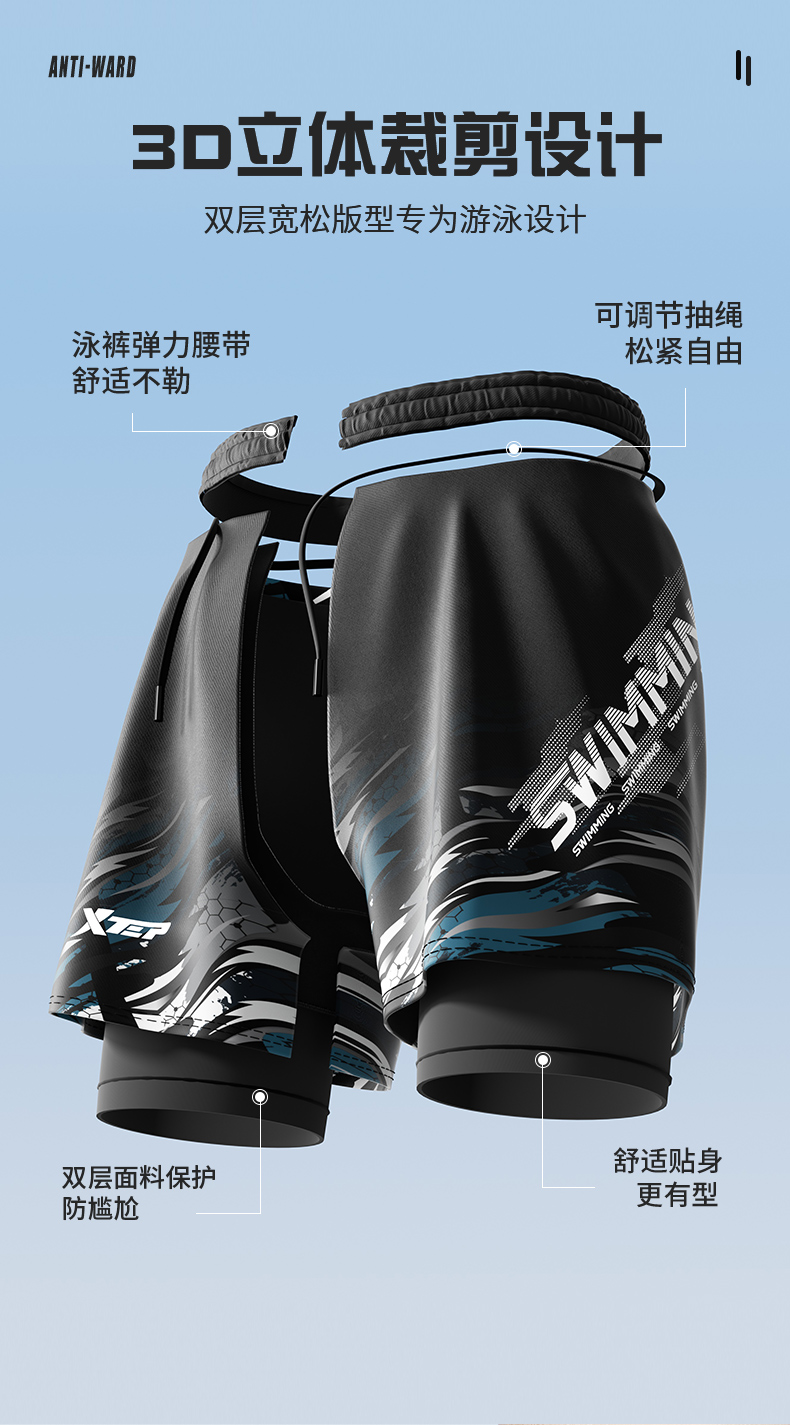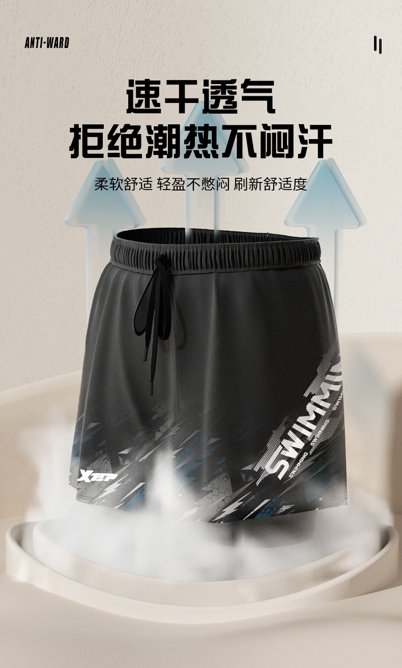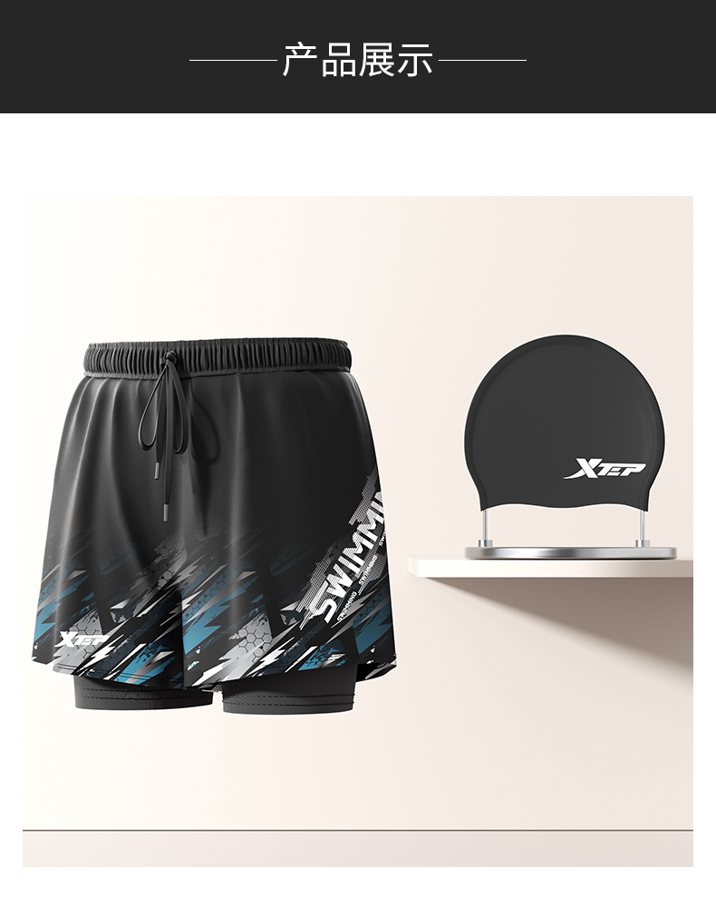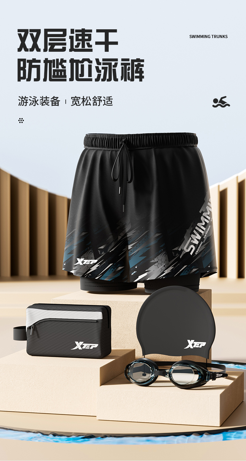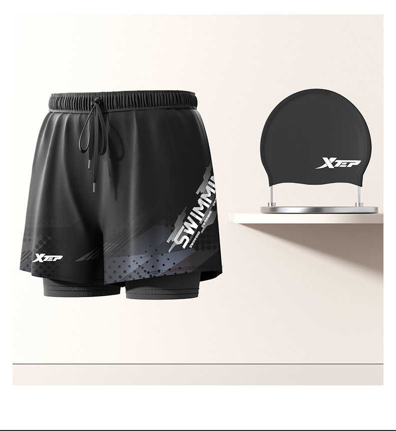 Xtep Swimming Trunks for Men, Adult and Youth, 2025 New Model, Double-Layer Anti-Embarrassment Hot Spring Swimming Trunks, Swimming Gear for Men