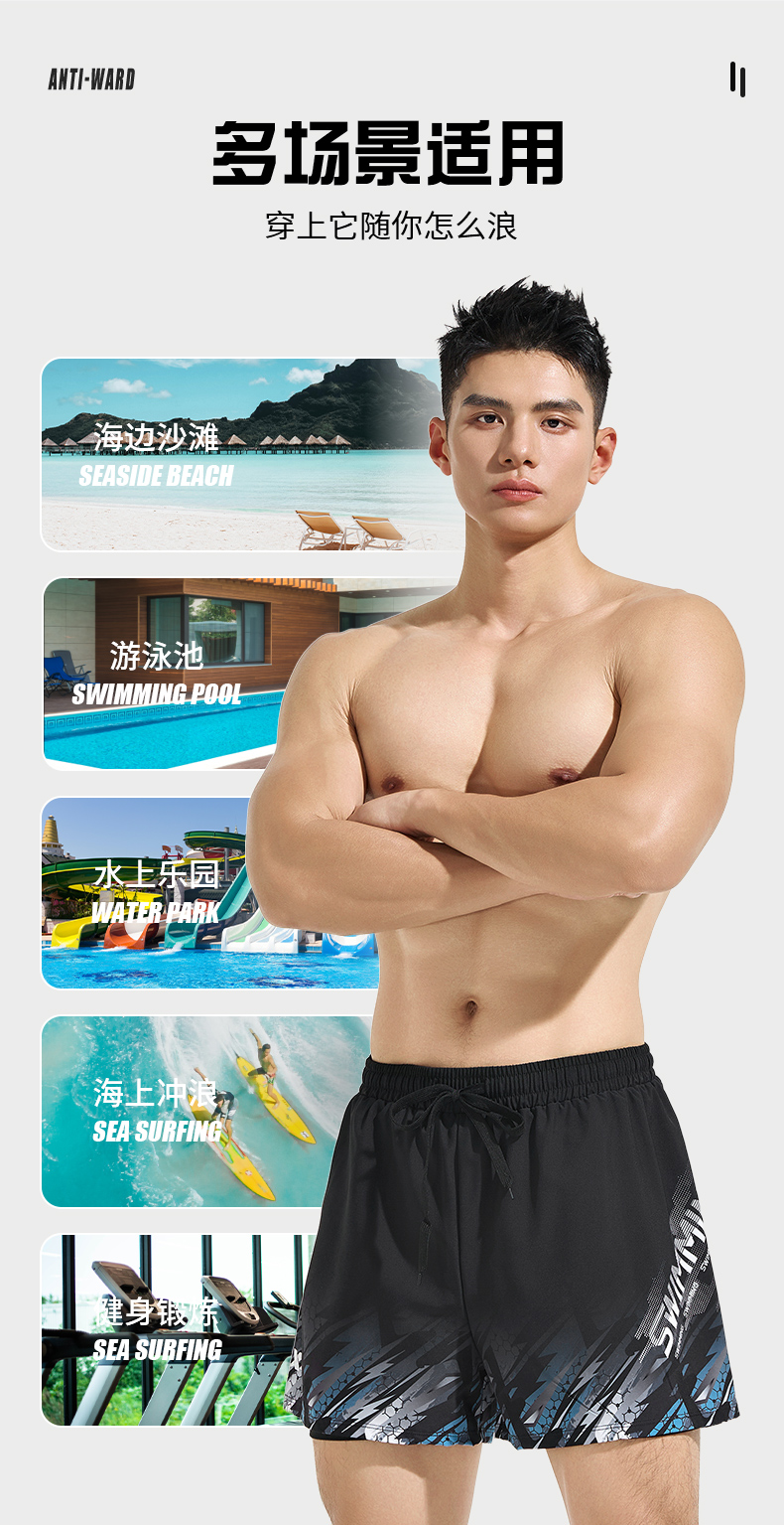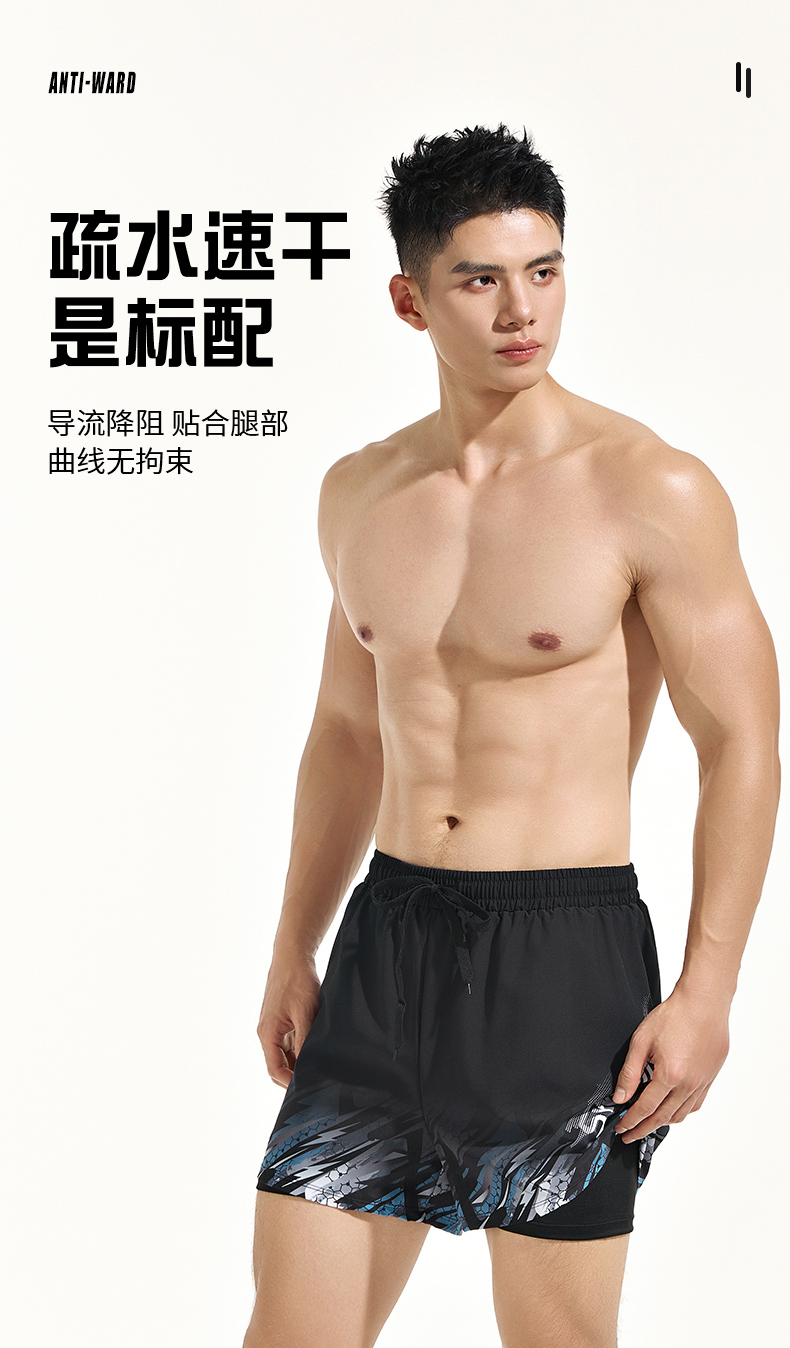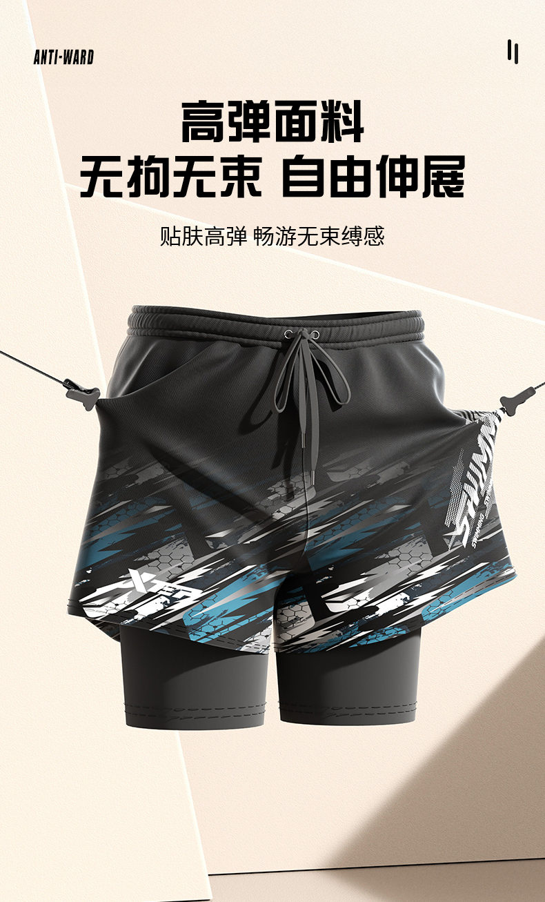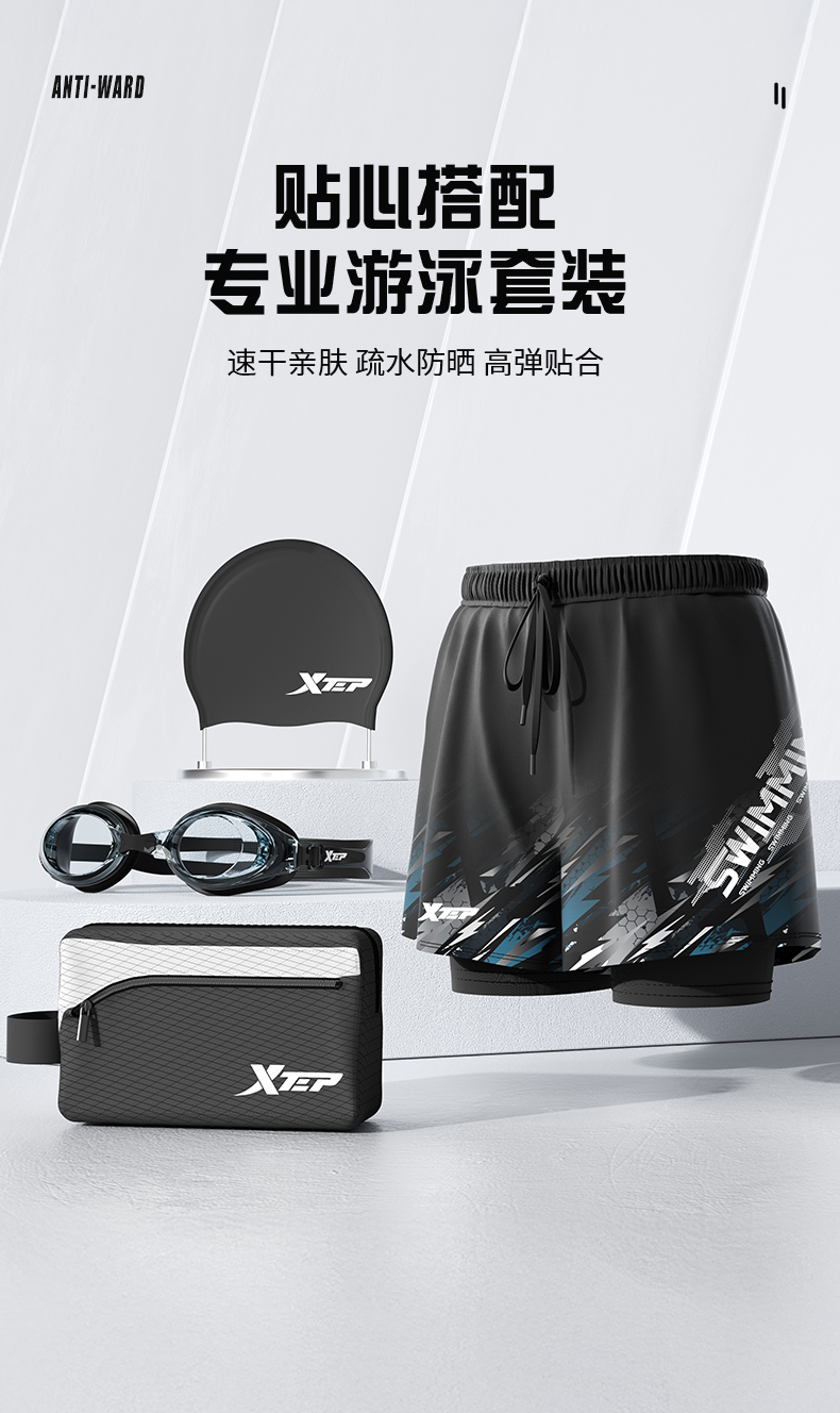 Xtep Swimming Trunks for Men, Adult and Youth, 2025 New Model, Double-Layer Anti-Embarrassment Hot Spring Swimming Trunks, Swimming Gear for Men