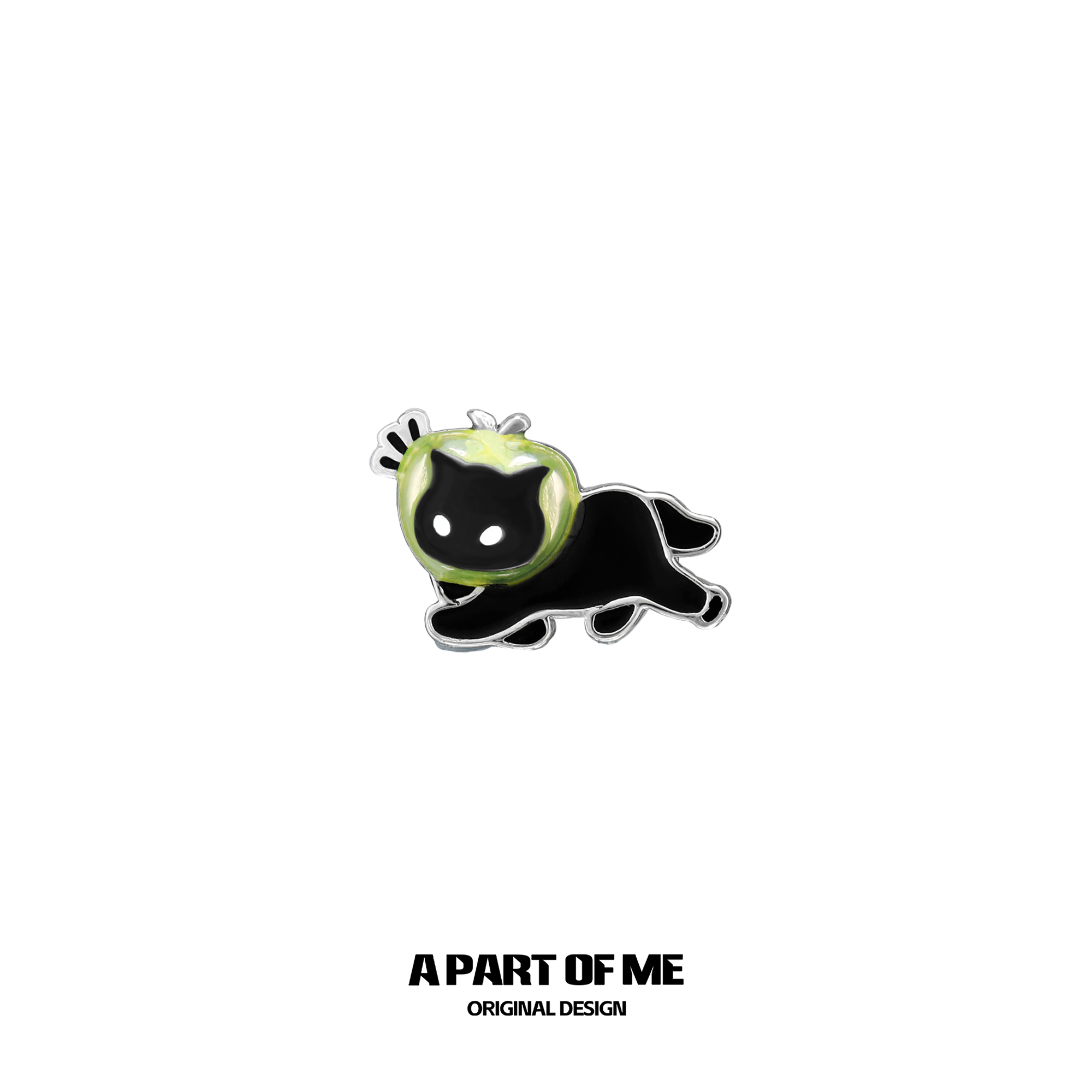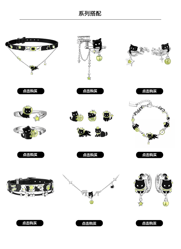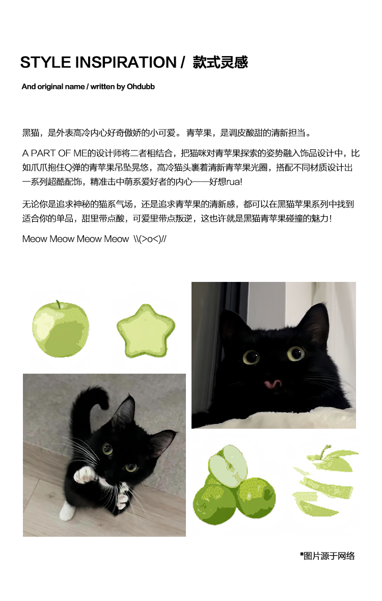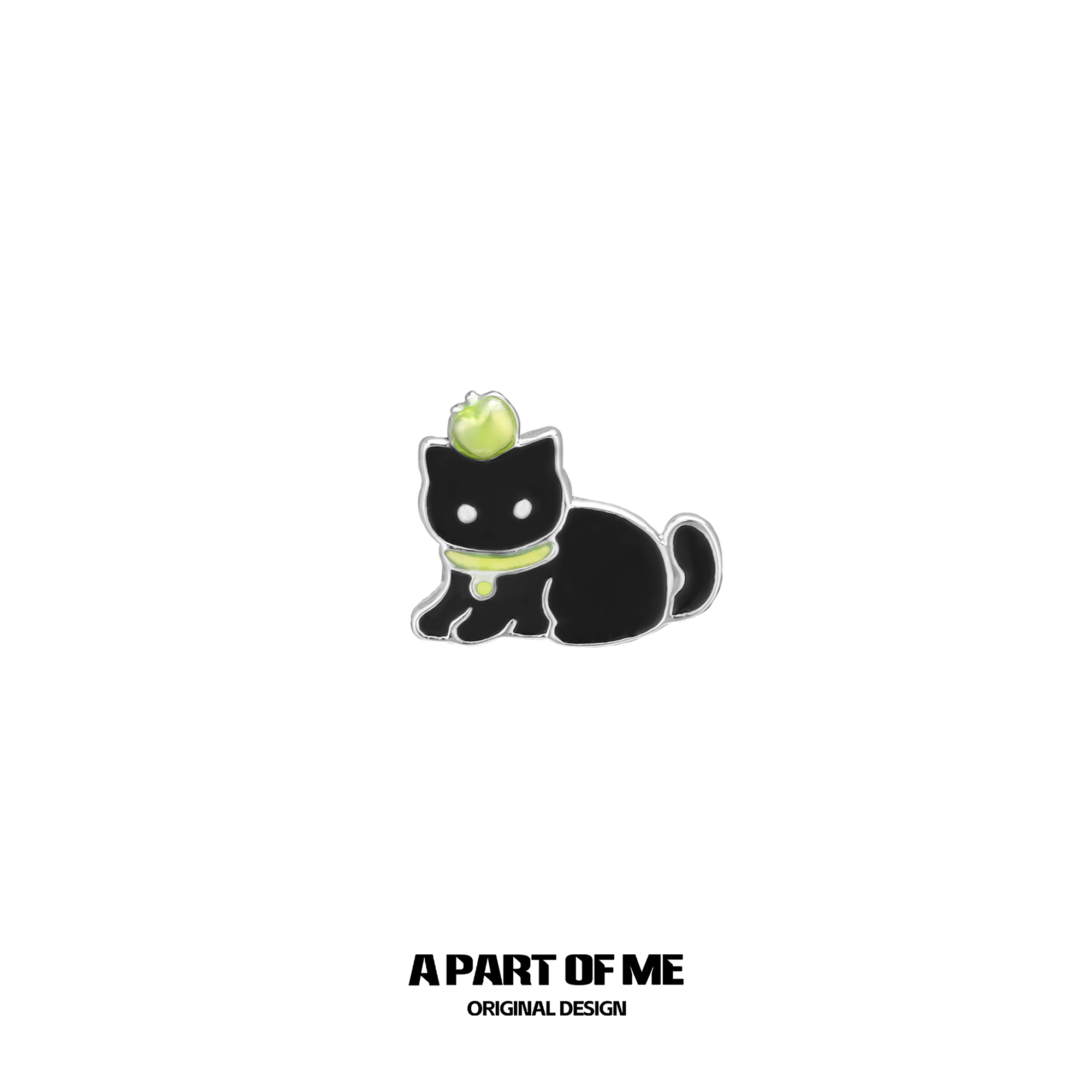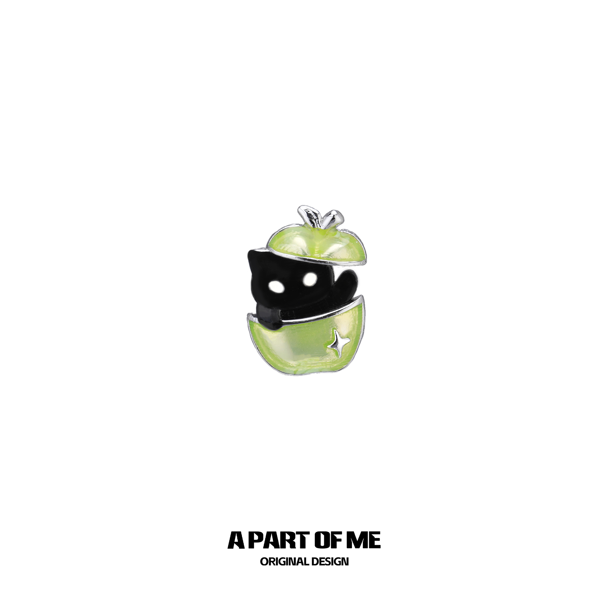 So Cute! Black Cat Green Apple Earrings, Original Niche Sweet and Cool High-End Earrings, 925 Silver Needle Ear Accessories