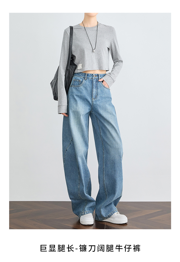 Faesslin【Pear-Shaped Savior】Scimitar Jeans for Women, Autumn and Winter, Extra Long, Loose, Casual Wide-Leg Pants, Scythe Pants