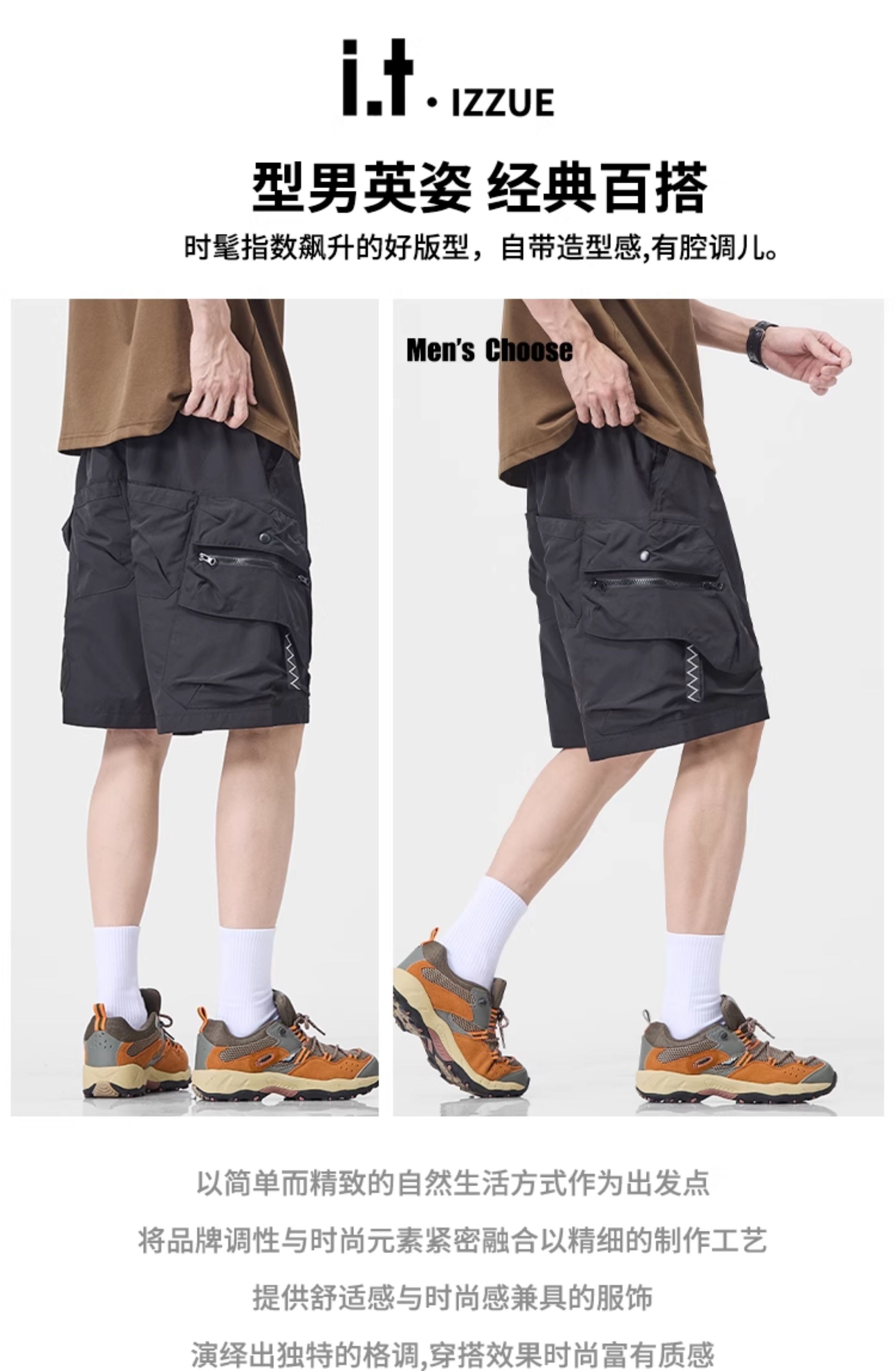 It Izzue Summer Thin Ice Silk Shorts Men's Trendy Outdoor Workwear Five-Point Casual Sports Mid-Length Pants Y