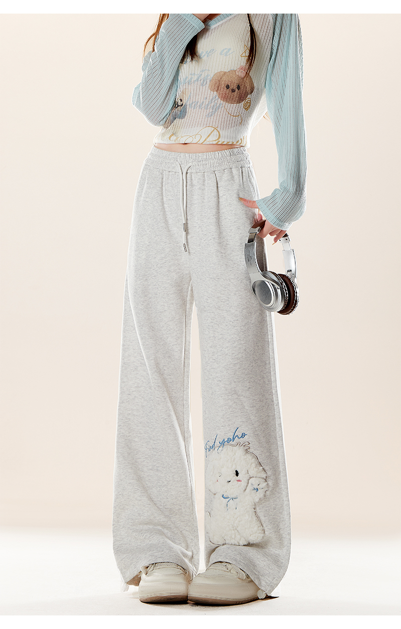 Natural and Cute Puppy Casual Sweatpants for Women, 2025 Spring and Autumn New Versatile Straight Loose Sports Pants, Trendy