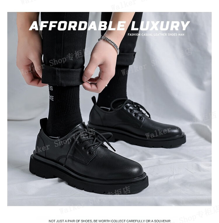 Walker Shop Light Luxury Men's Shoes Genuine Leather British Style Formal Business Leather Shoes Men's Height-Increasing Non-Slip Large Size Shoes