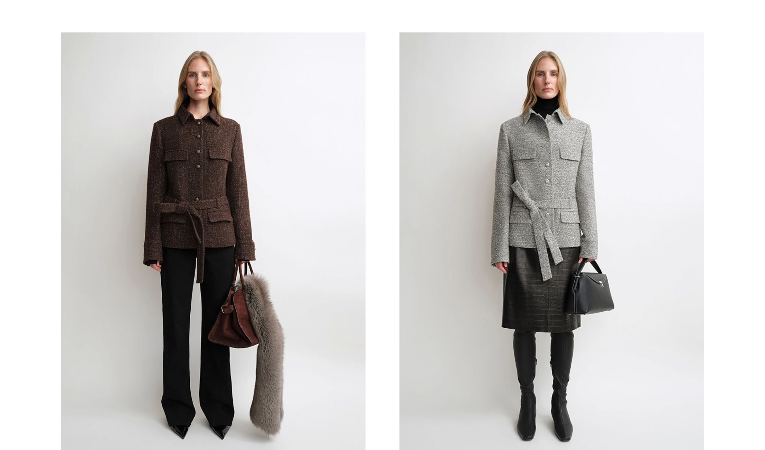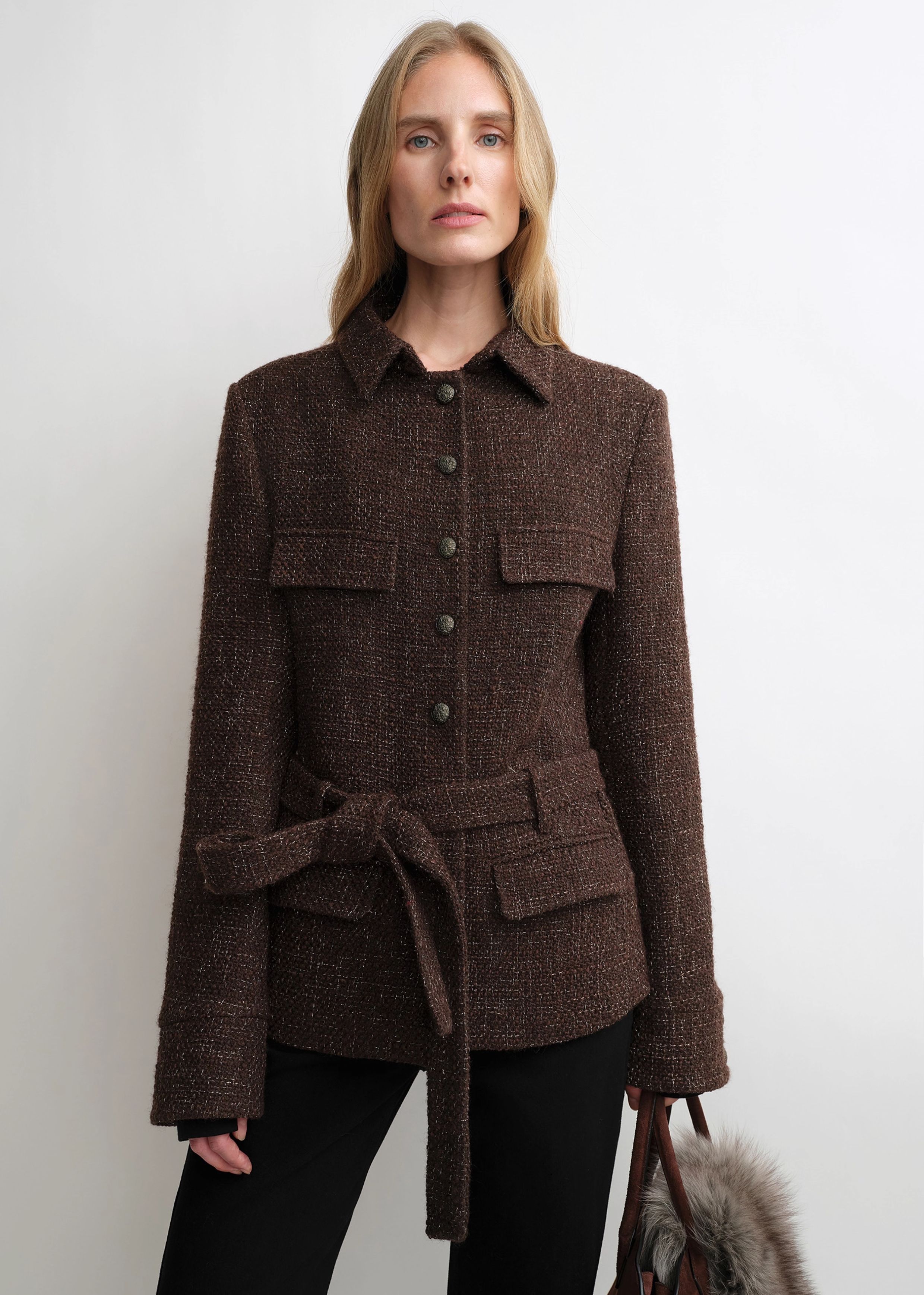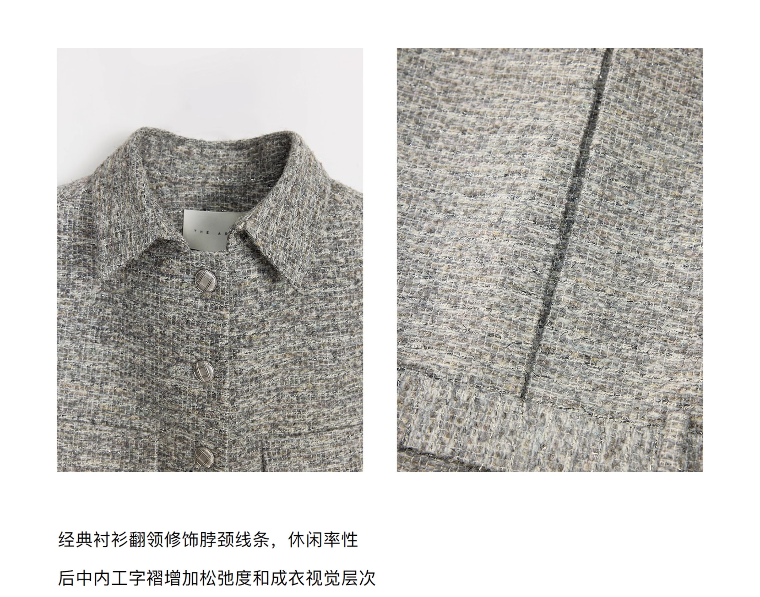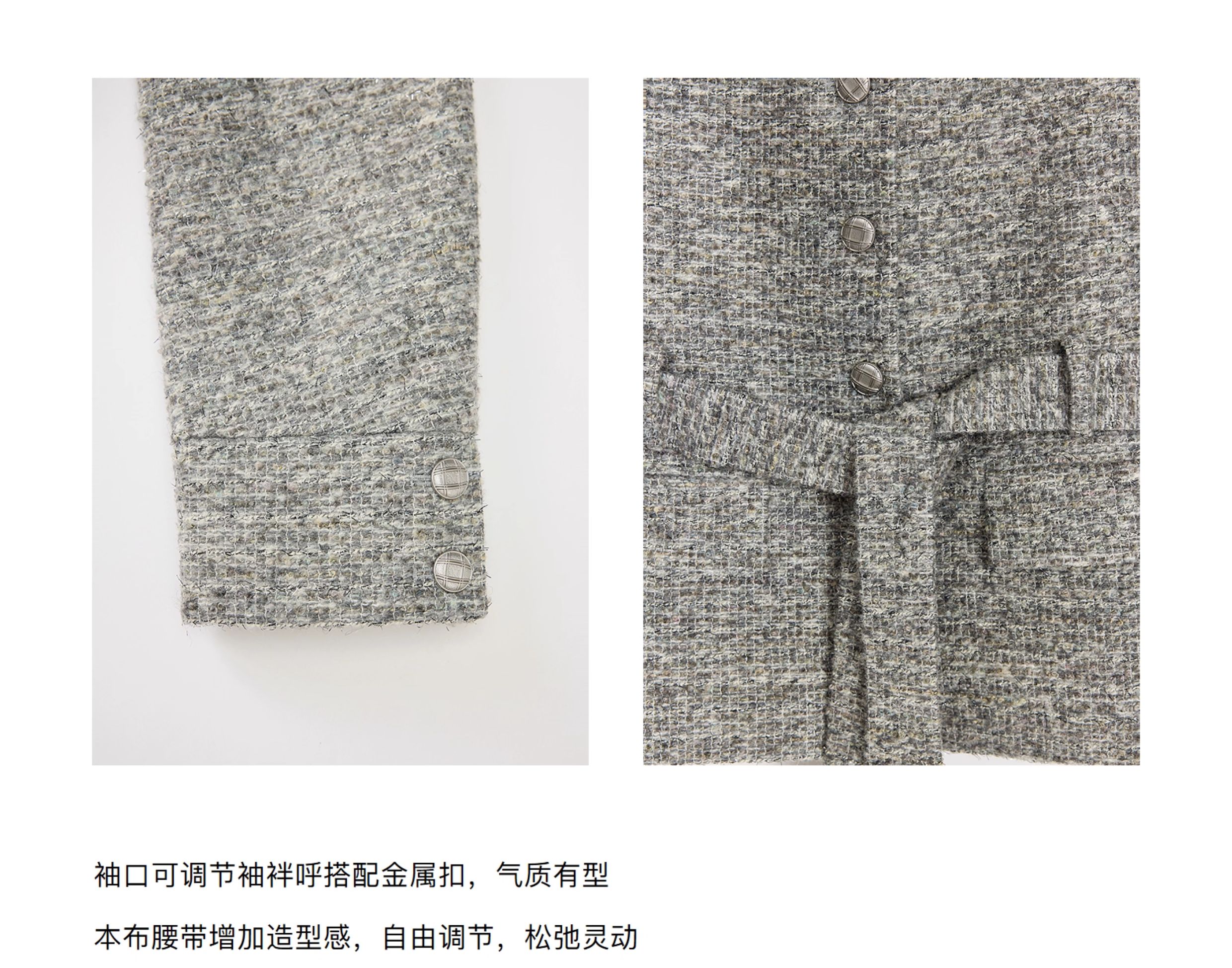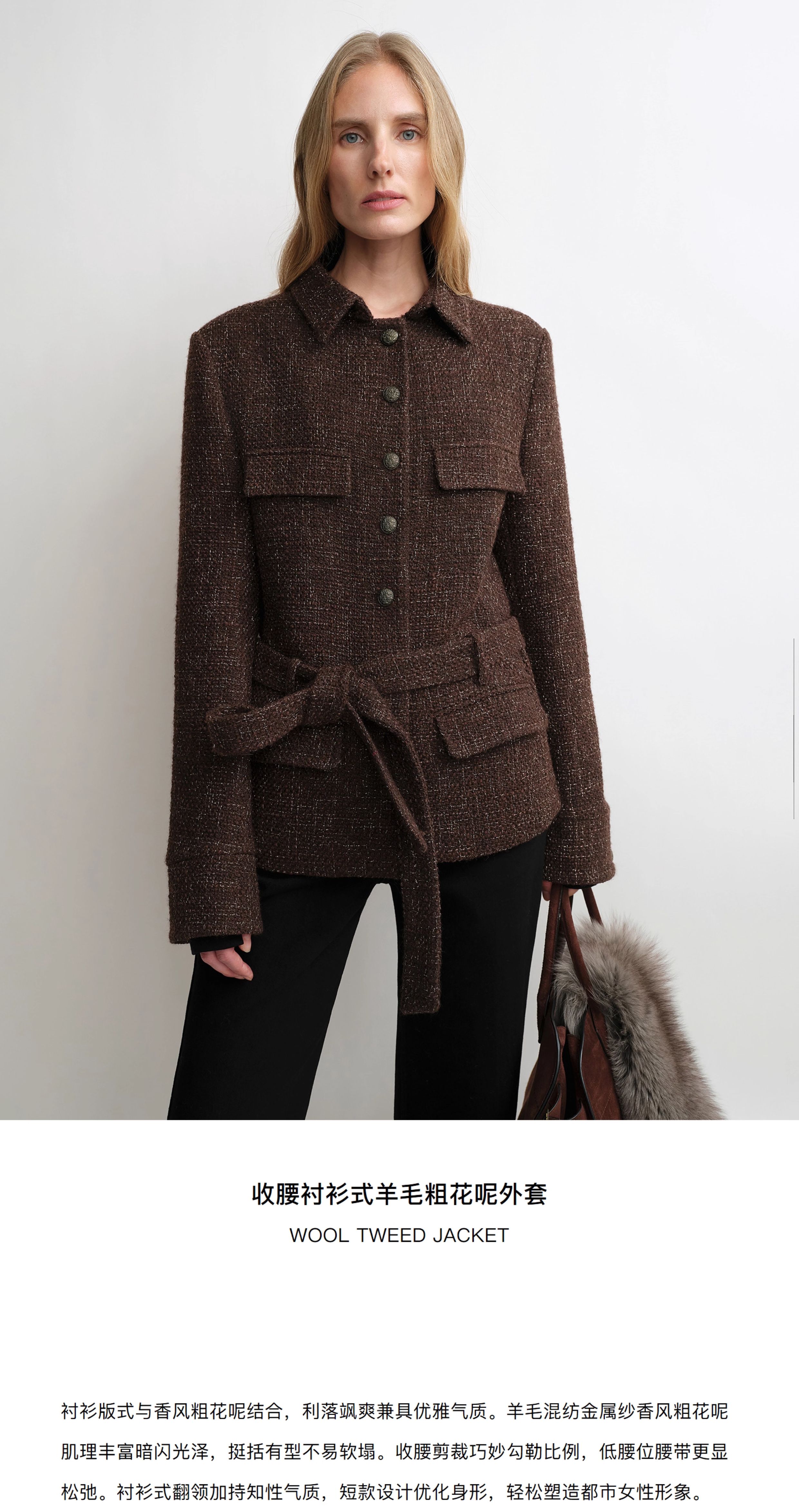 The Artm Waist-Cinching Shirt-Style Tweed Jacket with Wool and Belt, Autumn and Winter Short Coat for Women, New Model 25